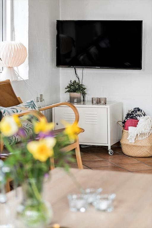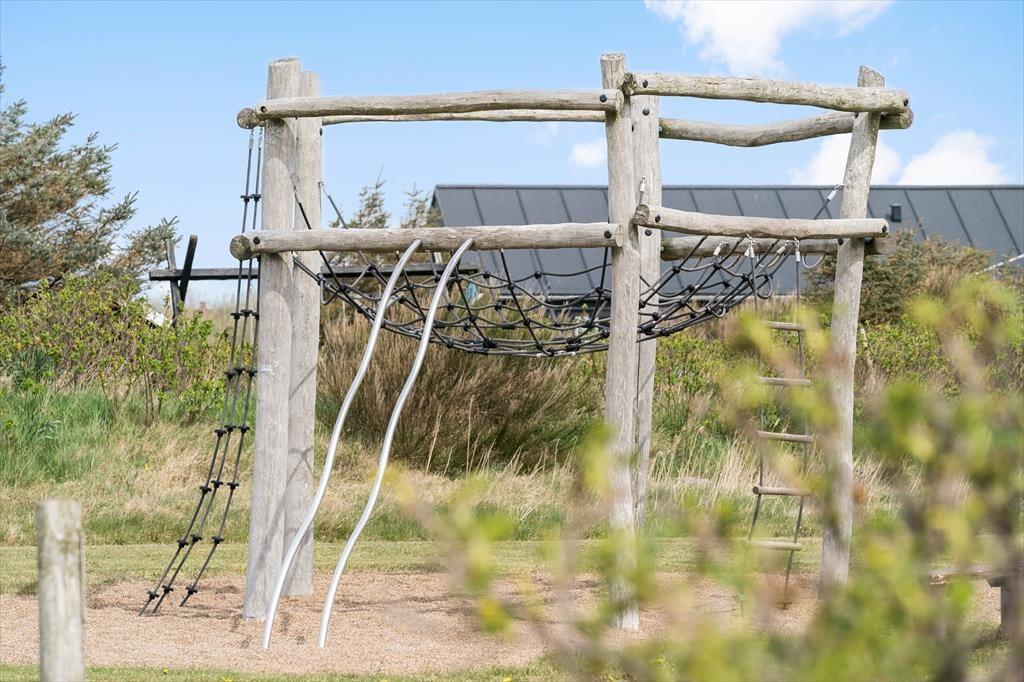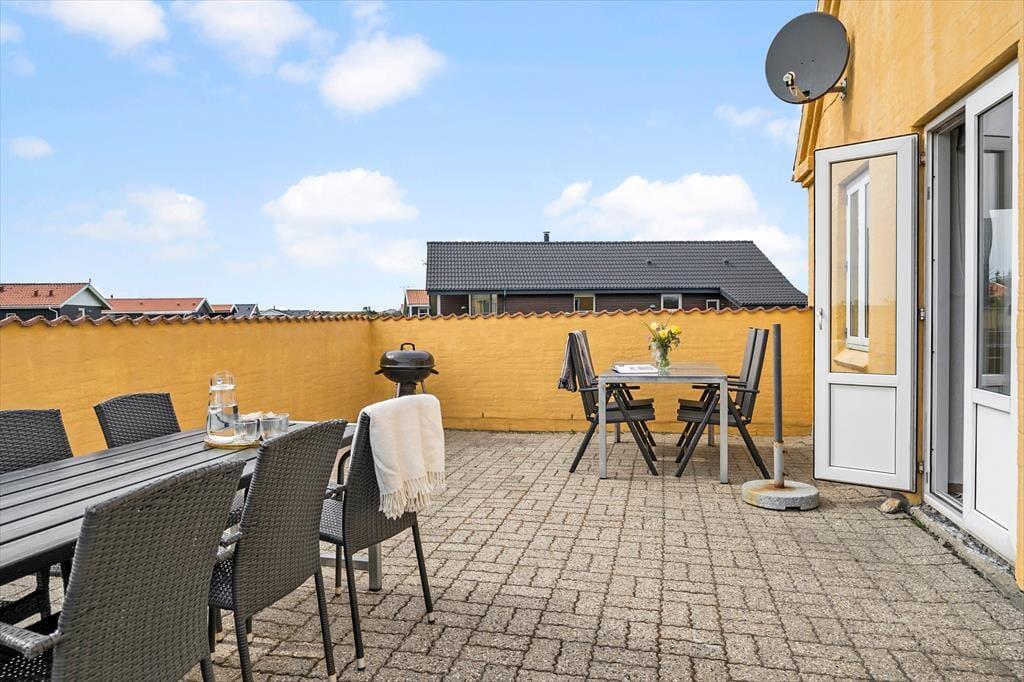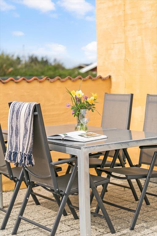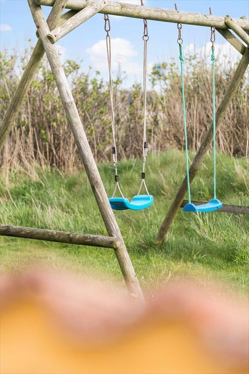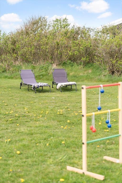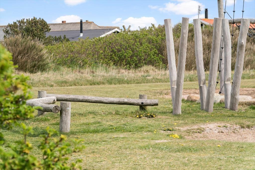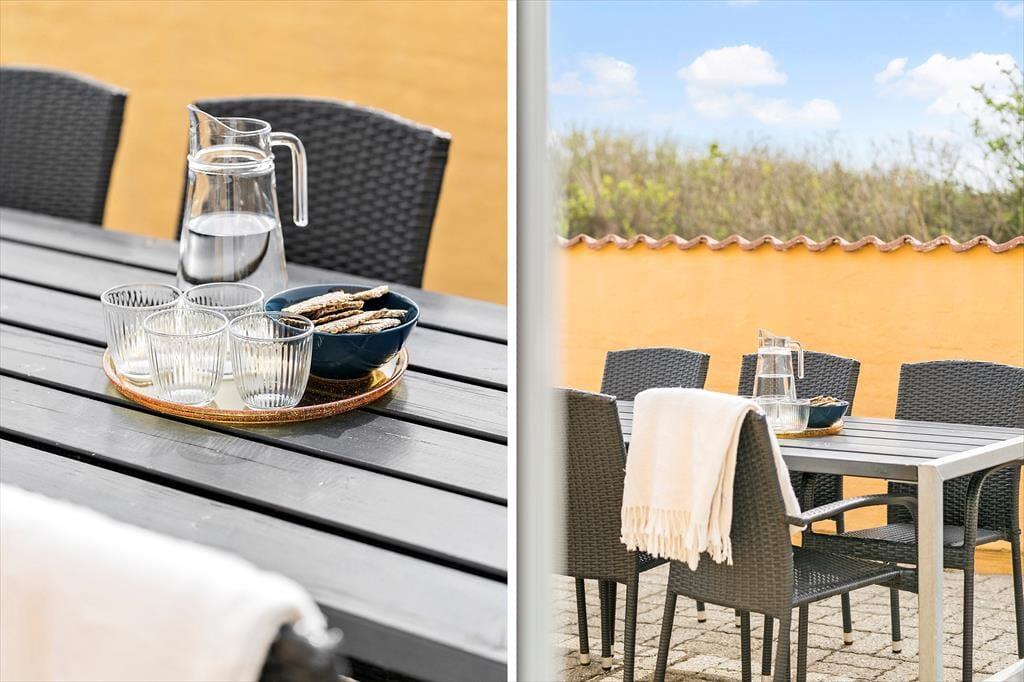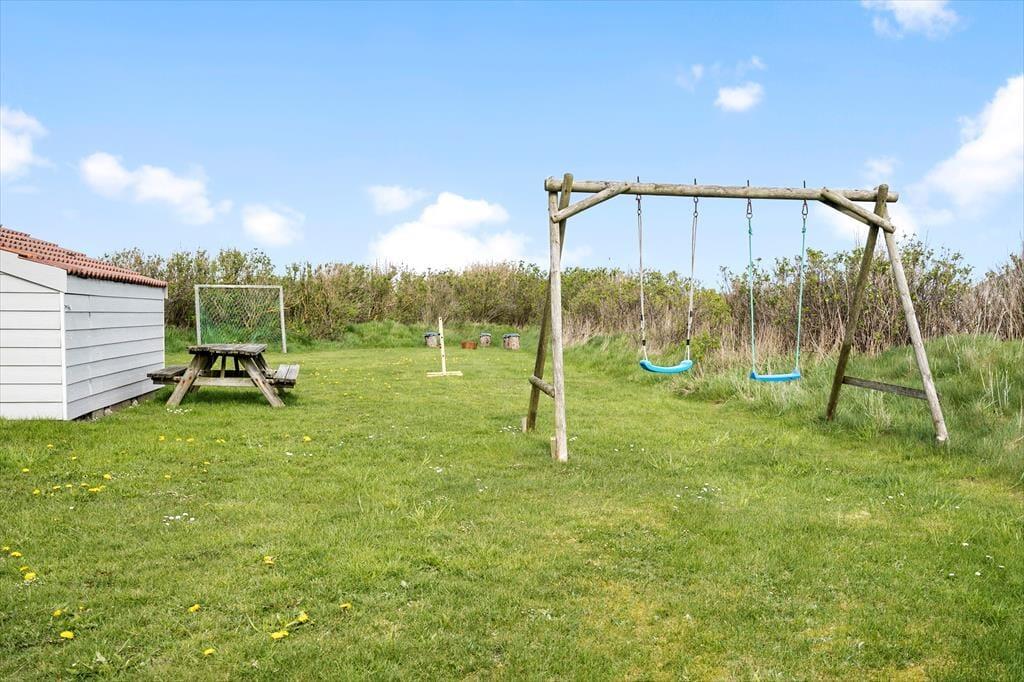 Sommerhusets terrasse ligger godt i forhold til solen, og det gule murværk sørger for at skærme udearealerne lidt af, så det er et skønt sted at nyde frokosten og holde siesta bagefter. Du får også rig mulighed for at hygge dig med familiens legebørn i alle aldre, for udover et gyngestativ står der nemlig også et fodboldmål på græsplænen, og hvis du vil spille stigegolf eller tænde op i bålstedet, kan det også lade sig gøre. Hvis børnene er store nok, kan de selv smutte ned for enden af vejen og følge stien hen til den nærmeste legeplads – så er der måske lige tid til en ekstra kop kaffe til de voksne, inden I sammen kan tage på stranden.