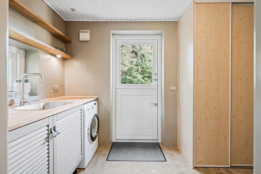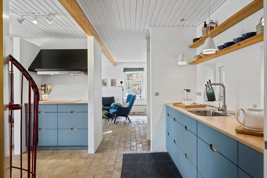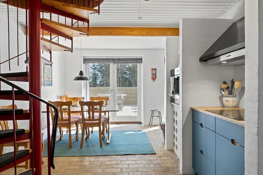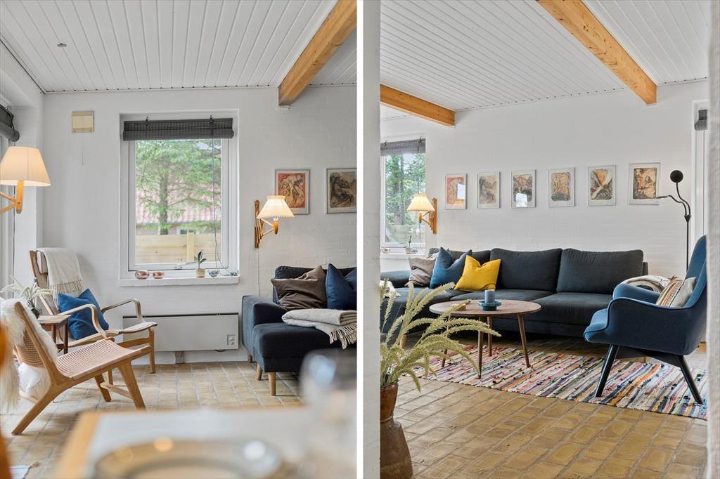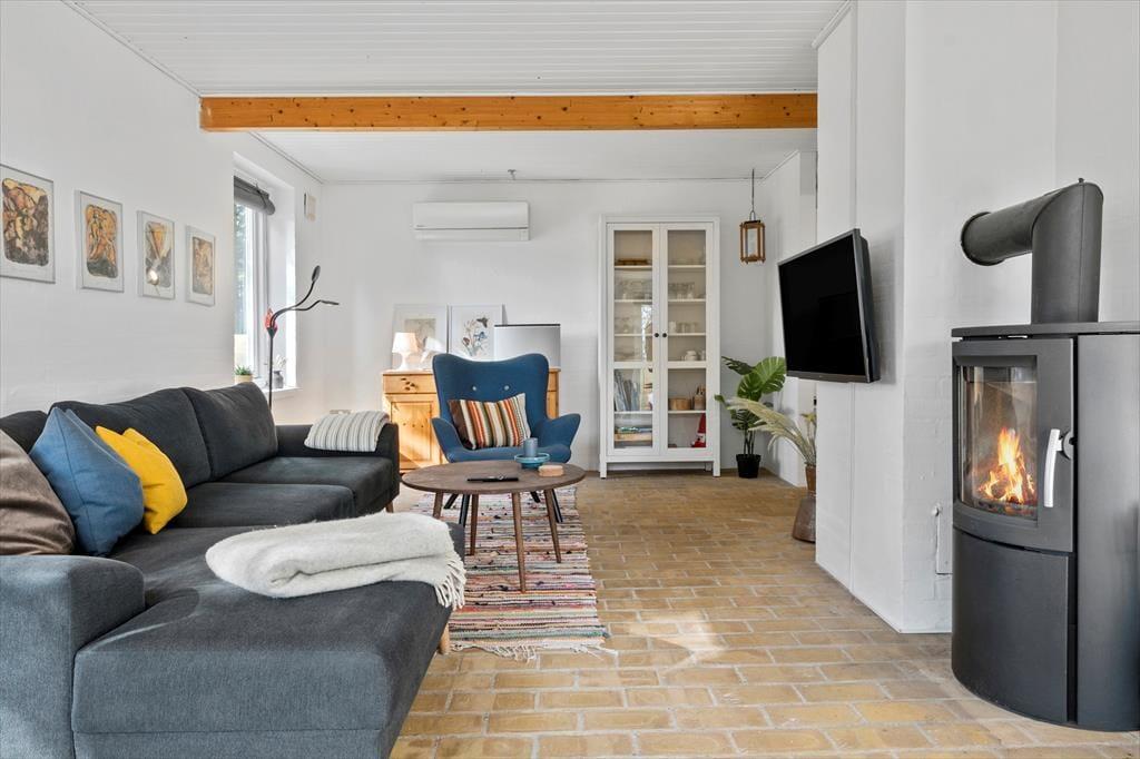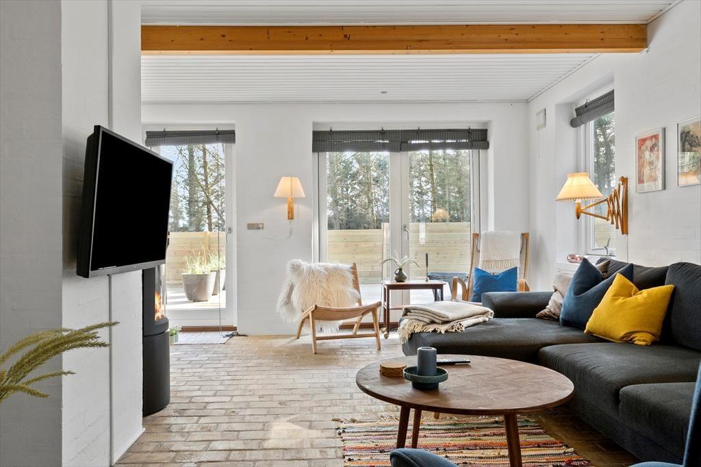 Når du træder ind i sommerhuset på Værmlandvej 3A, bliver du straks mødt af en lys og indbydende atmosfære. De store vinduespartier inviterer masser af dagslys indenfor og skaber en skøn forbindelse mellem husets hyggelige indretning og den omgivende natur. Køkken, spiseplads og stue ligger i åben forbindelse og danner de perfekte rammer for både nærvær, hyggelige måltider og lange aftener med brætspil og grin. Her kan du og familien virkelig slappe af og nyde roen – og selvfølgelig er familiens hund også hjertelig velkommen, så ingen skal blive hjemme.