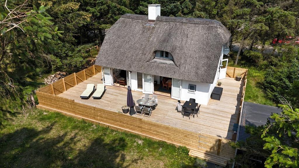 Drømmer du om en ferie i et charmerende, stråtækt sommerhus midt i naturen? På Værmlandvej 3A i Vejlby Klit Strand finder du et skønt sommerhus, hvor ægte sommerhusstemning og moderne komfort går hånd i hånd. Her kan du nyde lyden af Vesterhavets brusen i baggrunden, den storslåede natur – og ikke mindst de dejlige, lyse omgivelser både inde og ude.