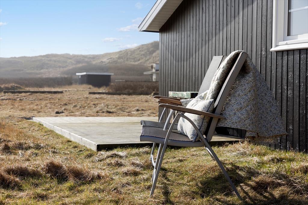 Hyggeligt sommerhus tæt på Vesterhavet med dejlig terrasse og naturudsigt i Vejlby Klit.