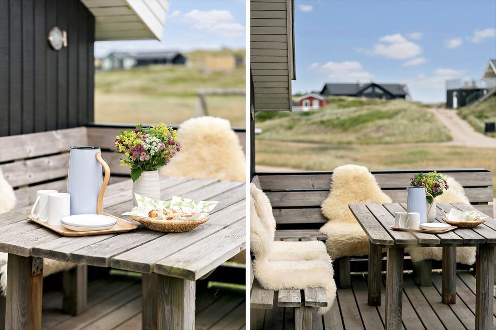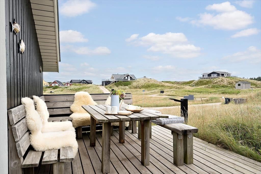 Det er udenfor, at dette sommerhus virkelig skiller sig ud. Den store naturgrund smyger sig elegant ind mellem klitterne og giver jer følelsen af at have jeres helt eget lille stykke Vesterhavsparadis. Her kan I nyde morgensolen med en kop kaffe på terrassen, mens I lytter til vinden, der suser i marehalmen, og måske ser en fasan eller et rådyr krydse klitterne. Når eftermiddagen melder sig, er det oplagt at tage turen gennem klitterne og ned til stranden – her er der hverken trafik eller larm, men blot lyden af havet og vinden i håret. Børnene kan bygge sandslotte og lege i vandkanten, mens de voksne slapper af i strandstolen med udsigt til horisonten. Hjemme igen er det oplagt at tænde grillen og lade aftenen falde på i godt selskab og med naturens eget soundtrack i baggrunden.