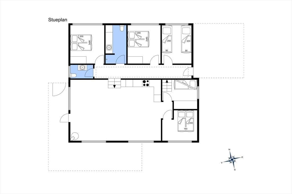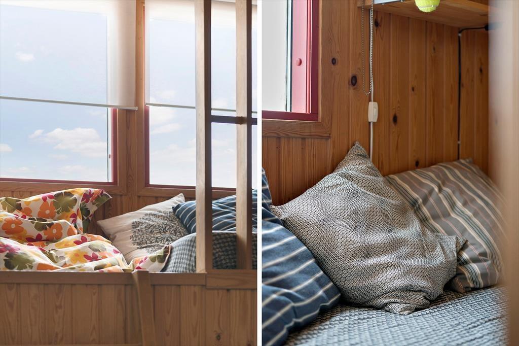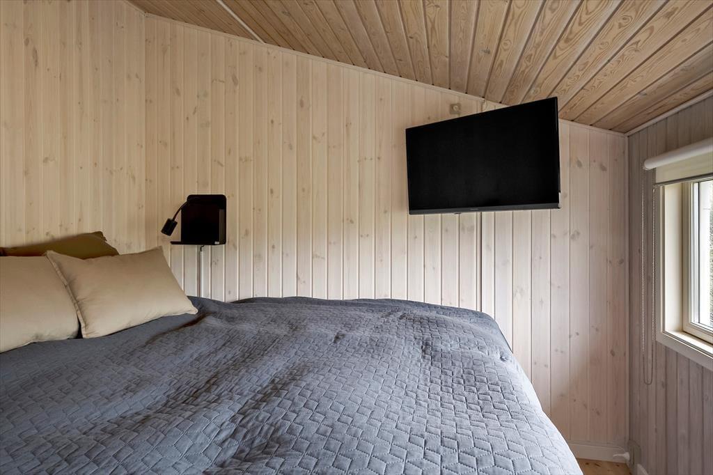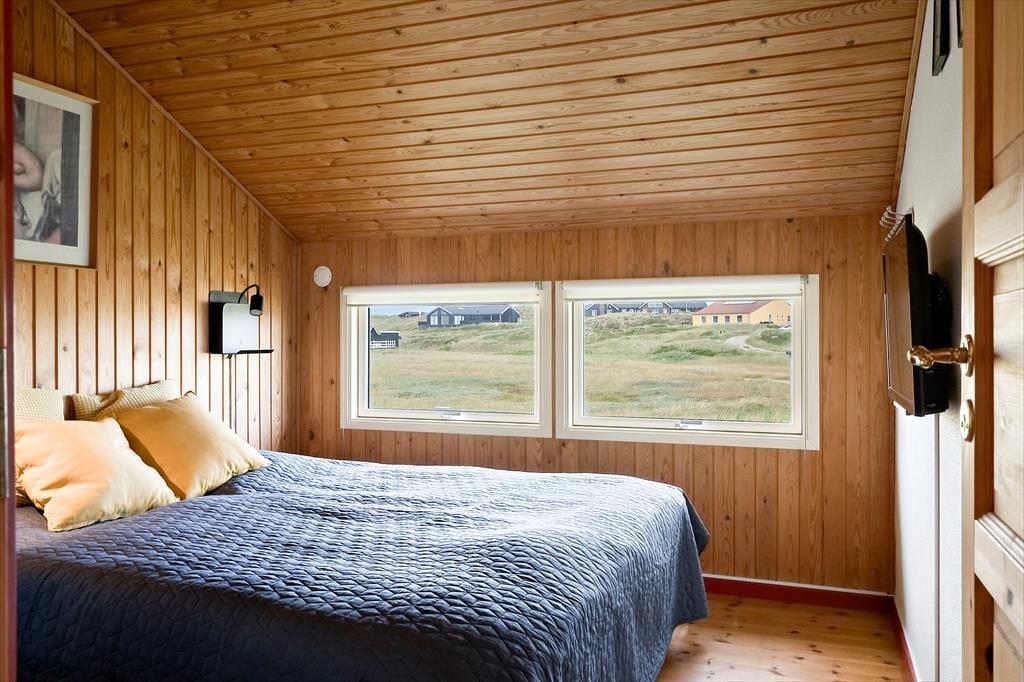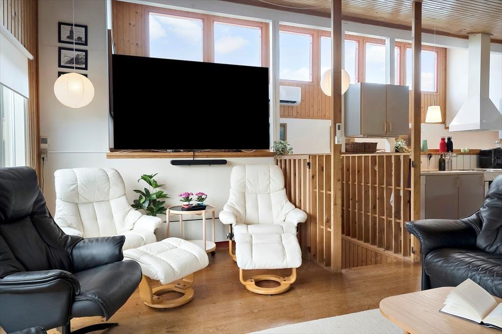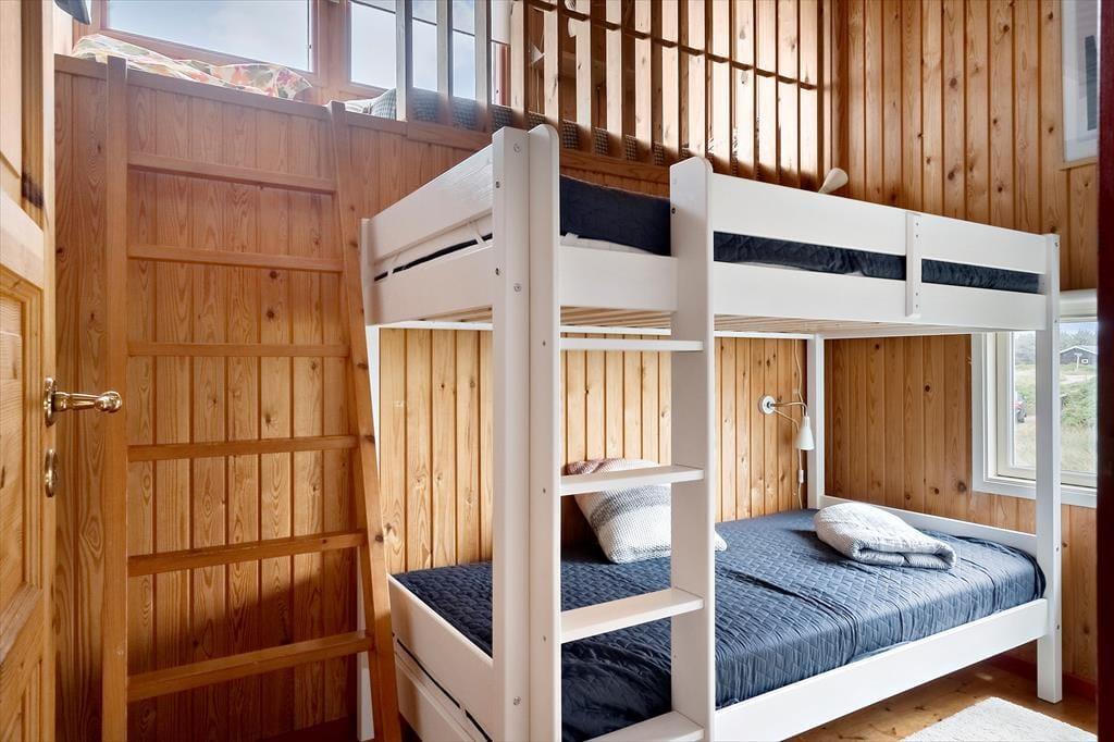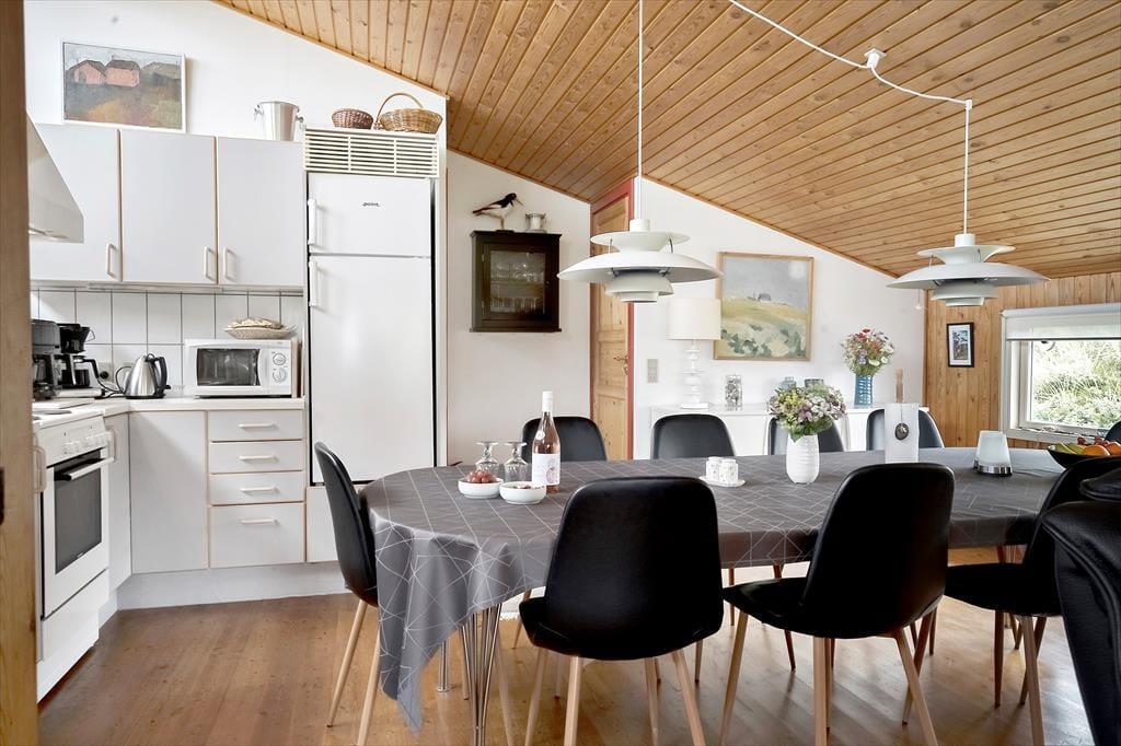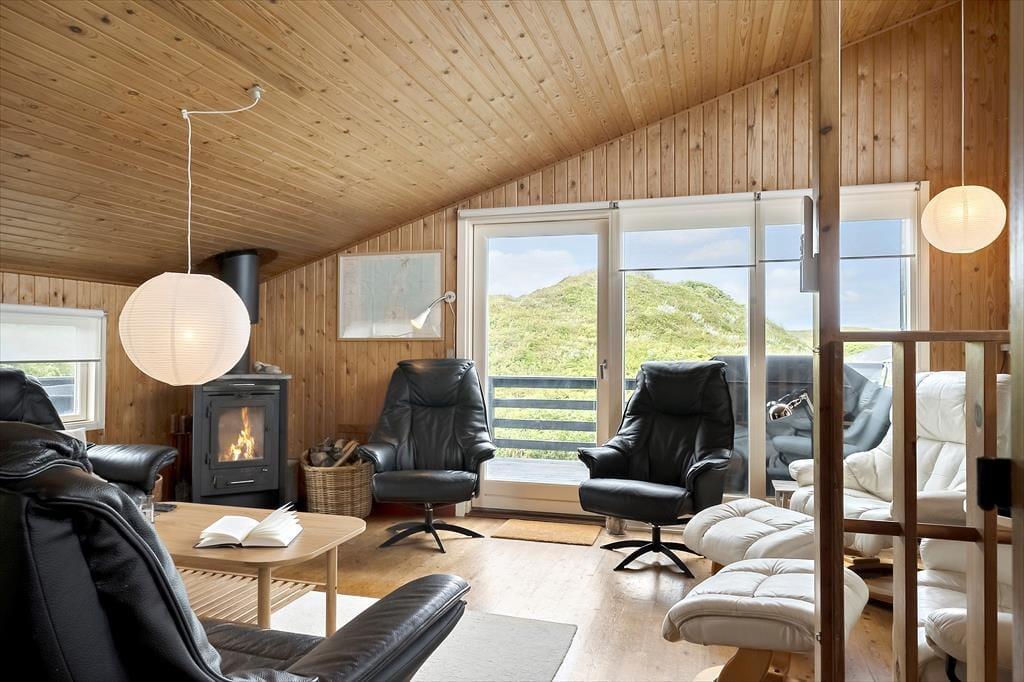 Allerede når du træder ind ad døren, mærker du stemningen af klassisk sommerhusferie. Huset emmer af hygge, med en afslappet og personlig indretning, hvor både store og små kan føle sig hjemme. De mange sengepladser gør det muligt at samle både familie og venner under ét tag – og hvis I er to familier, der rejser sammen, er der rigeligt med plads til at nyde hinandens selskab, uden at det føles trangt. Køkken og stue ligger i åben forbindelse og skaber det perfekte samlingspunkt, hvor måltider og snakke flyder naturligt sammen. Midt i stuen står husets brændeovn som et varmt og hyggeligt omdrejningspunkt – særligt på de kølige dage, hvor I kan lade flammerne danse og fylde rummet med knitren og varme. Efter en dag i det fri kan I samles her, finde ro med en god bog og en kop varm kakao, mens hundene slumrer ved jeres fødder.
