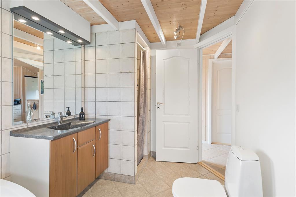 Når du træder ind i huset, mødes du af en lys og venlig atmosfære, hvor stuen og køkkenet ligger i åben forbindelse – et naturligt samlingspunkt for hele familien. Store vinduespartier lader dagslyset strømme ind og giver udsyn til de grønne omgivelser. På kølige dage kan I tænde op i brændeovnen, læne jer tilbage i sofaen og mærke varmen brede sig, mens I hygger med spil, film eller en god bog. Badeværelset byder på et skønt indespa, hvor du kan slappe helt af efter en lang dag ved hav eller sø. Alkoven er perfekt til en stille læsestund eller en middagslur, mens hemsen hurtigt bliver børnenes helt eget fristed.