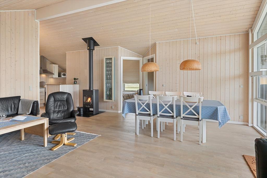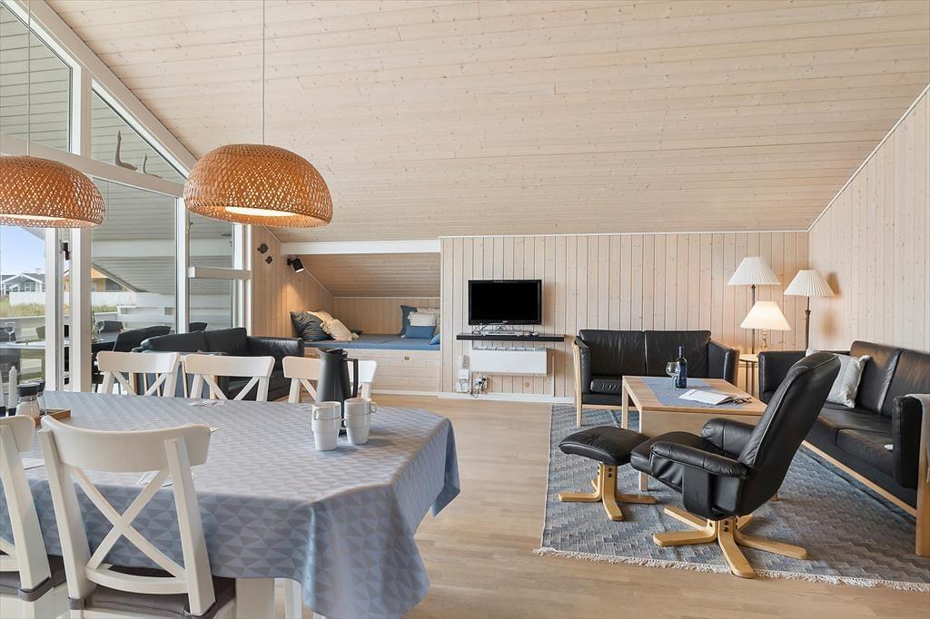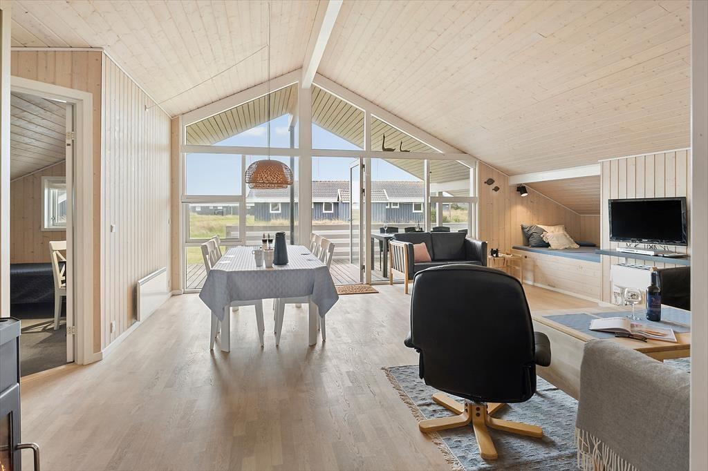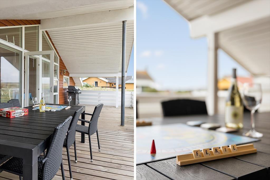 Her kan du starte dagen med en frisk kop kaffe på terrassen, mens du lytter til fuglesang og nyder den friske luft. Når solen står højt, er terrassen oplagt til afslapning, grill og hyggelige måltider under åben himmel. Græsplænen giver masser af plads til boldspil og leg, og hunden kan boltre sig frit i de rolige omgivelser. Om dagen kan I tage den korte tur ned til Vesterhavet for at bade, bygge sandslotte eller gå lange ture i vandkanten, og om aftenen kan I vende tilbage til huset og nyde en rolig stund i spaen, mens dagens oplevelser bliver fordøjet.