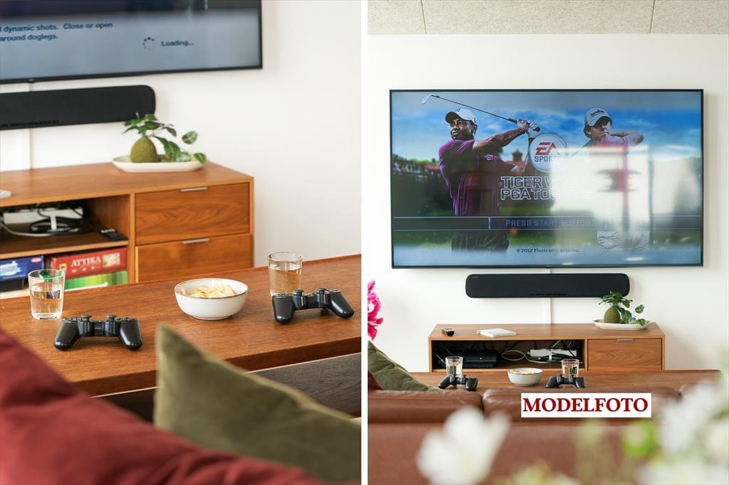 Herude får du følelsen af at være midt i naturen – og samtidig omgivet af alt det, der gør ferien ekstra behagelig. Den store træterrasse indbyder til både solbadning, måltider under åben himmel og hyggelige aftener med grill og levende lys. En del af terrassen er overdækket, så du kan sidde ude, selv når vestenvinden rusker, eller en sommerbyge trækker forbi. Om morgenen kan du nyde din kaffe med udsigt til Ferring Sø, og om aftenen kan du slappe af i liggestolen, mens himlen gløder over landskabet. Den rummelige grund giver også plads til leg og frihed – både for børn og for de to hunde, som er velkomne her. Sommerhuset gør det let at koble helt fra, mærke den friske luft og bare være til stede i nuet.