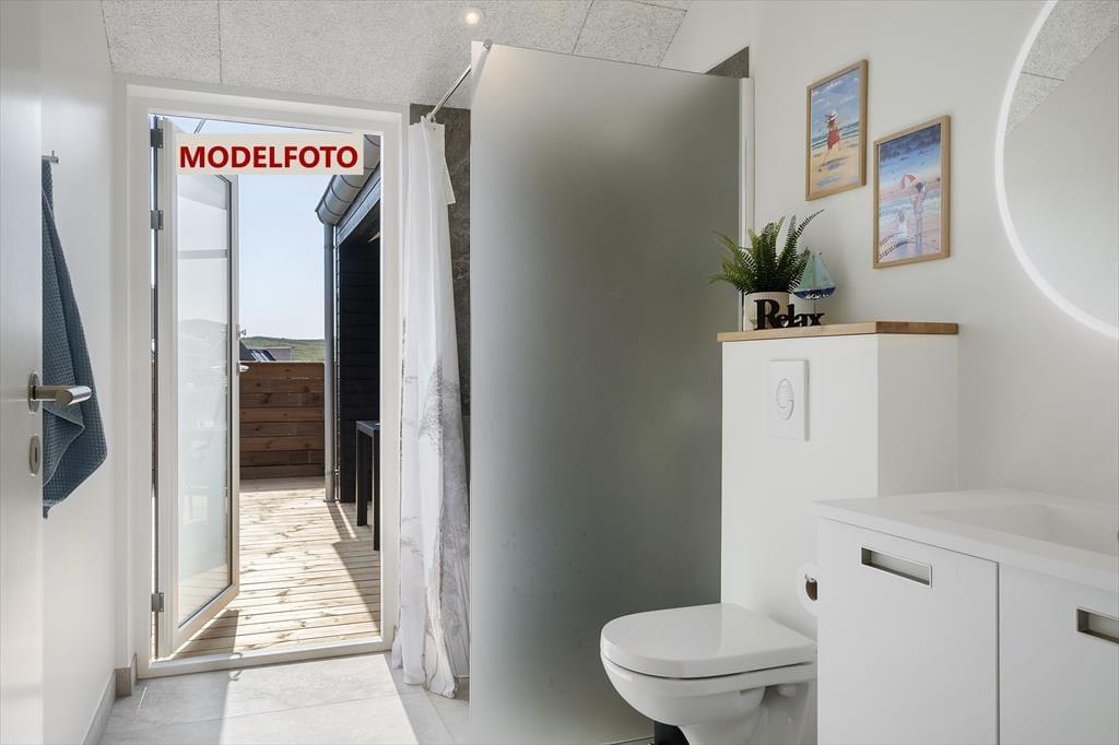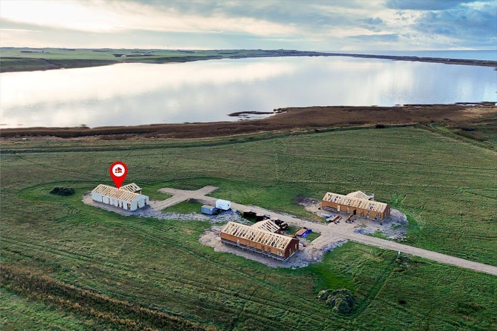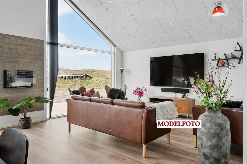 Når du træder ind i dette nybyggede sommerhus på Neerlandiavej 85, mærker du straks, at her er tænkt på både komfort, kvalitet og naturoplevelser. Huset står færdigt i 2026 og byder på en hævet stue med store vinduespartier, der åbner udsigten mod Ferring Sø og det historiske Bovbjerg Fyr i det fjerne. Her kan du synke ned i sofaen, tænde op i brændeovnen og nyde varmen, mens du lader tankerne vandre ud over landskabet. Det moderne køkken og opholdsrum ligger i åben forbindelse, så samtalerne og grinene flyder frit – uanset om der laves mad, spilles spil eller hygges med kaffe og kage. I det indbydende aktivitetsrum venter både et poolbord og god plads til leg og konkurrencer for både børn og voksne, og efter en aktiv dag kan du trække dig tilbage til saunaen eller skylle saltet af kroppen under den udendørs bruser. Alt i alt et sommerhus, hvor både ro og liv har deres naturlige plads.