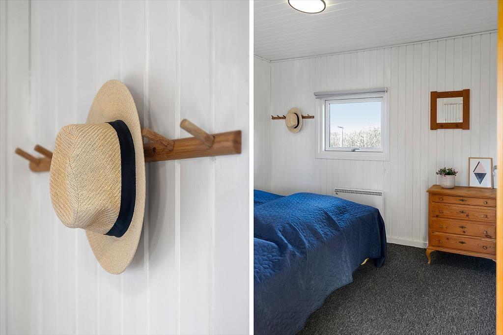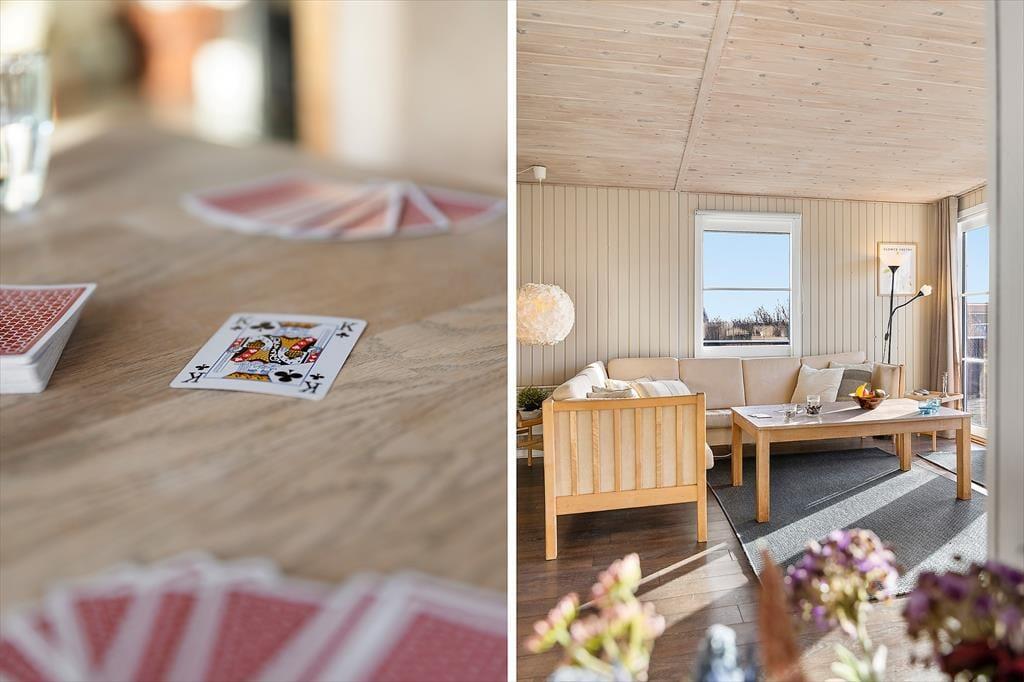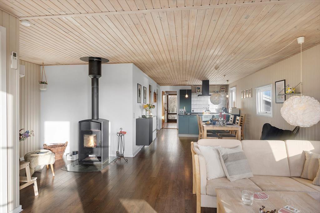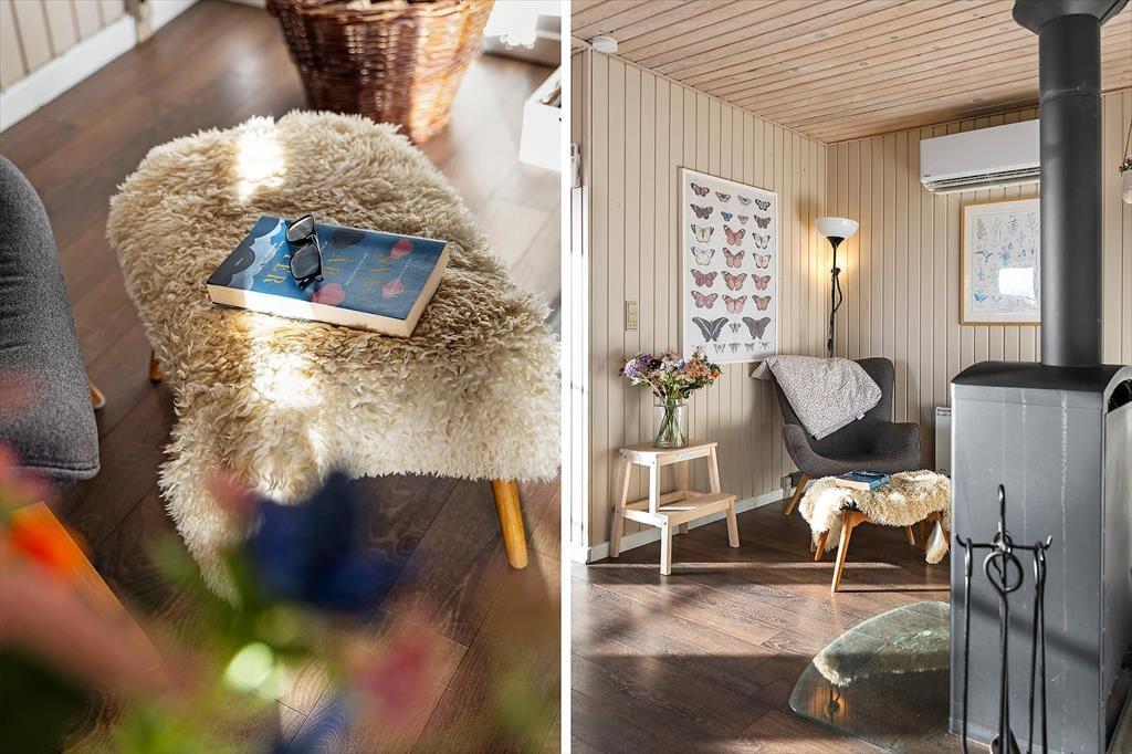 Indenfor bliver du mødt af en varm og charmerende atmosfære, hvor det personlige præg fra husejeren kan mærkes i detaljerne. Det er den slags sommerhus, hvor man får lyst til at sætte tempoet ned, smide skoene og bare nyde at være sammen. Det lækre, nye køkken lægger op til feriemad med god tid: måske friskfangede historier fra dagens oplevelser, mens kaffen brygger, og der snittes til salat eller smøres madpakker til en tur i klitterne. I opholdsrummene kan I samles til brætspil, hyggesnak og afslappende stunder, og når aftenen falder på, bliver brændeovnen hurtigt et naturligt samlingspunkt. Her kan du høre knitren fra flammerne og mærke varmen brede sig, mens blæsten rusker udenfor. Og hvis I er afsted uden for højsæsonen, gør varmepumpen det nemt at holde en behagelig temperatur, så ferien bliver komfortabel året rundt – også når vestkysten viser sig fra sin friske side.