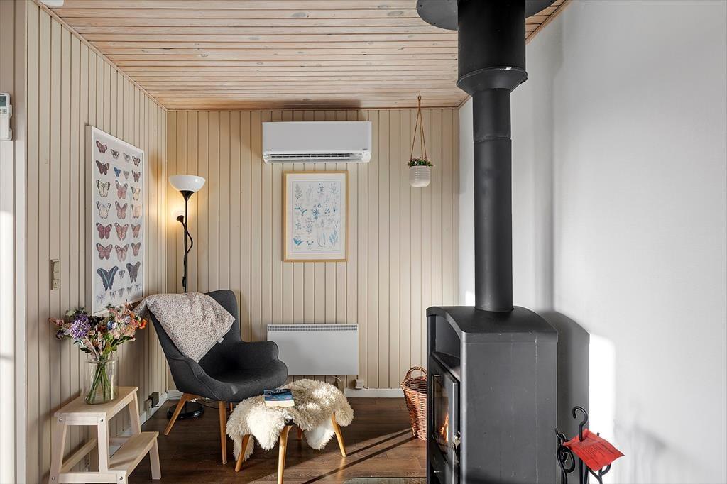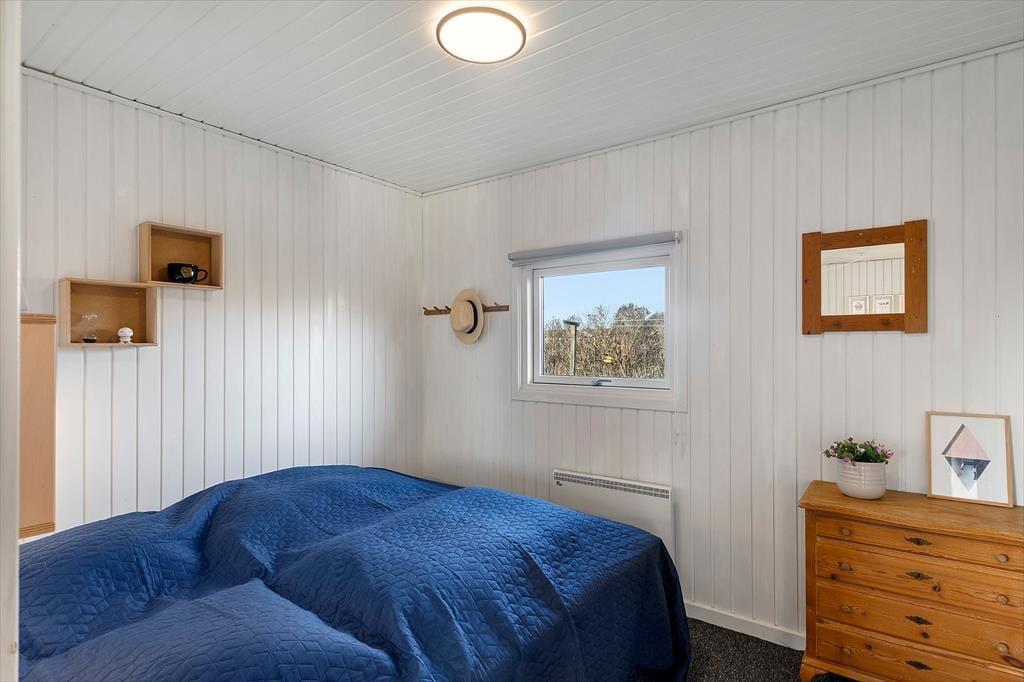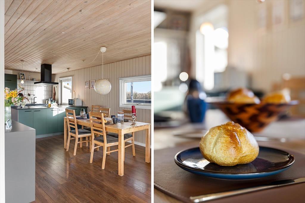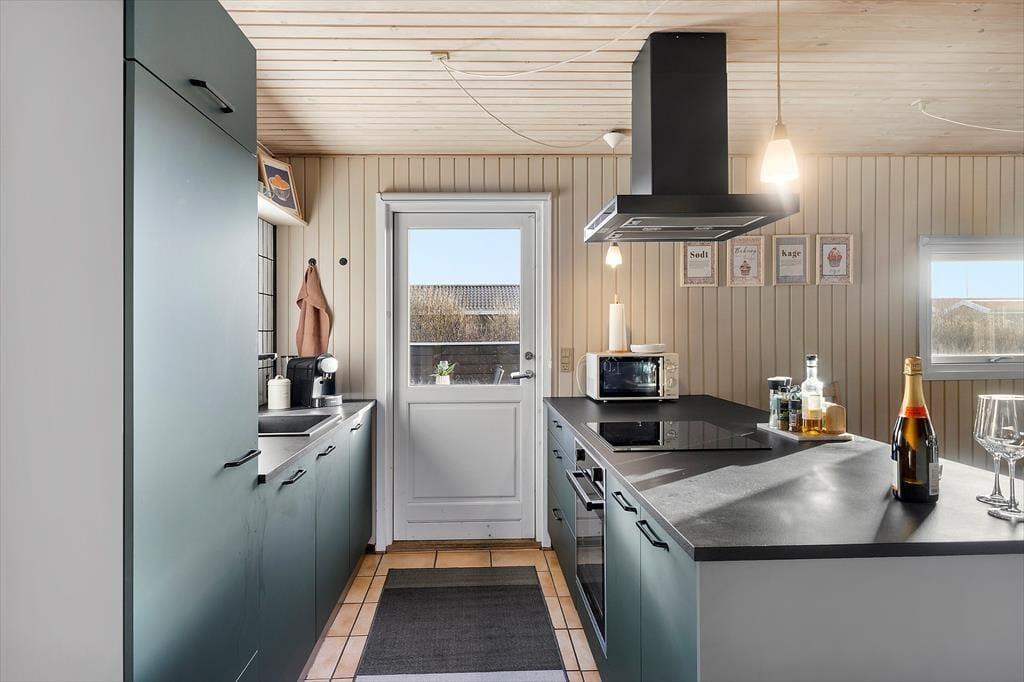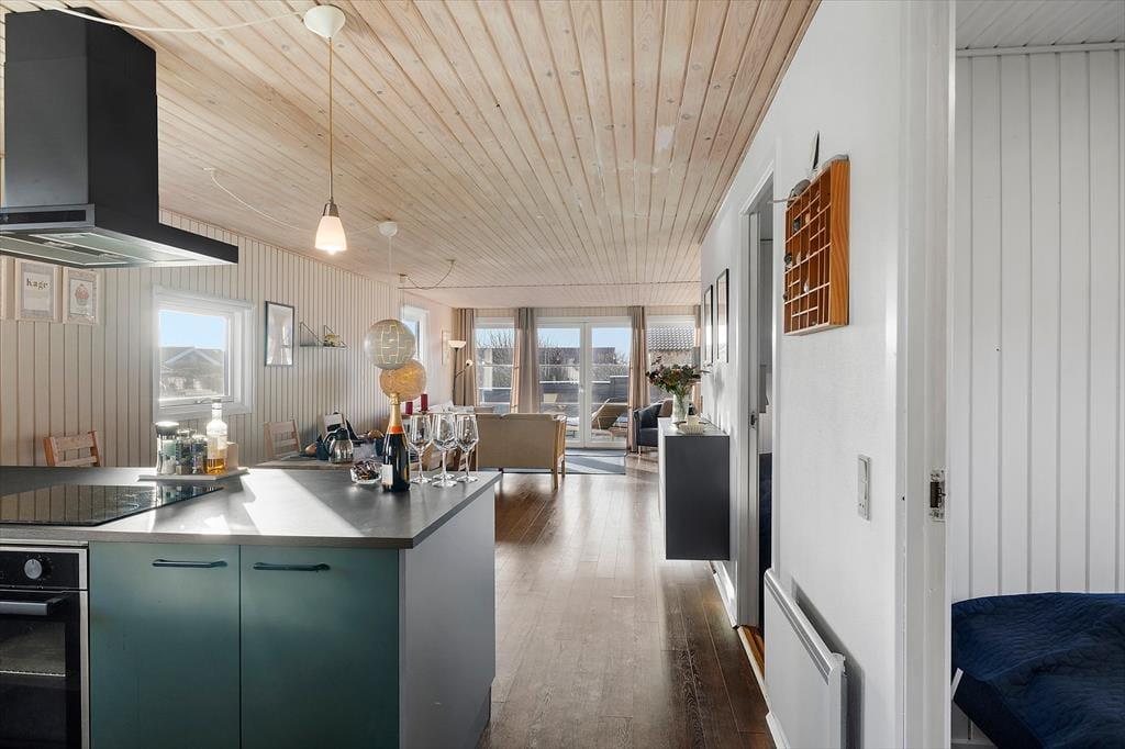 Indenfor bliver du mødt af en varm og charmerende atmosfære, hvor det personlige præg fra husejeren kan mærkes i detaljerne. Det er den slags sommerhus, hvor man får lyst til at sætte tempoet ned, smide skoene og bare nyde at være sammen. Det lækre, nye køkken lægger op til feriemad med god tid: måske friskfangede historier fra dagens oplevelser, mens kaffen brygger, og der snittes til salat eller smøres madpakker til en tur i klitterne. I opholdsrummene kan I samles til brætspil, hyggesnak og afslappende stunder, og når aftenen falder på, bliver brændeovnen hurtigt et naturligt samlingspunkt. Her kan du høre knitren fra flammerne og mærke varmen brede sig, mens blæsten rusker udenfor. Og hvis I er afsted uden for højsæsonen, gør varmepumpen det nemt at holde en behagelig temperatur, så ferien bliver komfortabel året rundt – også når vestkysten viser sig fra sin friske side.