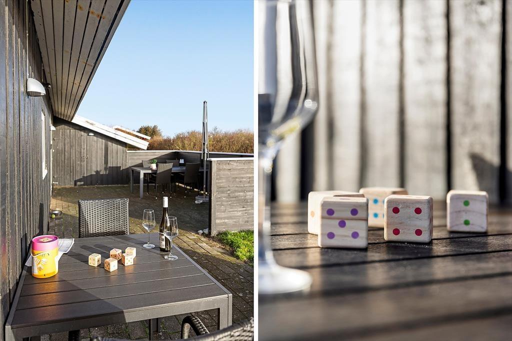Udelivet får skønne betingelser, for haven ligger dejligt privat med hække og buske næsten hele vejen rundt. Det giver en sjælden ro og en følelse af at have jeres helt egen lille oase, hvor I kan slappe af uden at tænke på omverdenen. Her kan I nyde en stille morgen med dug i græsset, fuglesang i baggrunden og måske hundene, der snuser rundt og finder alle de spændende dufte, som en feriehave kan gemme på. Senere på dagen kan I dække op til frokost under åben himmel, finde en solplet med en god bog eller lade børnene lege, mens de voksne læner sig tilbage med en kop kaffe. Når aftenen nærmer sig, er det oplagt at tænde grillen og gøre feriemiddagen til et lille højdepunkt – og bagefter kan I rykke tættere sammen, mens mørket falder på, og I stadig har den private have som en rolig ramme om samværet.