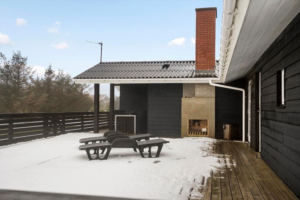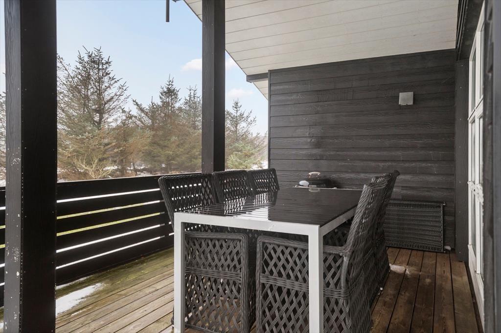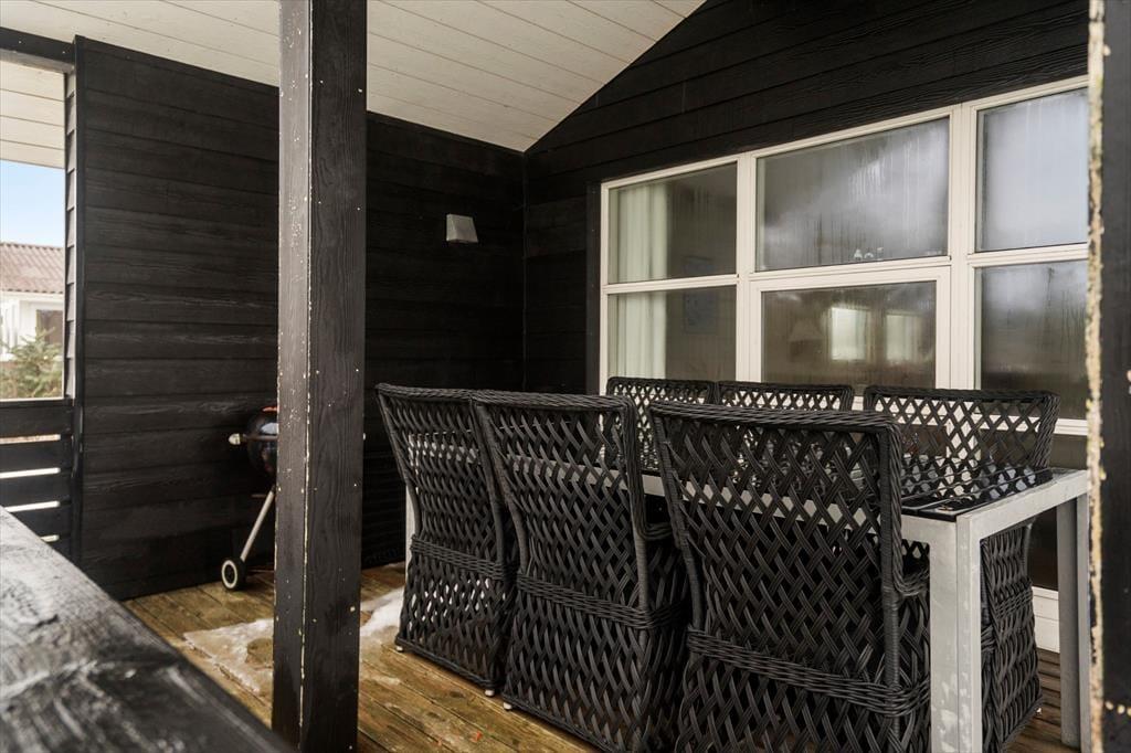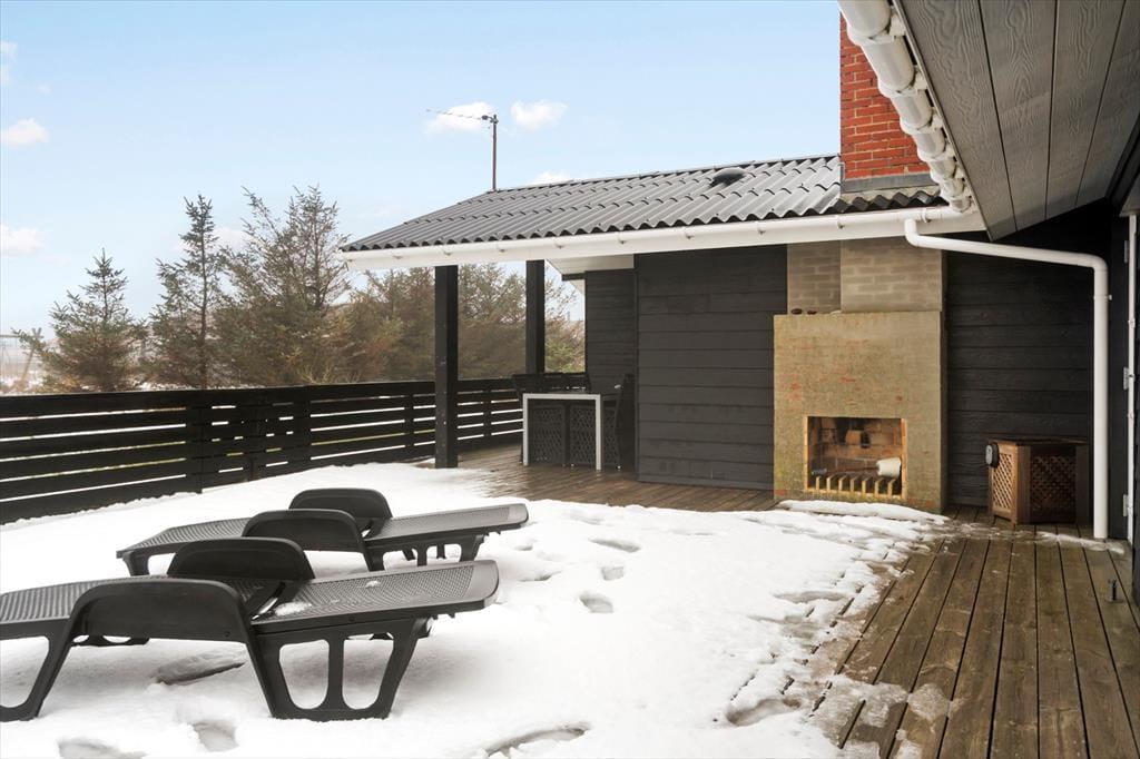 Udelivet får de bedste betingelser omkring sommerhuset. Den sydøstvendte terrasse er lukket, hvilket giver en tryg og ugeneret ramme om feriedagene – perfekt til morgenkaffen i solen eller lange eftermiddage med en god bog. Derudover har du glæde af en overdækket terrasse, hvor du kan sidde i læ og nyde aftensmaden, selv hvis vejret viser sig fra sin mere omskiftelige side. Her kan grillen tændes, mens du lytter til vinden og mærker den særlige ro, som kendetegner Vejlby Klit. Når dagen går på hæld, er det oplagt at blive siddende ude og nyde den friske vestjyske luft, inden du trækker indenfor til brændeovnens varme.