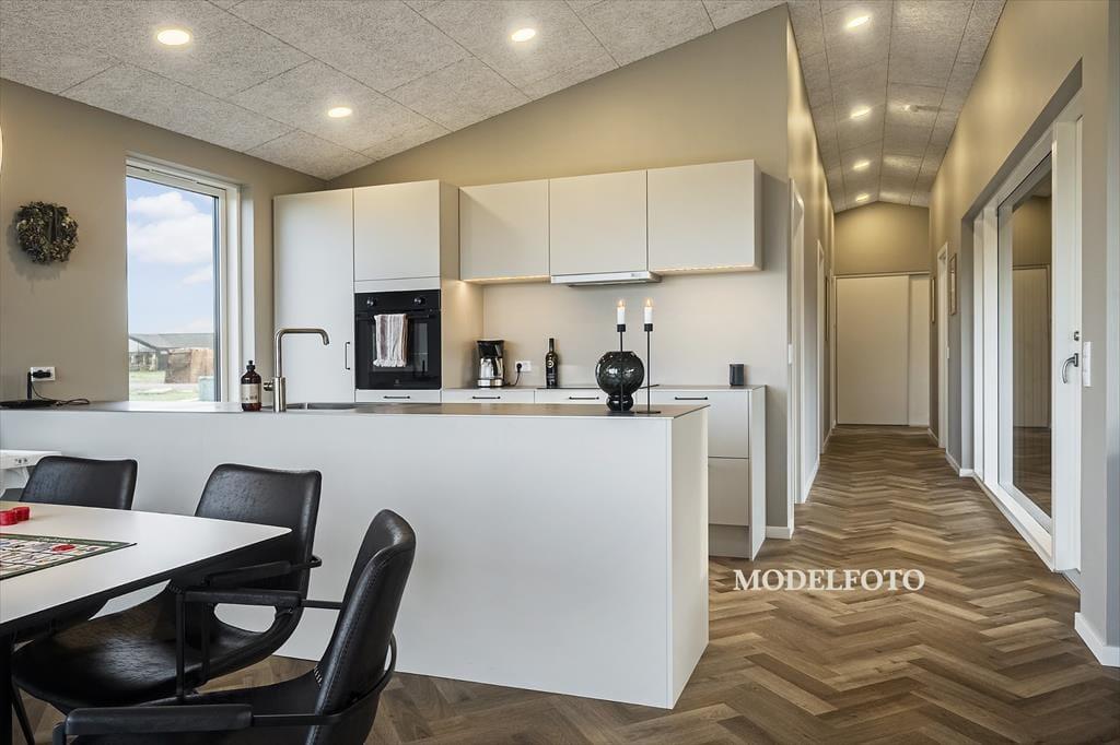 Strandvænget ligger i et roligt og attraktivt område i Harboøre, hvor du har det bedste af Vestkysten lige ved hånden. Vesterhavet kan nås til fods, så spontane strandture, friske dukkerter og lange gåture i vandkanten nemt bliver en del af feriedagene. Lyden af bølgerne og den salte havluft sætter hurtigt den helt rette feriestemning. Samtidig er der kort vej til indkøb, så hverdagen glider let, også når ferien leves i et afslappet tempo. Området indbyder til cykel- og gåture i det åbne landskab, hvor klitter, hede og hav smelter sammen, og uanset årstid er naturen her en oplevelse i sig selv. Harboøre er et godt udgangspunkt for at udforske den jyske vestkyst, og efter en dag fuld af oplevelser er det ekstra rart at vende hjem til et nyt og komfortabelt sommerhus, hvor ferien kan fortsætte i rolige rammer.