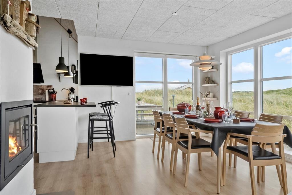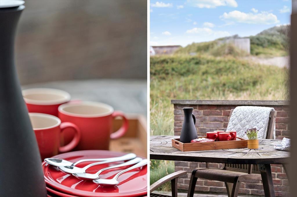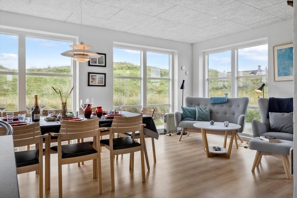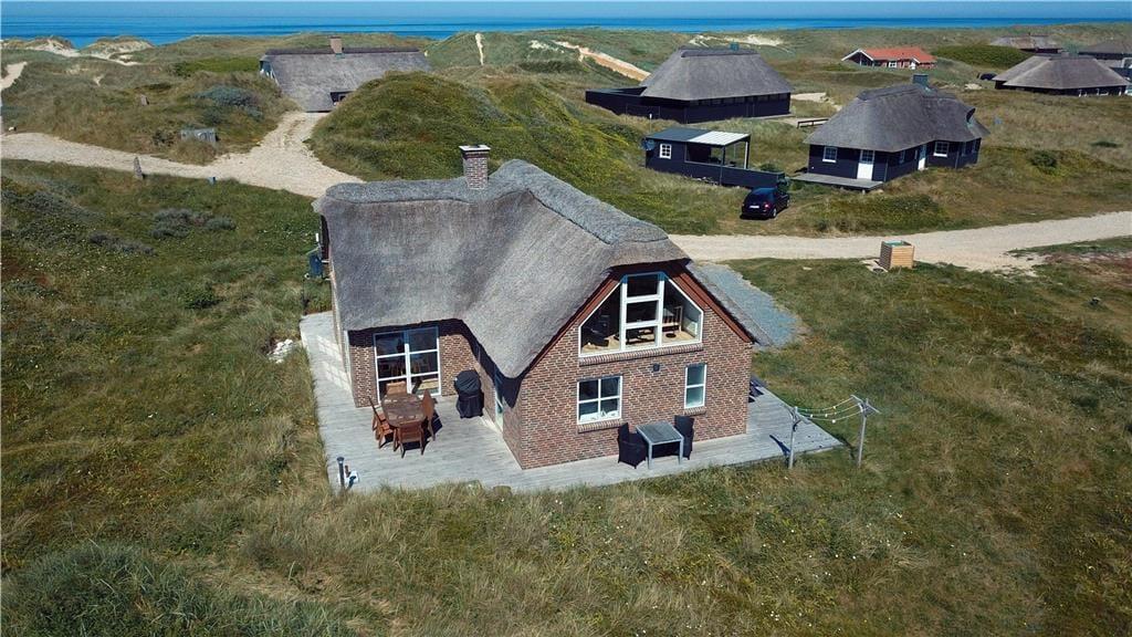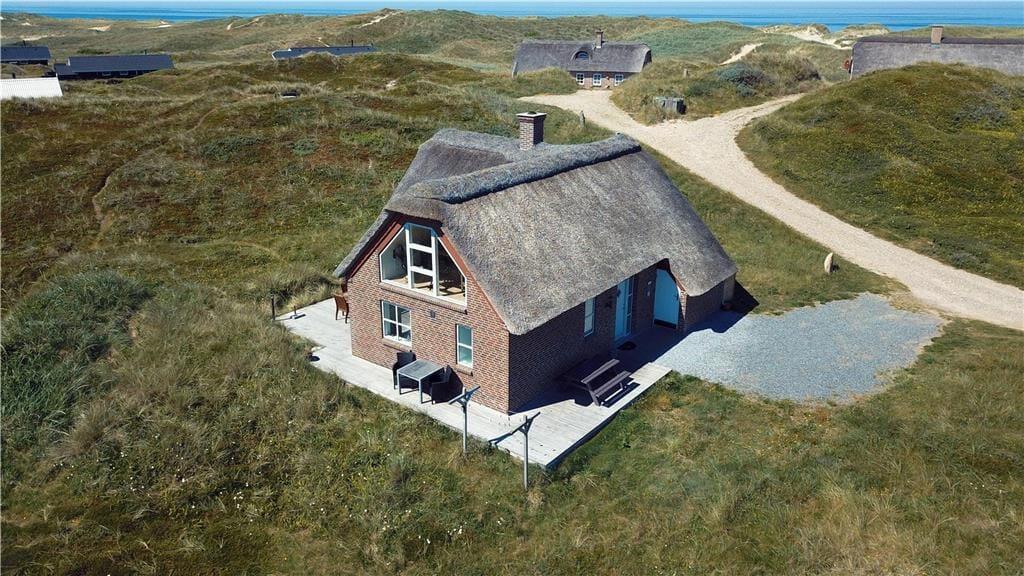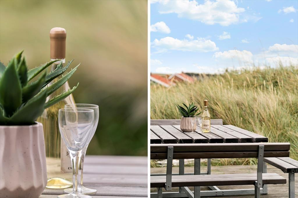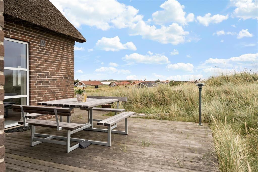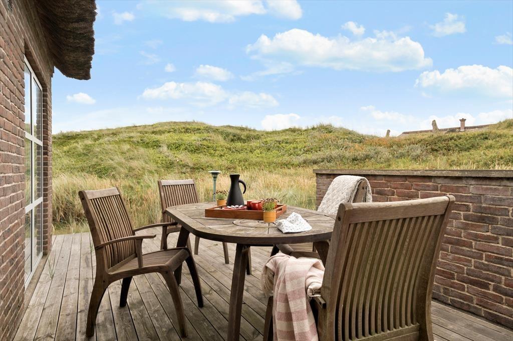 Den store klitgrund på hele 1500 m² gør, at sommerhuset ligger smukt og naturligt indrammet i landskabet – og med første parket til Vesterhavets dramatiske natur. På terrassen, som ligger i læ ved huset, kan du nyde dine måltider, mens solen varmer, og vinden leger i klittoppene. Her er rig mulighed for at sidde ugeneret og slappe af med en god bog eller nyde lyden af fuglesang og det fjerne brus fra havet. Børnene har god plads til at lege i det kuperede terræn, og når dagen går på hæld, kan I tænde op i grillen og lade stemningen sænke sig, mens himlen farves i varme nuancer over klitterne. Feriehusets beliggenhed gør det nemt at være helt tæt på naturen, uden at give afkald på komfort.