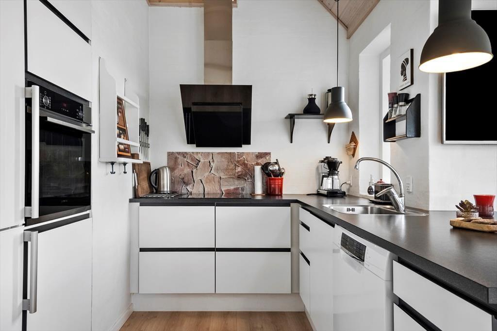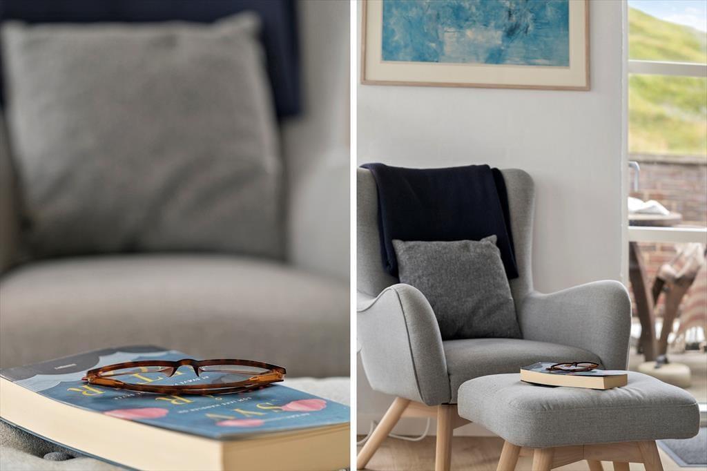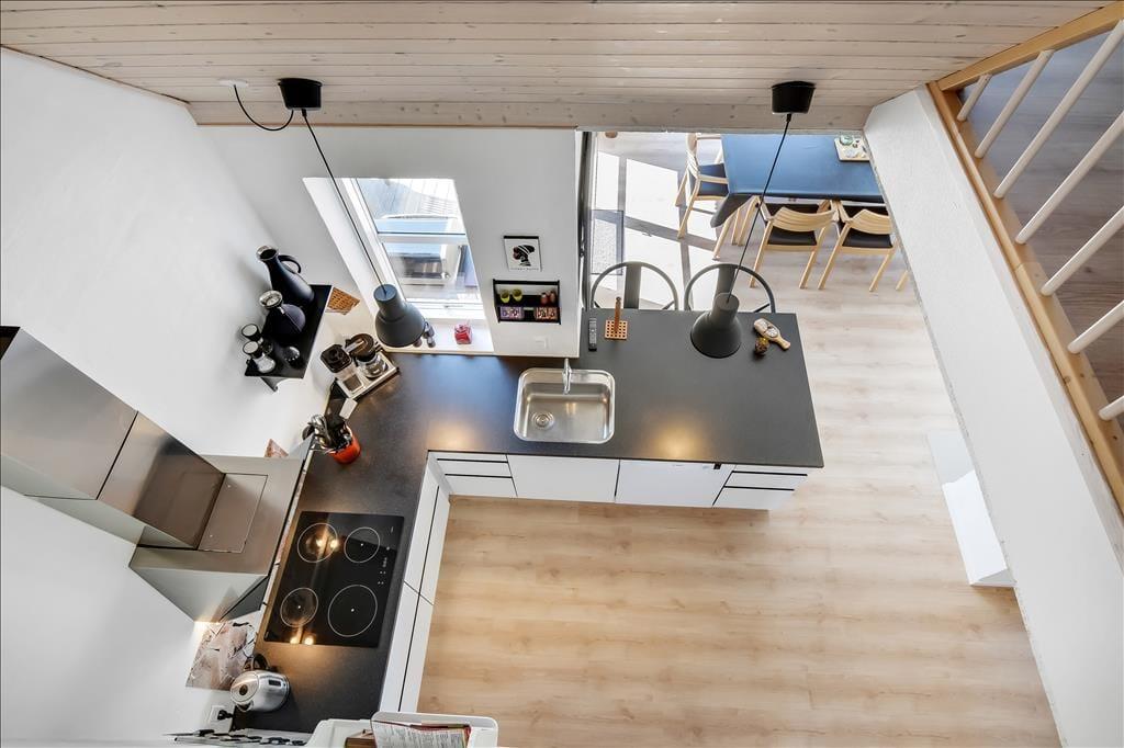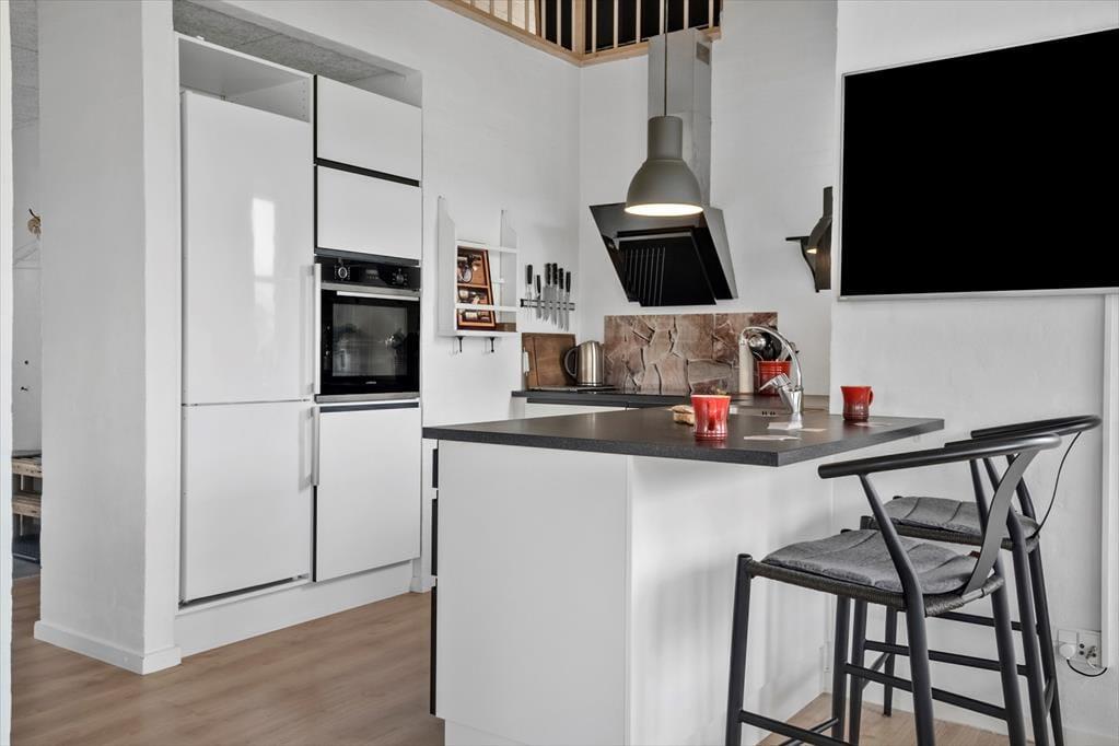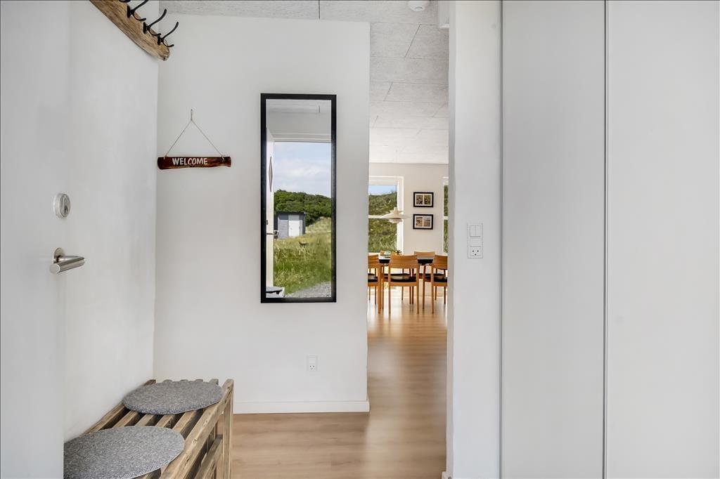 Sommerhuset er indrettet i to plan, og allerede når du træder indenfor, fornemmer du den varme og velgennemtænkte atmosfære. I stueplan finder du opholdsstuen med brændeovn og store vinduer, som inviterer dagslyset indenfor og skaber en rolig ramme om familiens feriestunder. Herfra er der direkte udgang til terrassen, så inde- og udeliv let smelter sammen. Spaen og saunaen ligger i stueetagen og er oplagte til en stund med selvforkælelse – især efter en blæsende tur ved havet. På første sal finder du et lyst og hyggeligt fællesrum med både sofagruppe og bordfodbold, som indbyder til leg, grin og hyggelige timer sammen. Indretningen emmer af kvalitet, og uanset årstid er det let at finde roen og komme ned i gear her.