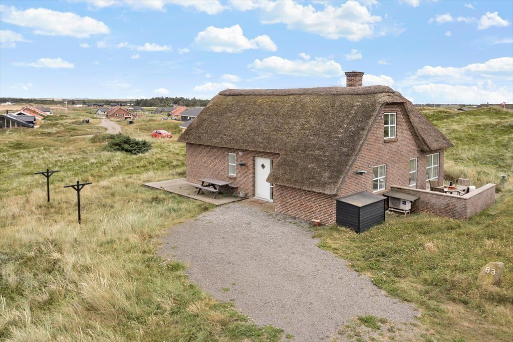 Drømmer du om at holde ferie midt i det vilde klitlandskab, hvor naturens skønhed og komfort går hånd i hånd? Så er ferieboligen på Doblervej 83 i Vejlby Klit et oplagt valg. Her får du et lækkert og velindrettet sommerhus med stråtag og udsigt til klitterne – placeret på en stor naturgrund i første klitrække. Indendørs spa, sauna og et hyggeligt aktivitetsområde på førstesalen gør huset ideelt til både afslapning og samvær – året rundt.