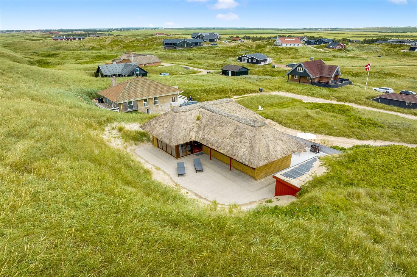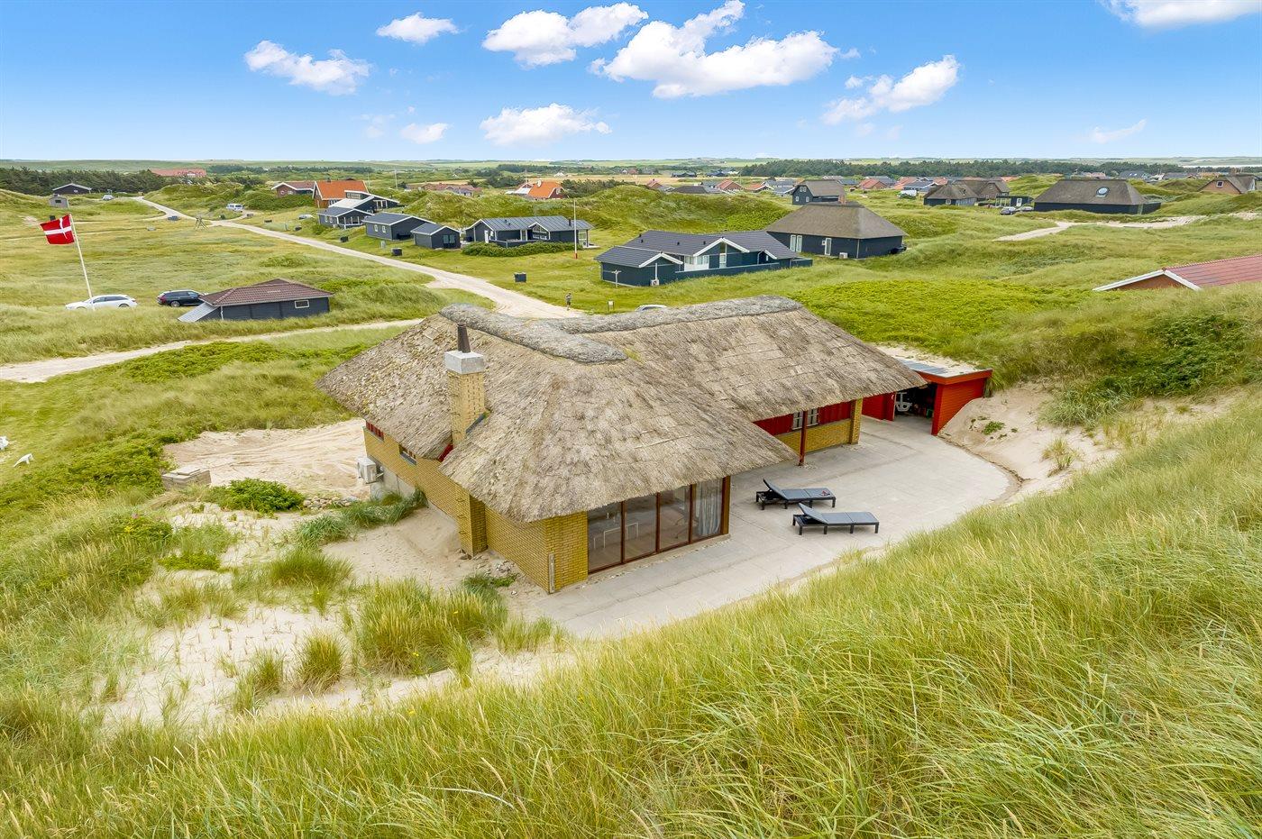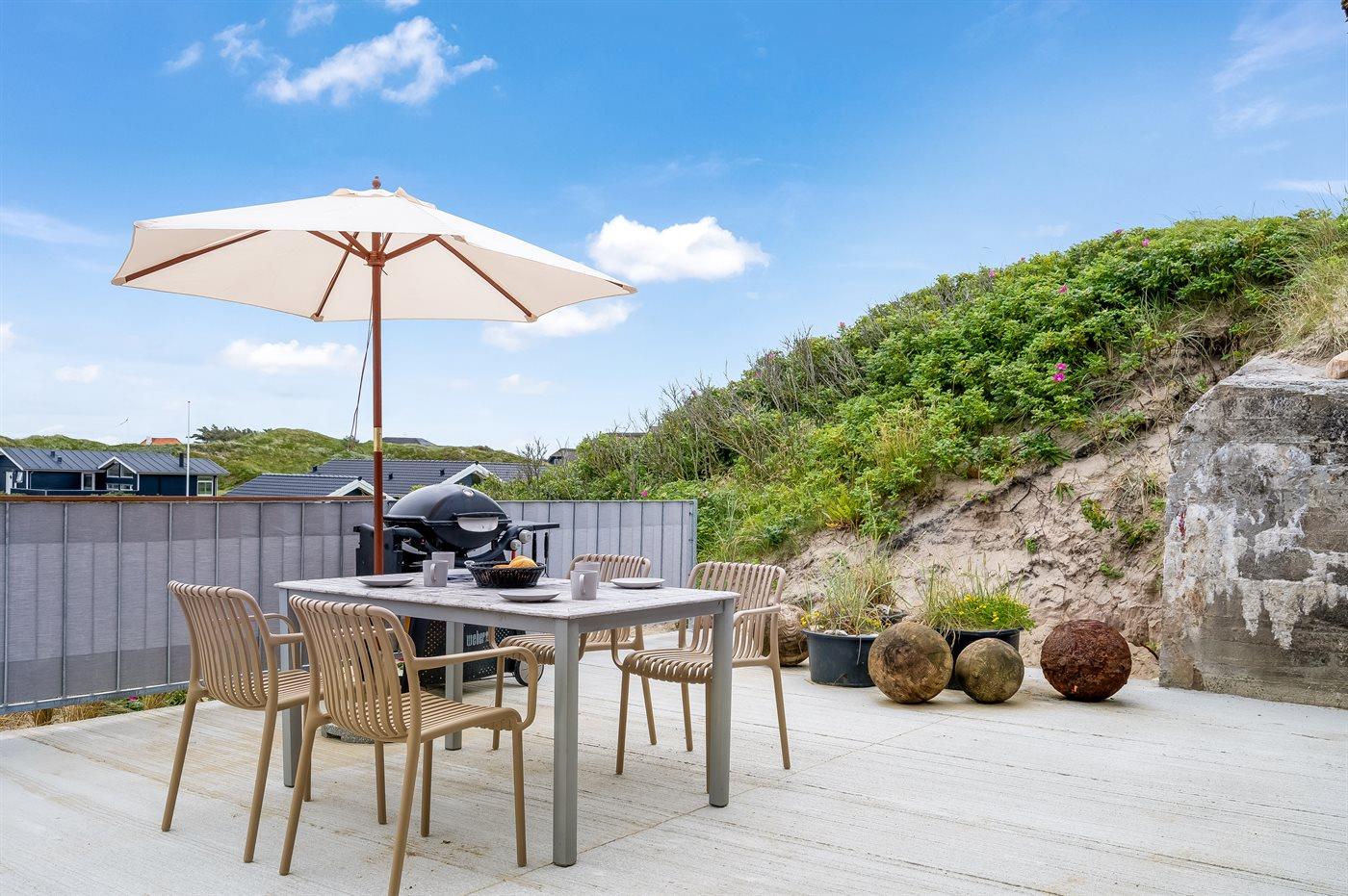 Ferieboligen er beliggende på en 7881 m² stor klitgrund. Der er 100 m til havet. Nærmeste forretning er beliggende i en afstand af 5000 m. Til ferieboligen hører åbent terrasseareal. Der er installeret stik til opladning af elbil. Type 2 stik. Med 11 kW ladeeffekt. Parkering ved ferieboligen.