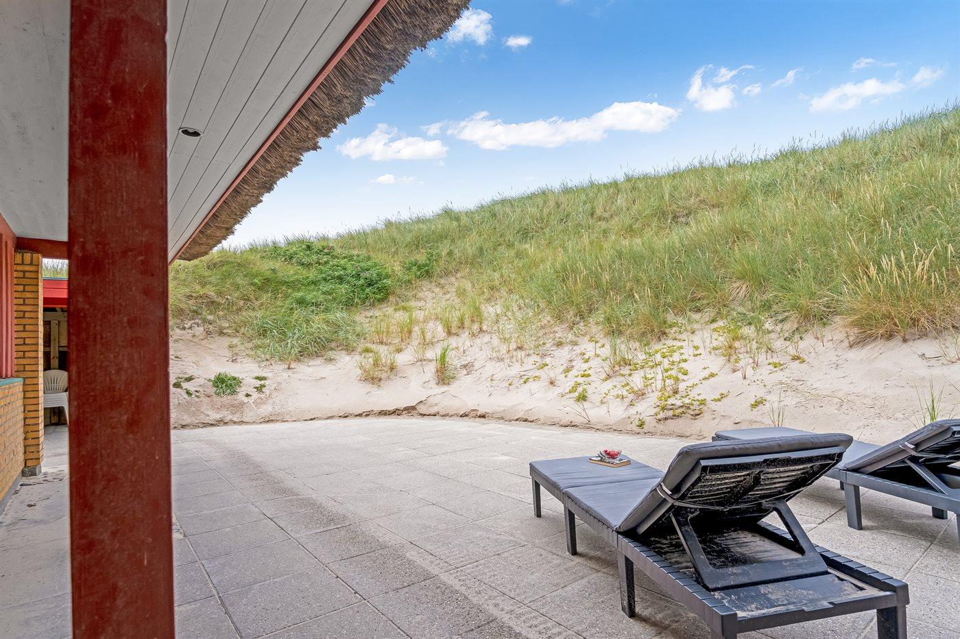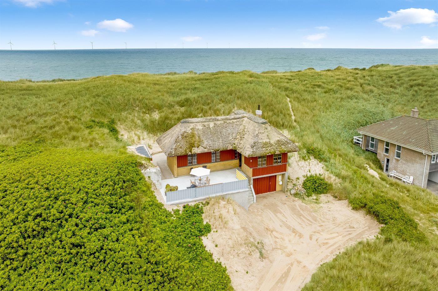 Hyggeligt sommerhus i første klitrække med stor grund og direkte adgang til stranden i Vejlby Klit.
