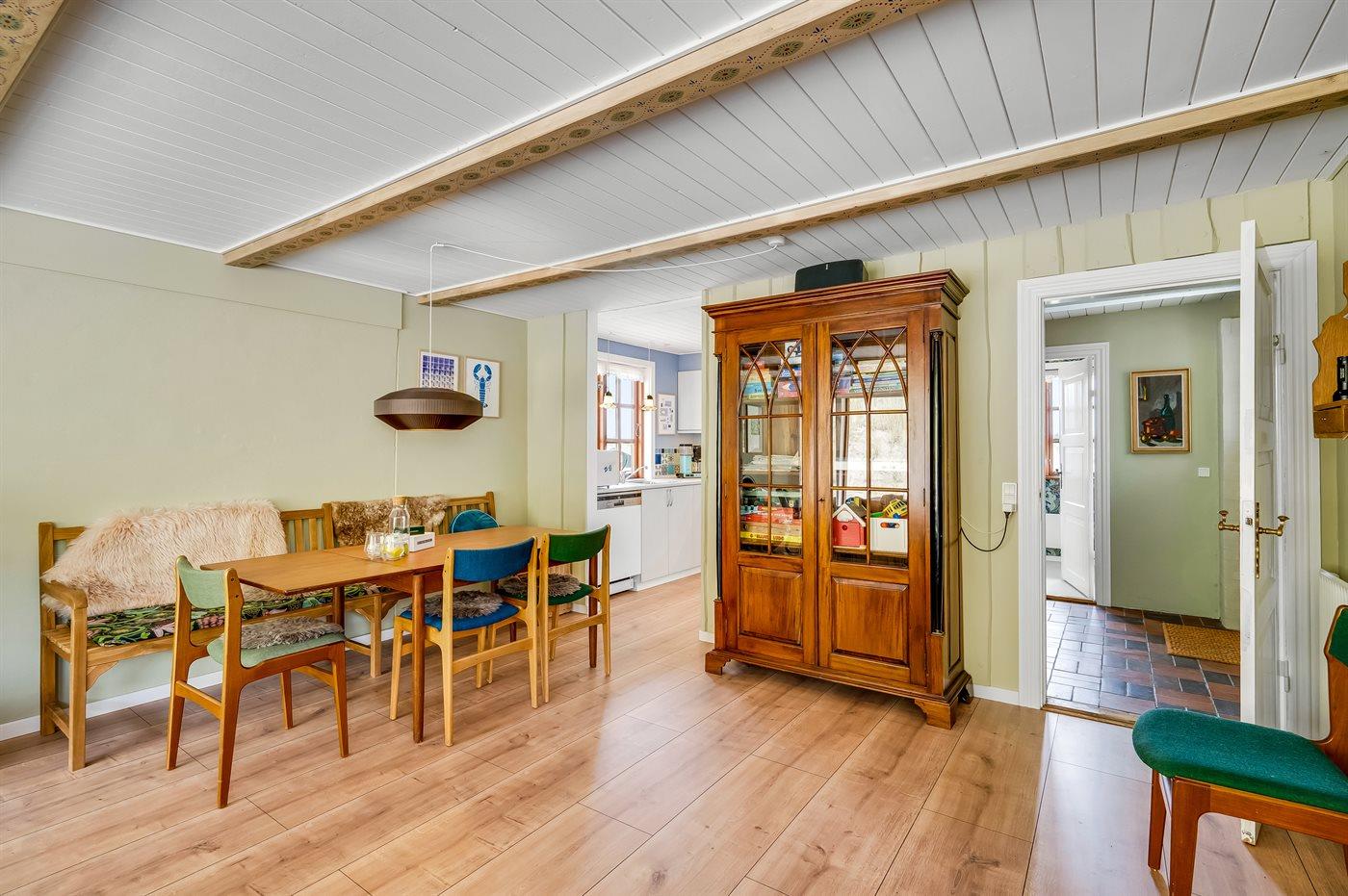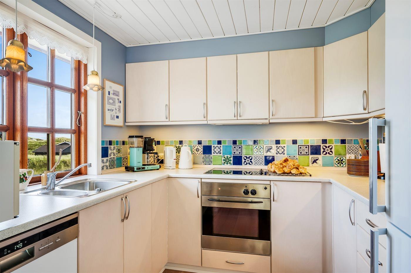 Køkkenet er udstyret med 1 køleskab. Der er 4 keramiske kogeplader, varmluftovn, mikrobølgeovn samt opvaskemaskine.
