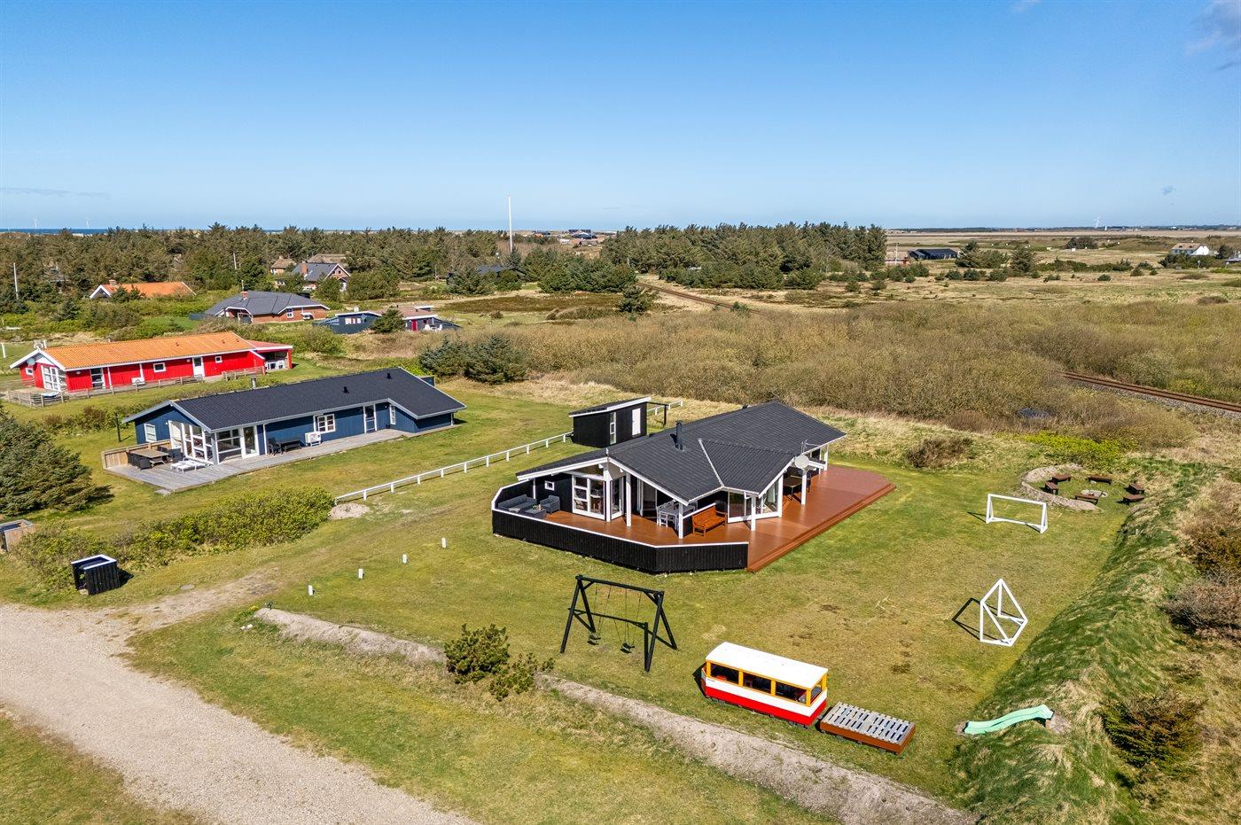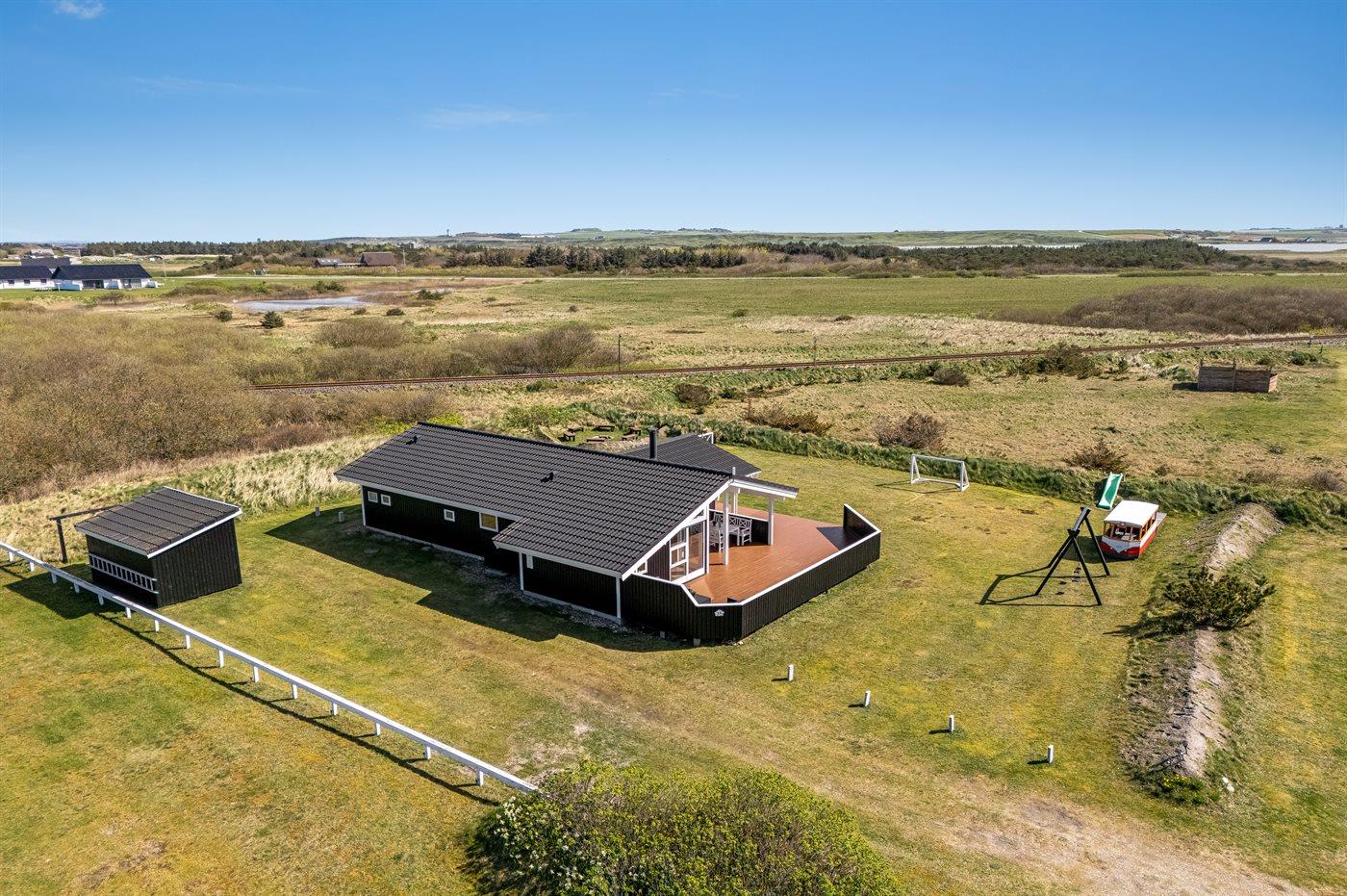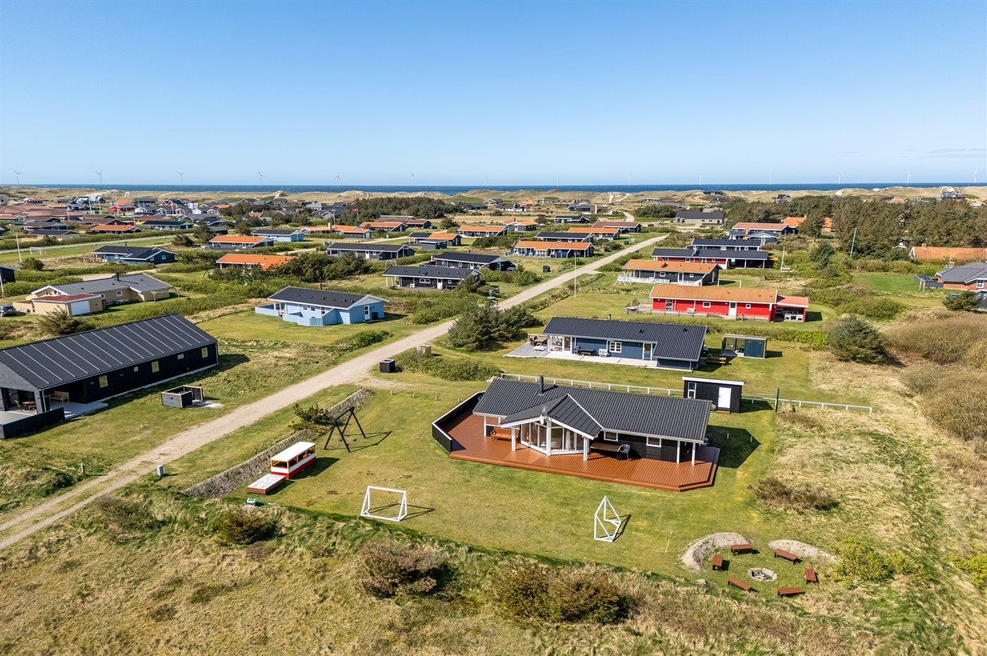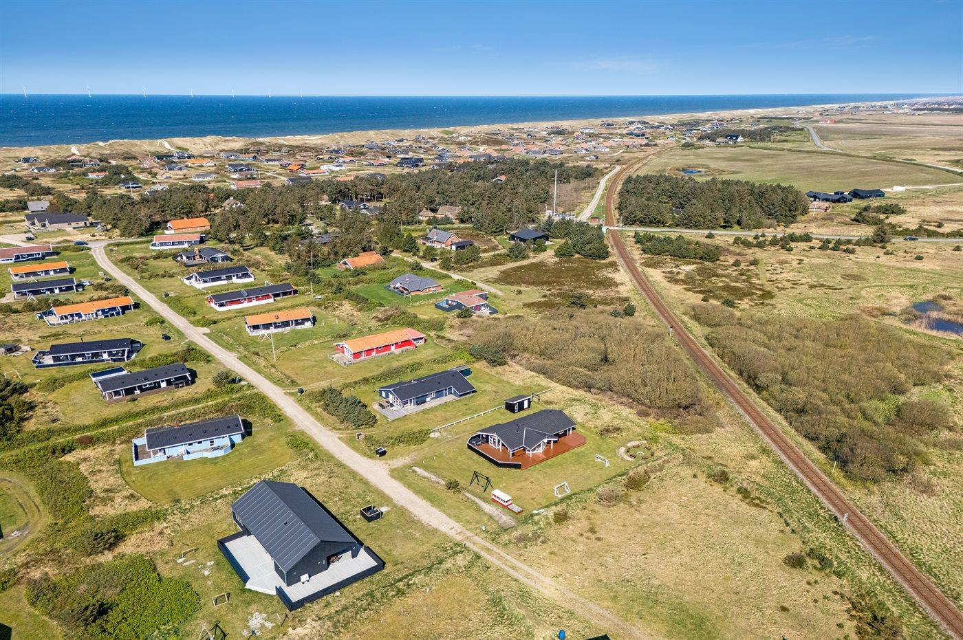 Ferieboligen er beliggende på en 1200 m² stor klitgrund. Der er 650 m til havet. Nærmeste forretning er beliggende i en afstand af 300 m. Til ferieboligen hører åbent terrasseareal. Desuden er der overdækket terrasse. Gynge. Sandkasse. Legehus. Fodboldmål. Bålsted. Der er installeret stik til opladning af elbil. Type 2 stik. Parkering ved ferieboligen.