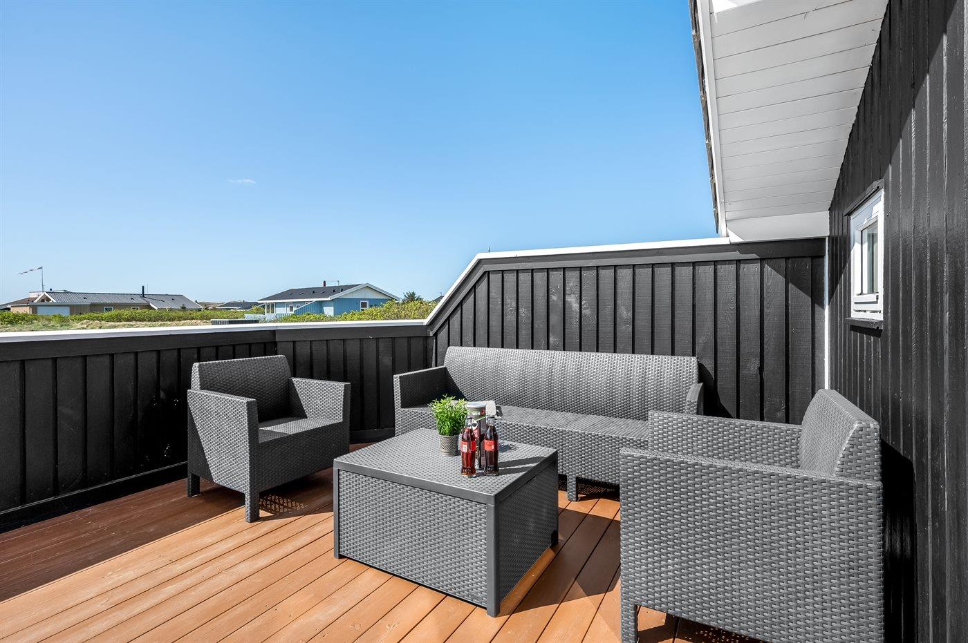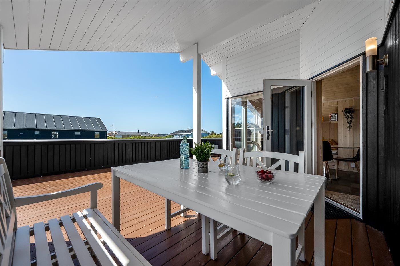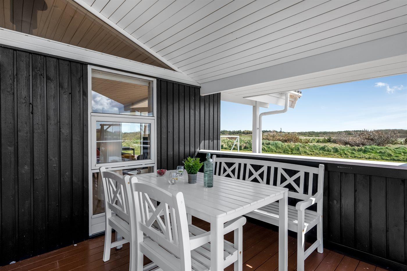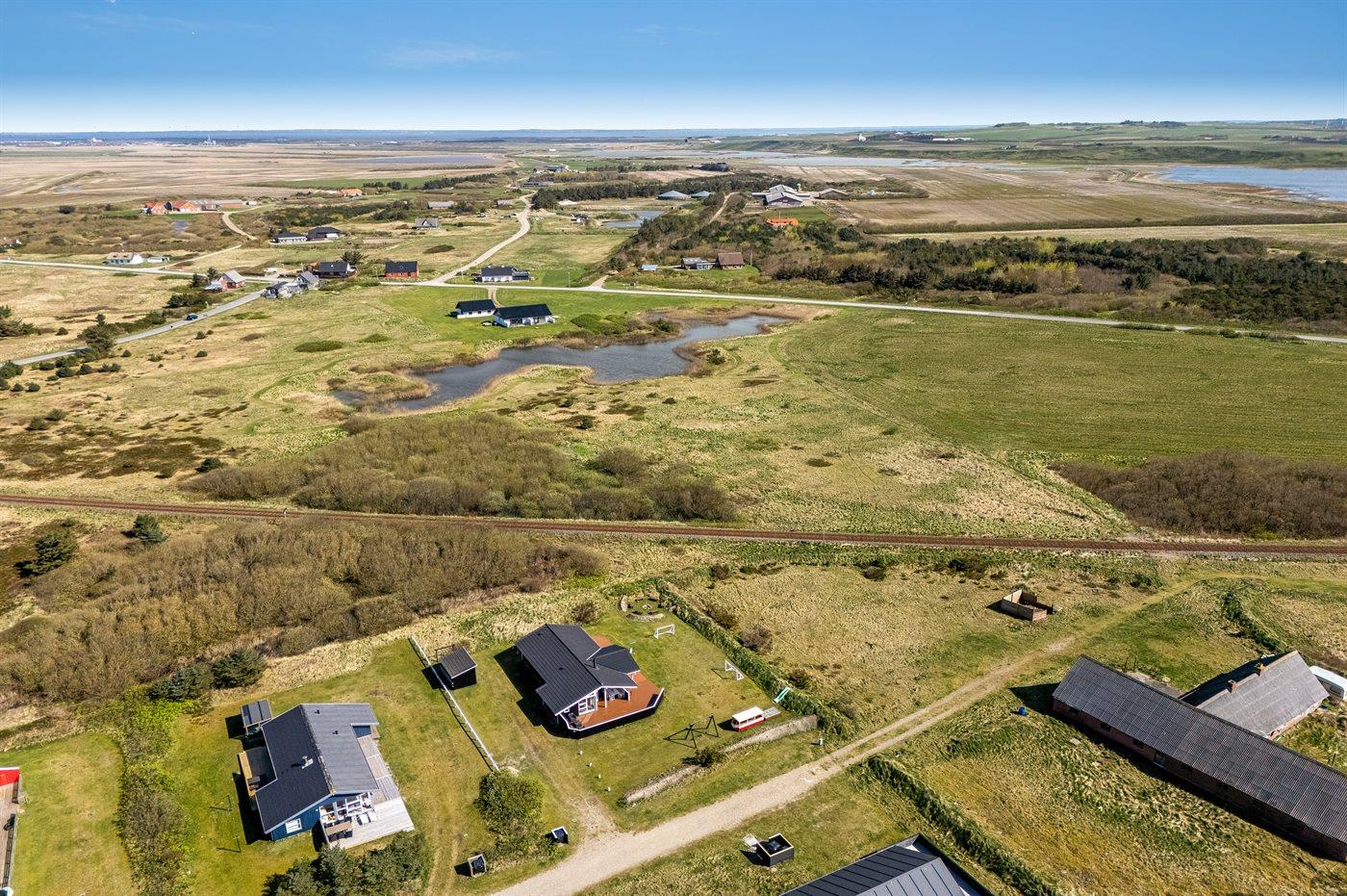 Ferieboligen er beliggende på en 1200 m² stor klitgrund. Der er 650 m til havet. Nærmeste forretning er beliggende i en afstand af 300 m. Til ferieboligen hører åbent terrasseareal. Desuden er der overdækket terrasse. Gynge. Sandkasse. Legehus. Fodboldmål. Bålsted. Der er installeret stik til opladning af elbil. Type 2 stik. Parkering ved ferieboligen.