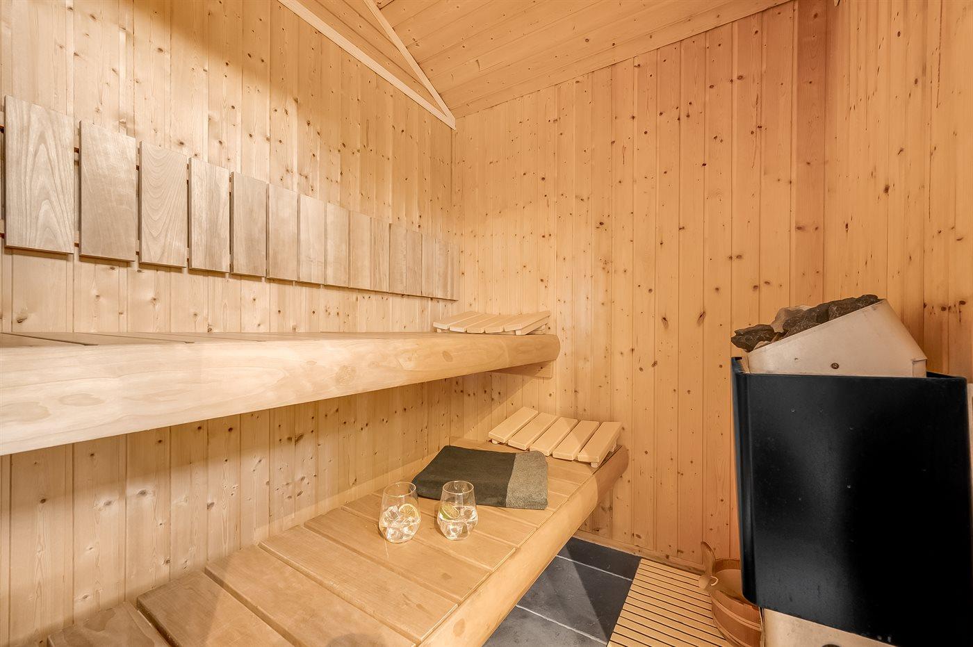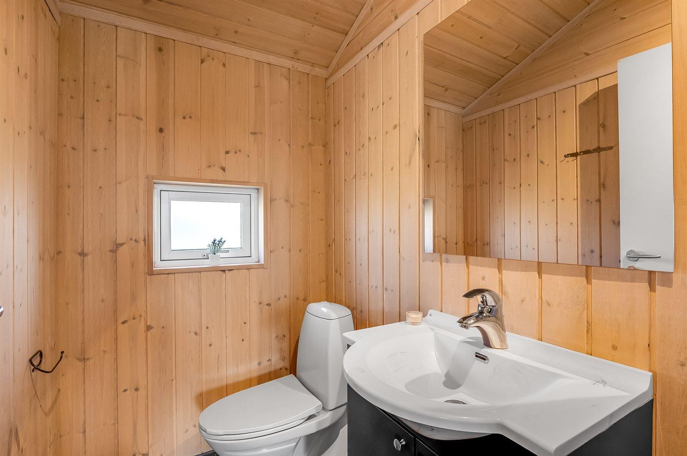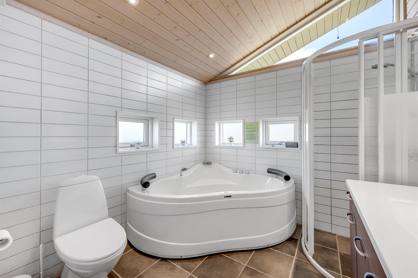 Der er 1 badeværelse med bruseniche og 2 toiletter, heraf 1 gæstetoilet. Der er gulvvarme på 2 badeværelser. I saunaen er der mulighed for afslapning.
