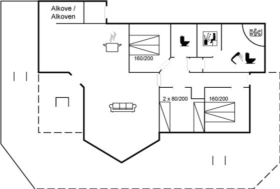 Der er i alt 3 soveværelser. Sovepladserne fordeler sig på: 4 sovepladser i dobbeltsenge. 2 sovepladser i enkeltsenge. Derudover er der 2 stk. barnesenge.