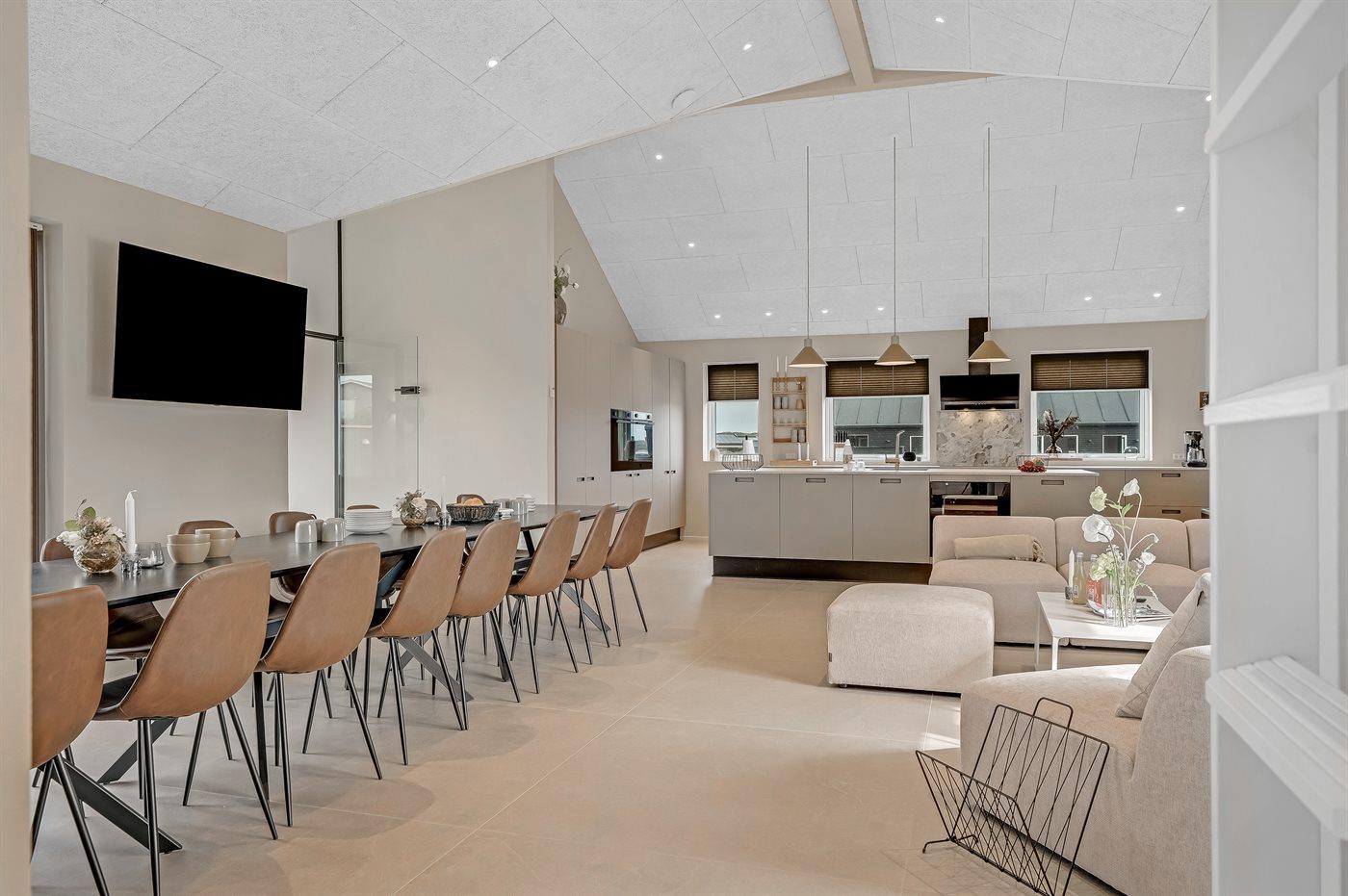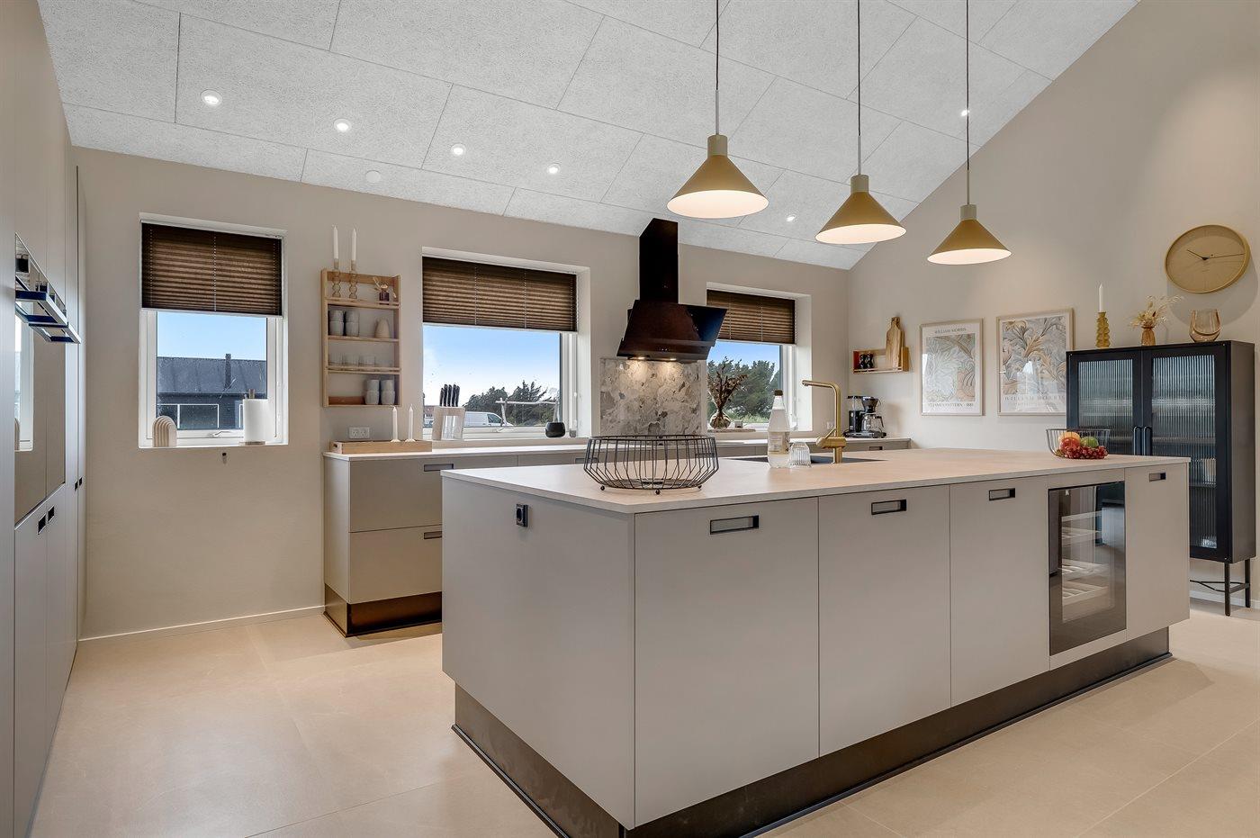 Allerede ved ankomst mærker du den gennemførte ny-nordiske stil, de varme materialer og de store vinduespartier, som giver et behageligt lys i hele huset. Her får du et moderne designhus, hvor hver detalje er gennemtænkt. Der er gulvvarme overalt, brændeovn, energivenlig varmepumpe samt god plads til både samvær og privatliv.