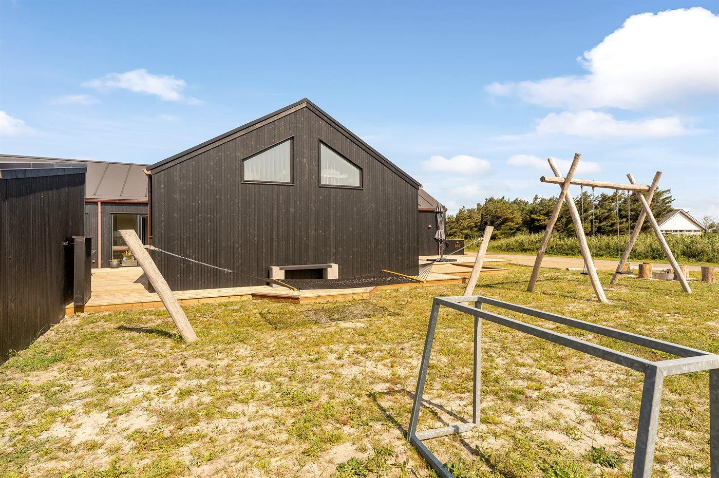 Eksklusivt sommerhus med pool, spa og sauna nær Vesterhavet, perfekt til store familier og vennegrupper.