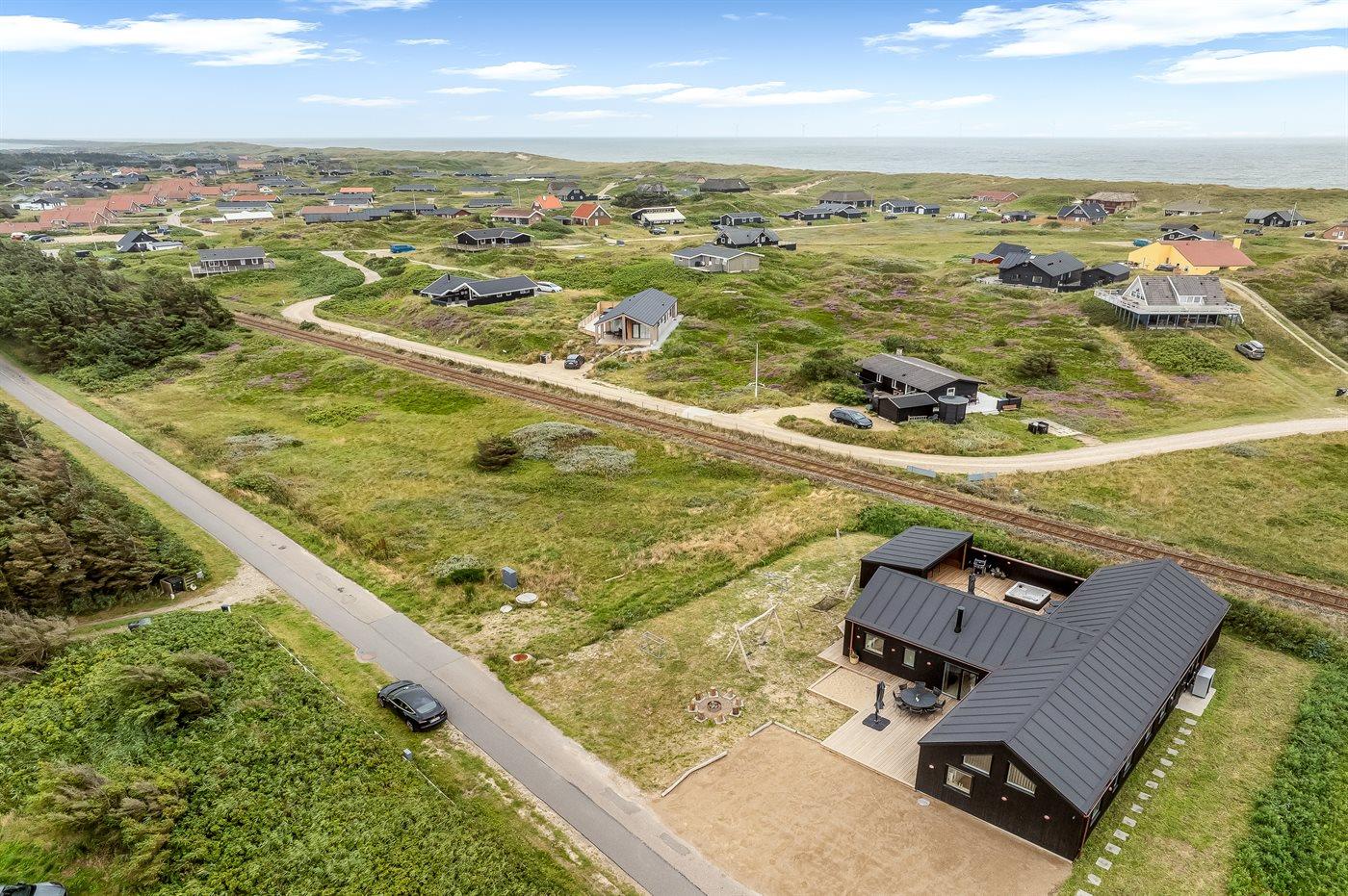 Sommerhuset ligger blot 250 meter fra Vesterhavet, og det tager få minutter at gå til stranden. Fjorden ligger seks kilometer væk og byder på naturskønne oplevelser som kajak, surf og vandreture. Den lokale veterantogsrute VLTJ passerer i nærheden af huset og giver nem adgang til både Lemvig og Thyborøn, hvor der findes caféer, butikker og familieaktiviteter.