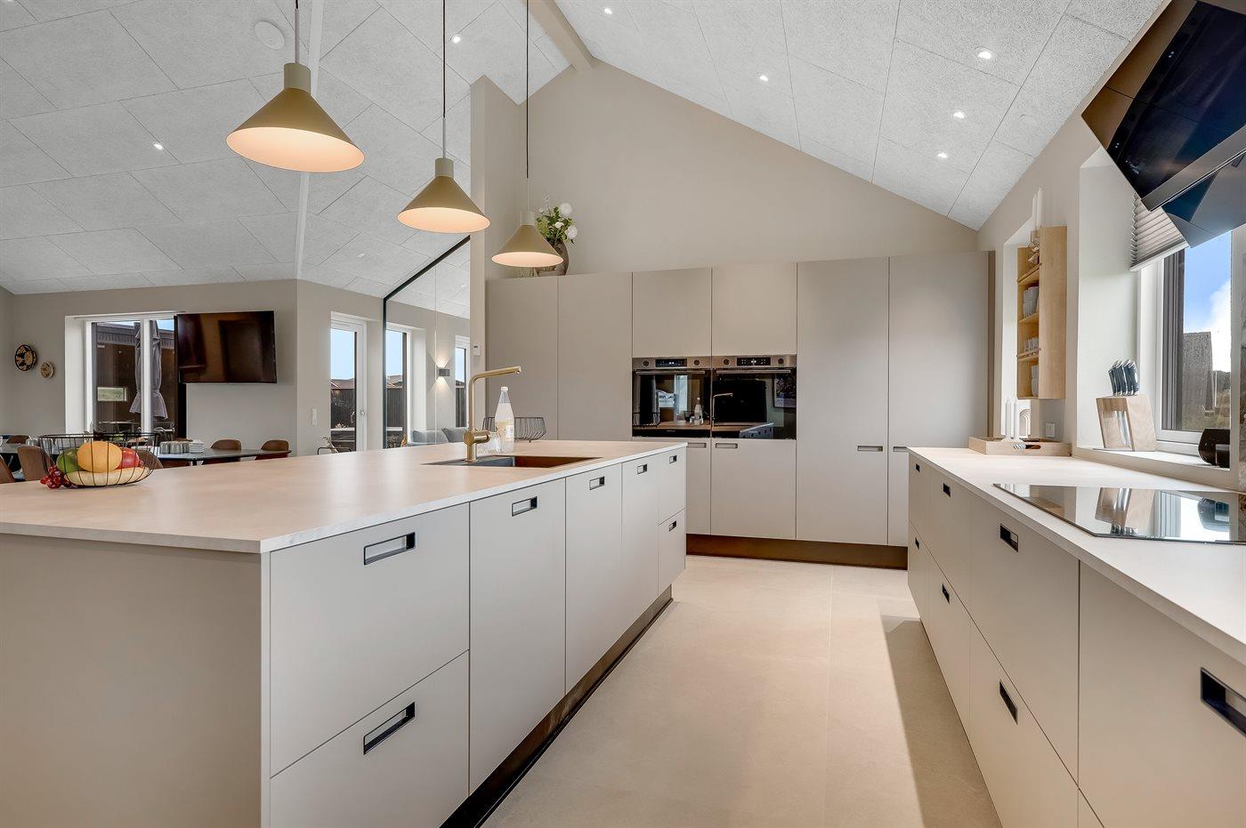 Det store køkken-alrum er husets naturlige samlingspunkt. Køkkenet har to køleskabe, vinkøleskab, seks induktionskogeplader, to varmluftovne, mikrobølgeovn og to opvaskemaskiner. Det er ideelt indrettet til fælles madlavning og hyggelige middagsselskaber.