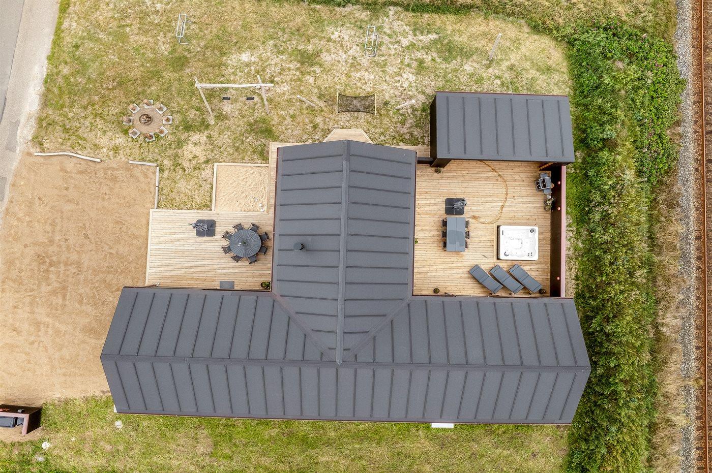 Udendørs venter en stor naturgrund på 3040 m² med både terrasser, overdækket loungeområde, bålsted samt udendørs bruser. Den overdækkede terrasse har to terrassevarmere, som forlænger sommeraftenerne og gør det muligt at sidde ude, selv når temperaturen falder. For børnene er der gynge, rutsjebane, sandkasse og fodboldmål. Her er der plads til, at alle kan udfolde sig.