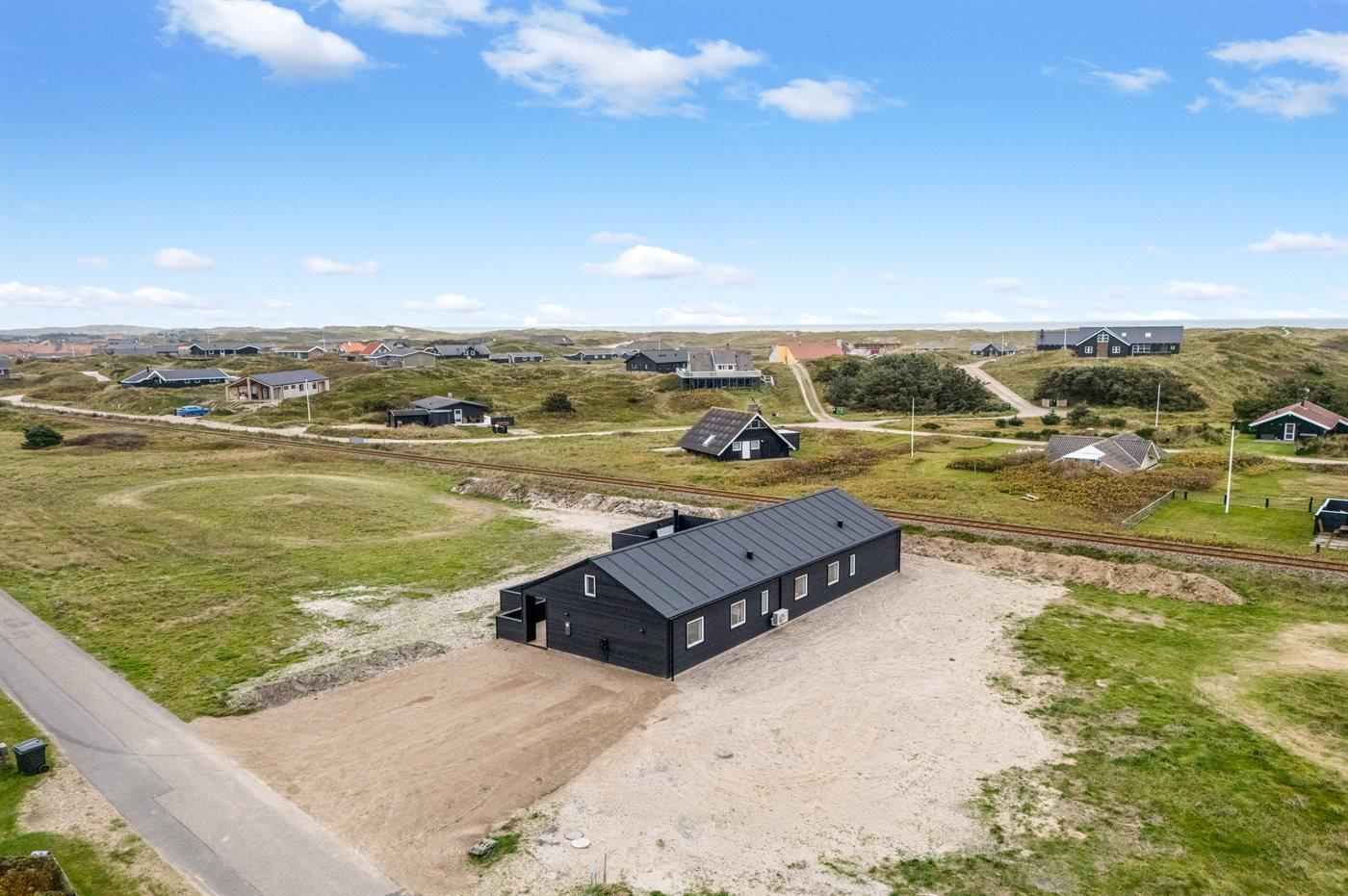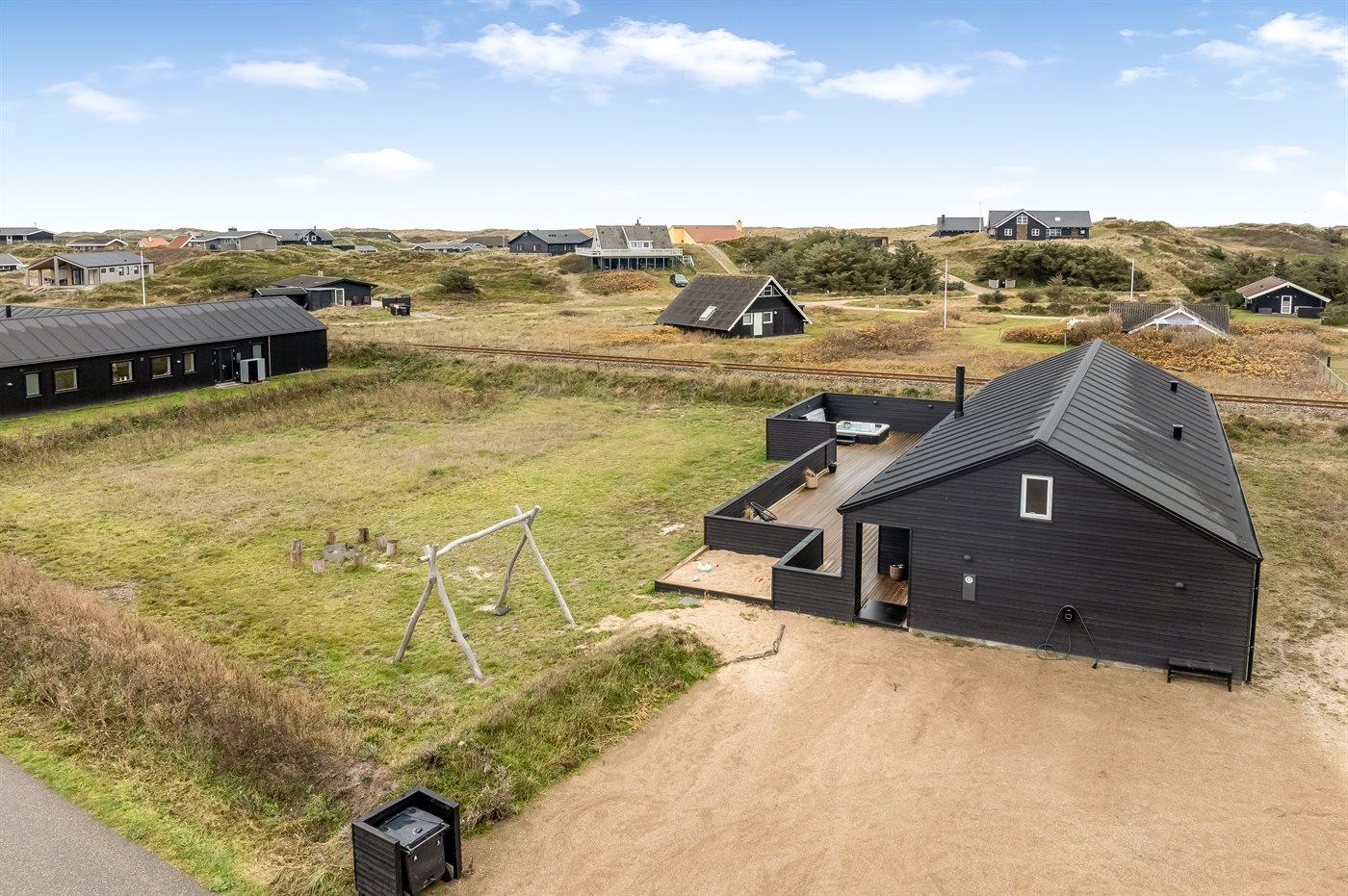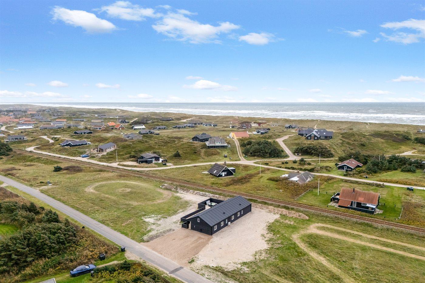 Ferieboligen er beliggende på en 2000 m² stor klitgrund. Der er 300 m til havet. Til ferieboligen hører åbent terrasseareal. Desuden er der overdækket terrasse. Gynge. Sandkasse. Der er installeret stik til opladning af elbil. Type 2 stik. Parkering ved ferieboligen.