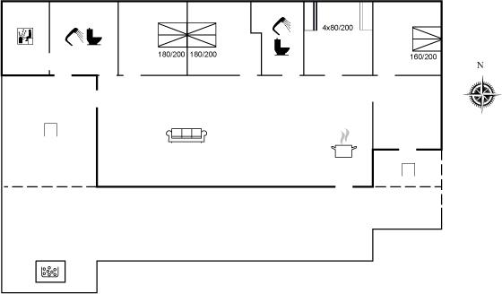 Der er i alt 4 soveværelser. Sovepladserne fordeler sig på: 6 sovepladser i dobbeltsenge. 4 sovepladser i køjesenge. 2 sovepladser på madrasser. 2 af disse sovepladser befinder sig på husets hems. Derudover er der 1 stk. barneseng.
