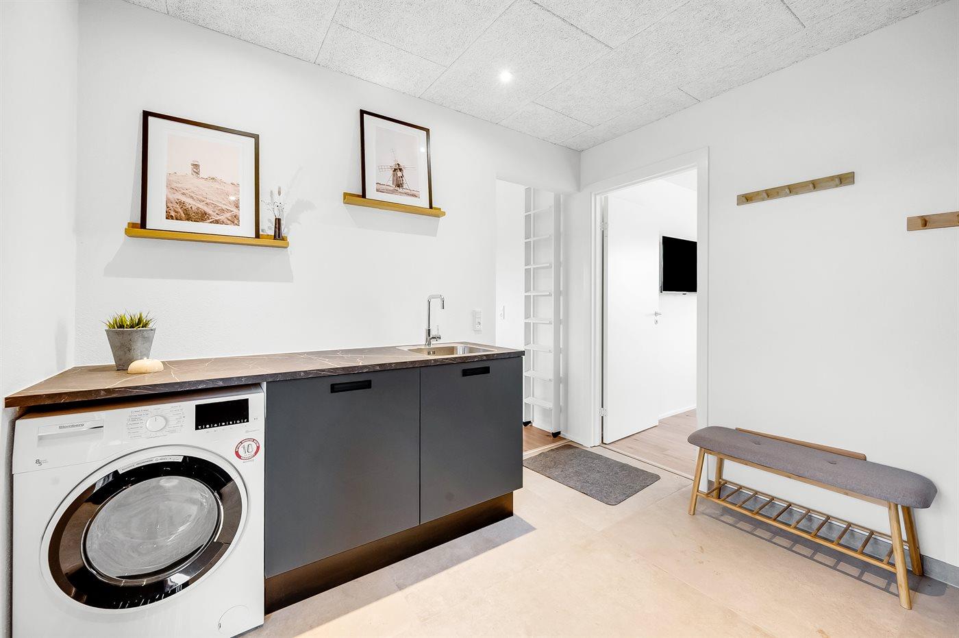 Køkkenet er udstyret med 2 køleskabe. Der er 4 induktionskogeplader, varmluftovn, mikrobølgeovn samt opvaskemaskine.