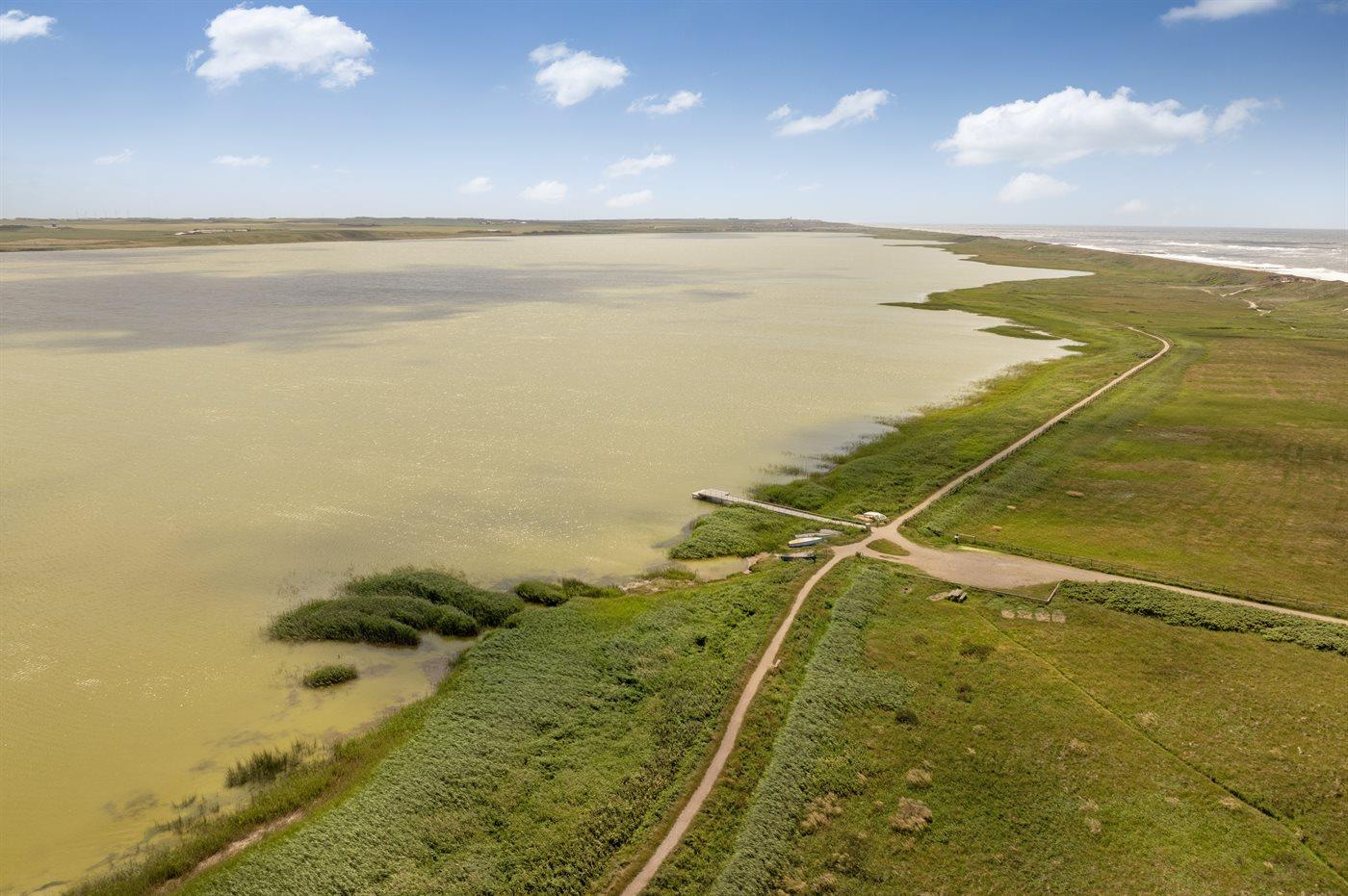 Smagfuldt feriehus med udsigt over Ferring Sø og kun 250 m til Vesterhavet.