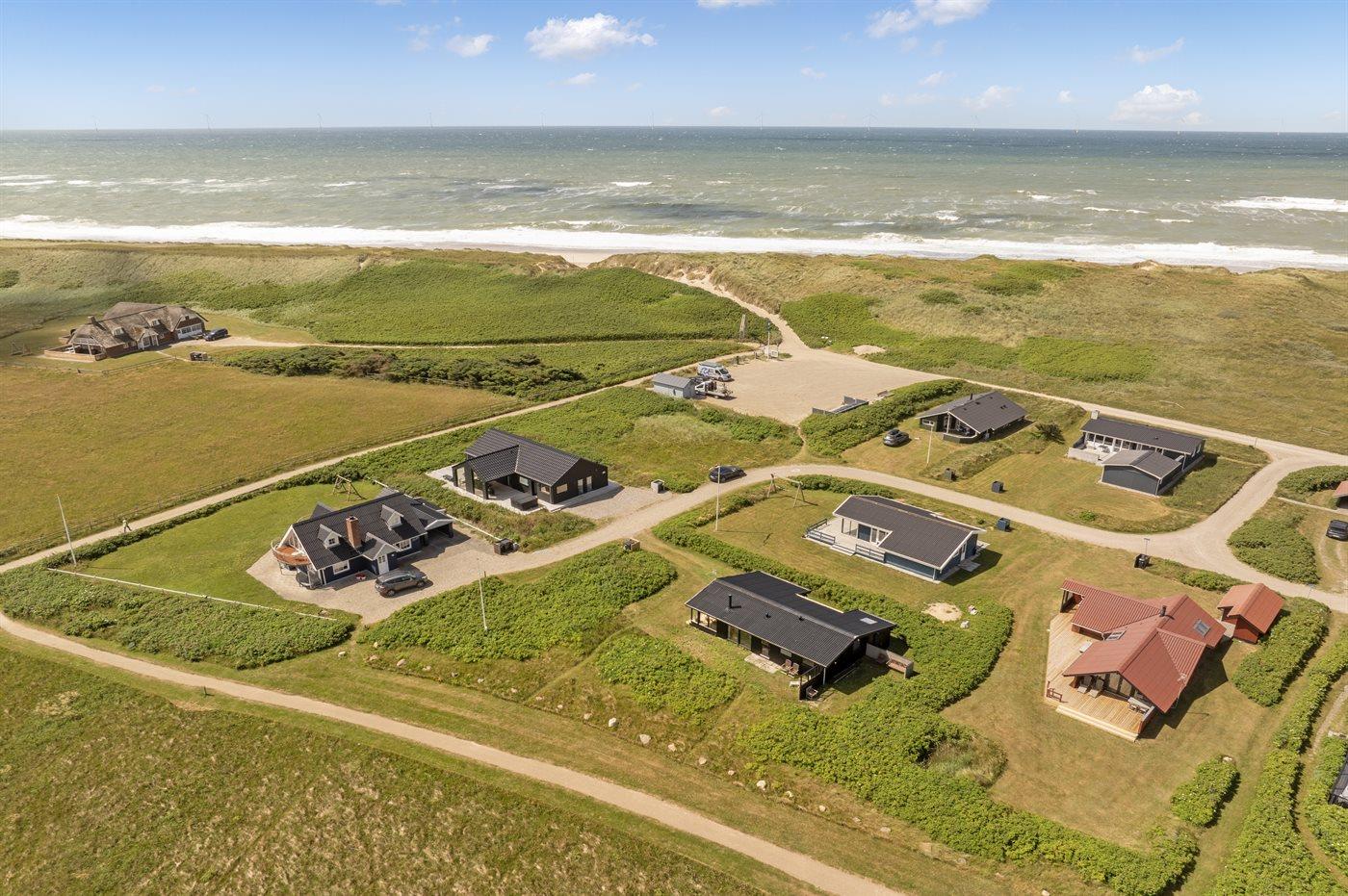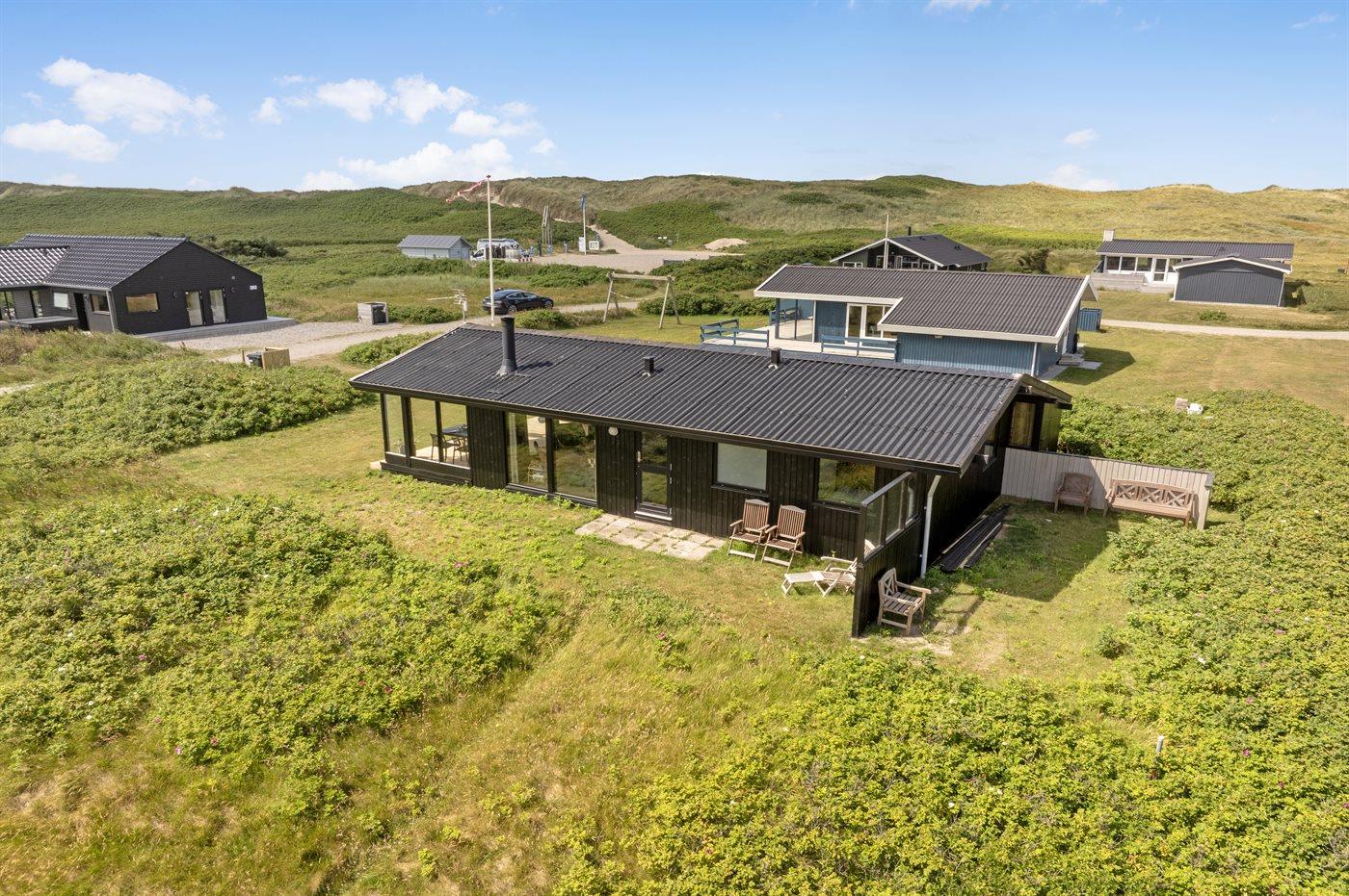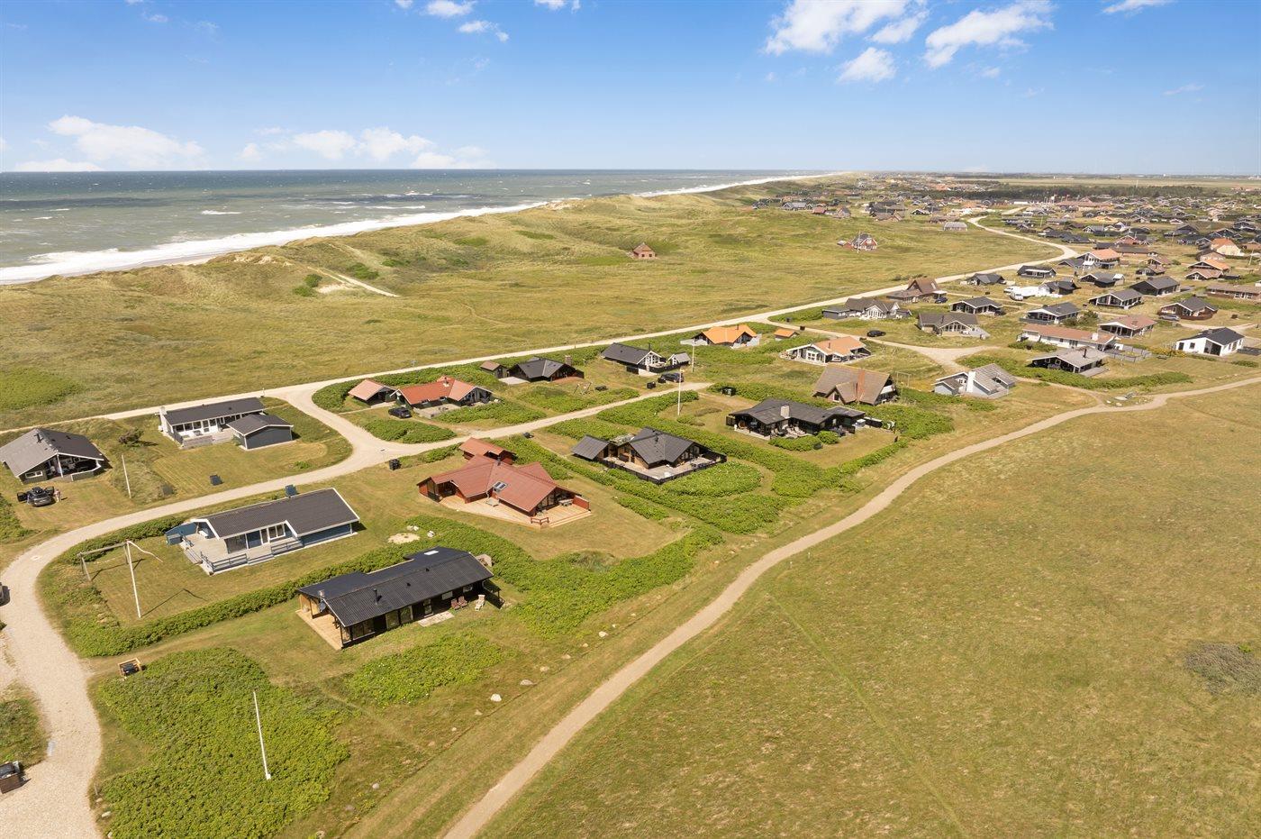 Ferieboligen er beliggende på en 745 m² stor klitgrund. Der er 250 m til havet. Der er en sø i en afstand af 150 m. Nærmeste forretning er beliggende i en afstand af 950 m. Desuden er der overdækket terrasse. Der ligger en legeplads i en afstand af 750 m. Parkering ved ferieboligen.