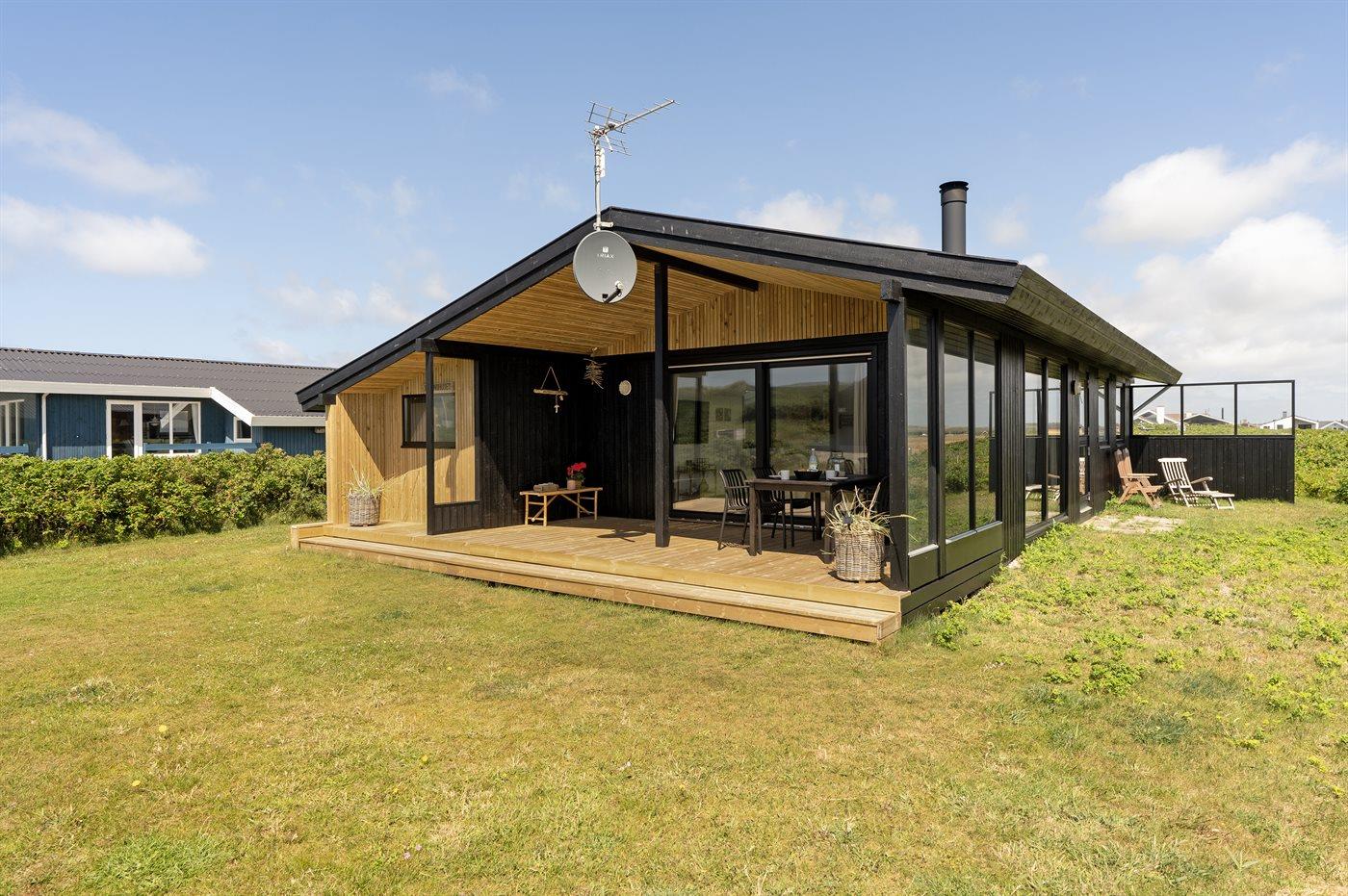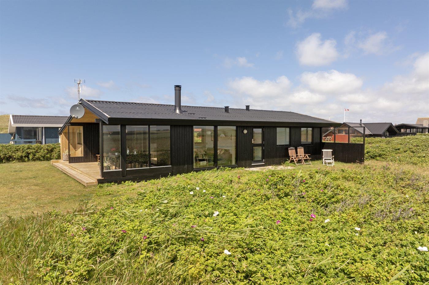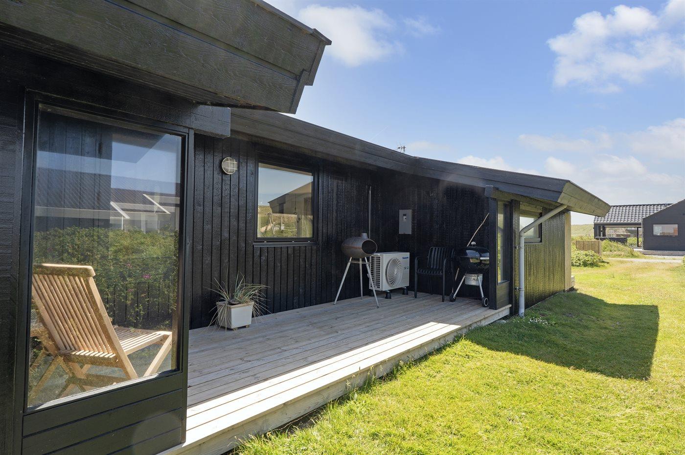 Ferieboligen er beliggende på en 745 m² stor klitgrund. Der er 250 m til havet. Der er en sø i en afstand af 150 m. Nærmeste forretning er beliggende i en afstand af 950 m. Desuden er der overdækket terrasse. Der ligger en legeplads i en afstand af 750 m. Parkering ved ferieboligen.