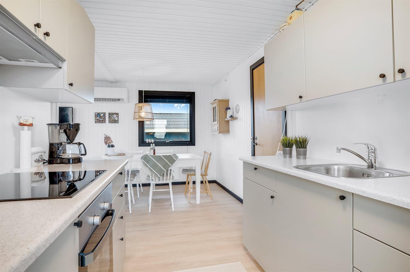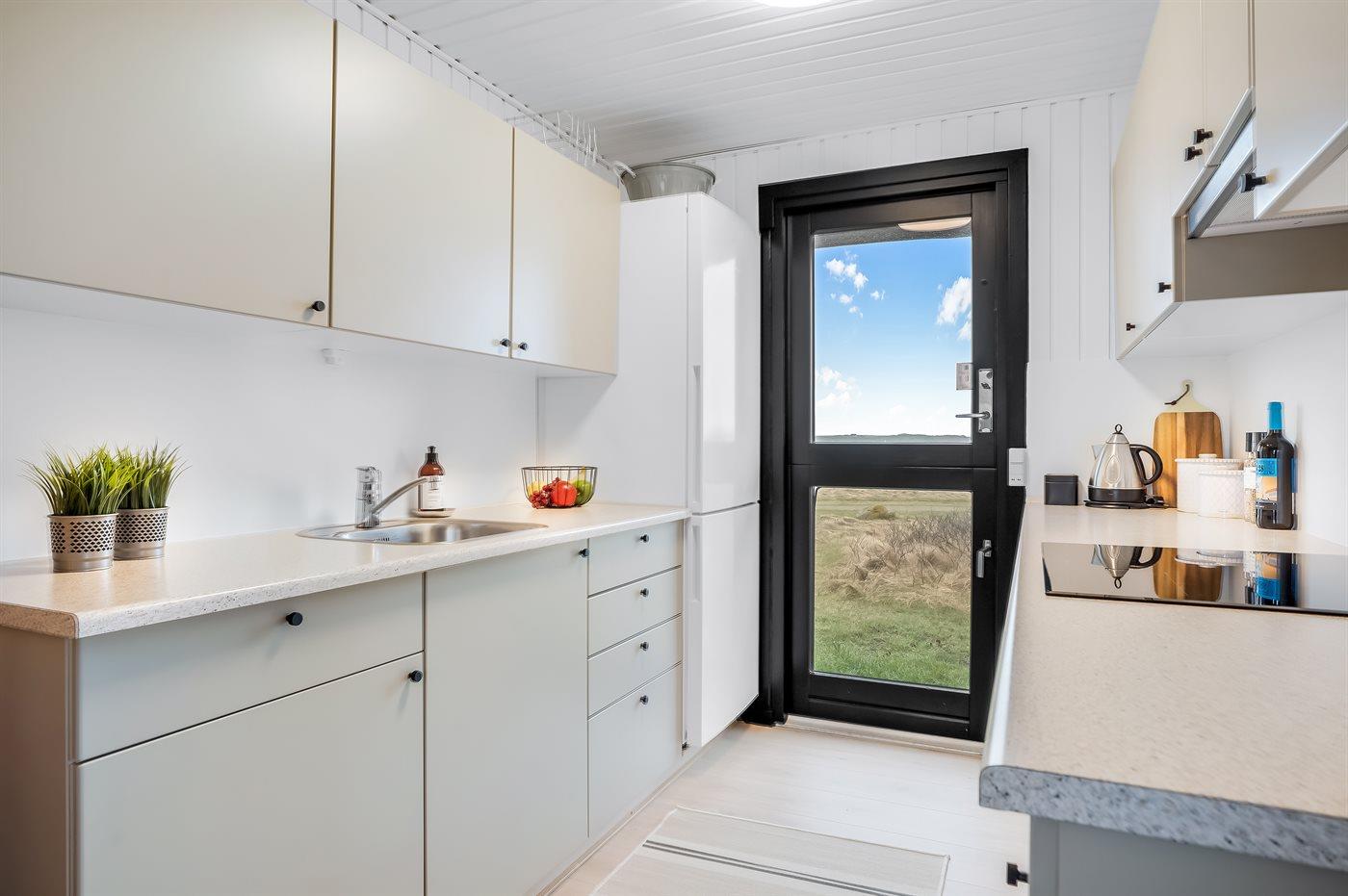 Køkkenet er udstyret med 1 køleskab. Der er 4 induktionskogeplader, miniovn, varmluftovn, mikrobølgeovn.