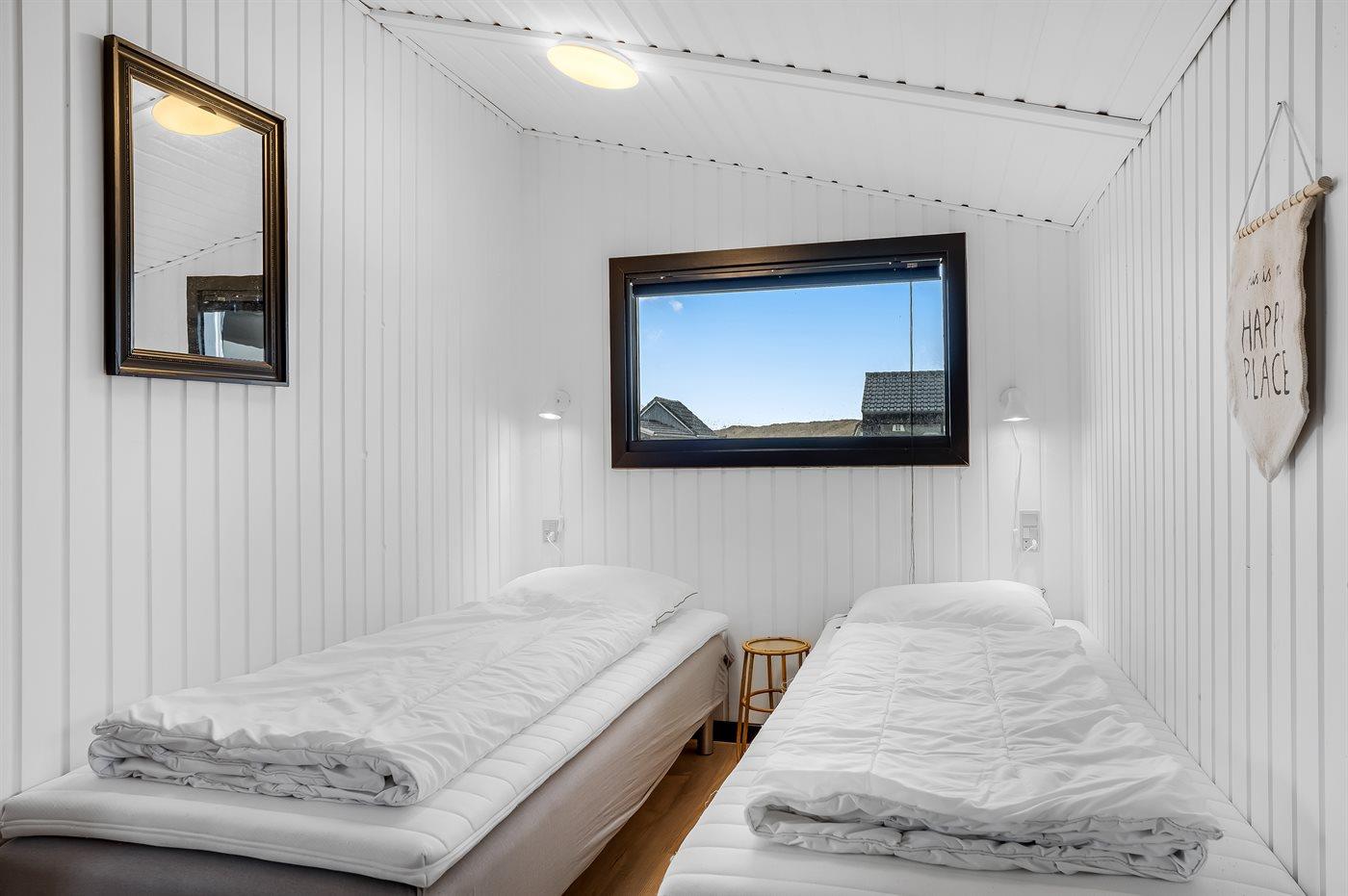 Der er i alt 3 soveværelser. Sovepladserne fordeler sig på: 4 sovepladser i dobbeltsenge. 2 sovepladser i enkeltsenge.