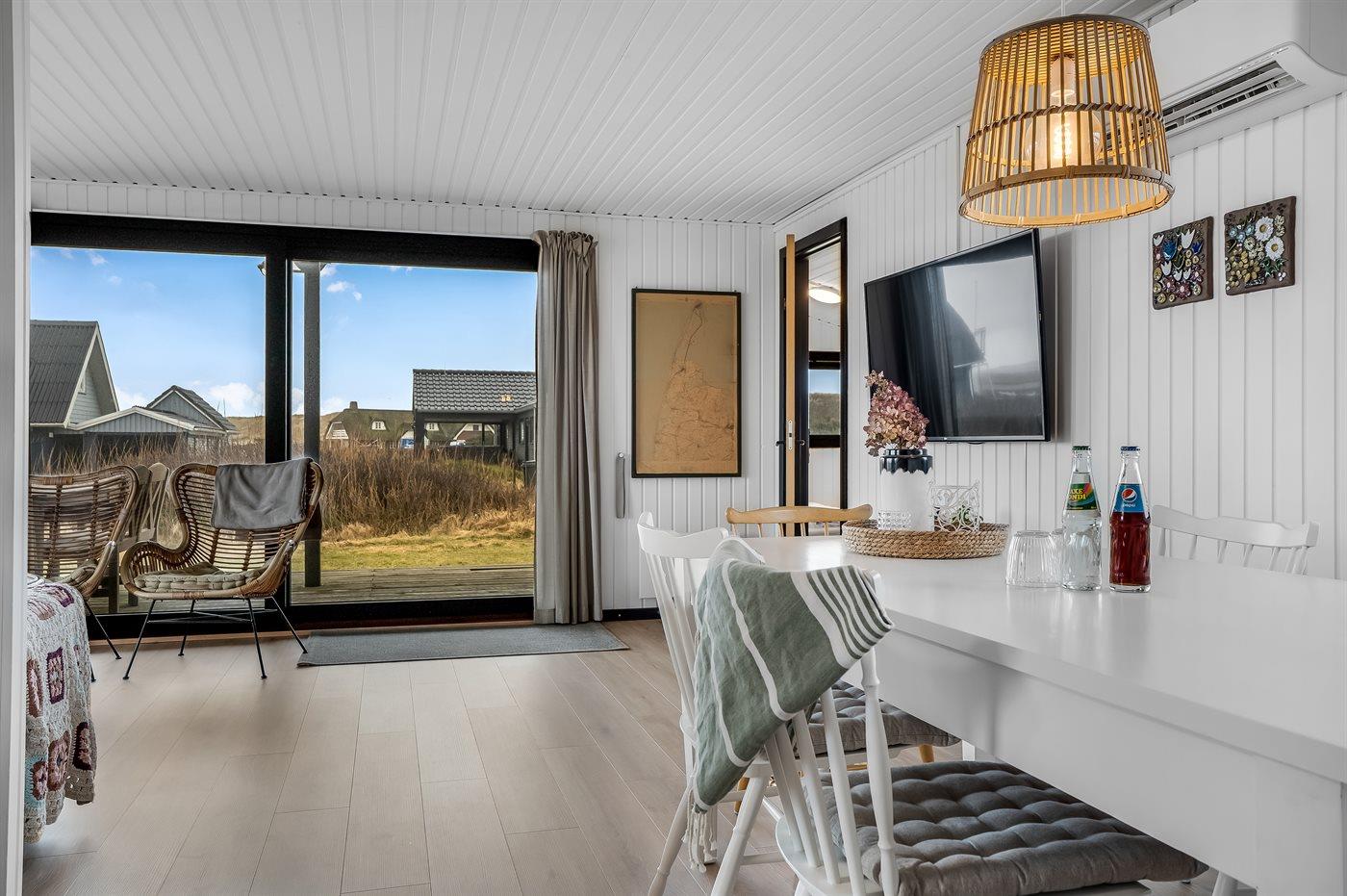 Få en uforglemmelig ferie i dette skønne og smagfuldt indrettede feriehus. Lad stress og bekymringer forsvinde, når du sidder i sofaen og kigger ud over Ferring Sø - det er som meditation for krop og sjæl. En tur til Vesterhavet kan også gøre godt, og der er absolut ikke langt til det blæsende hav, som er evigt foranderligt.