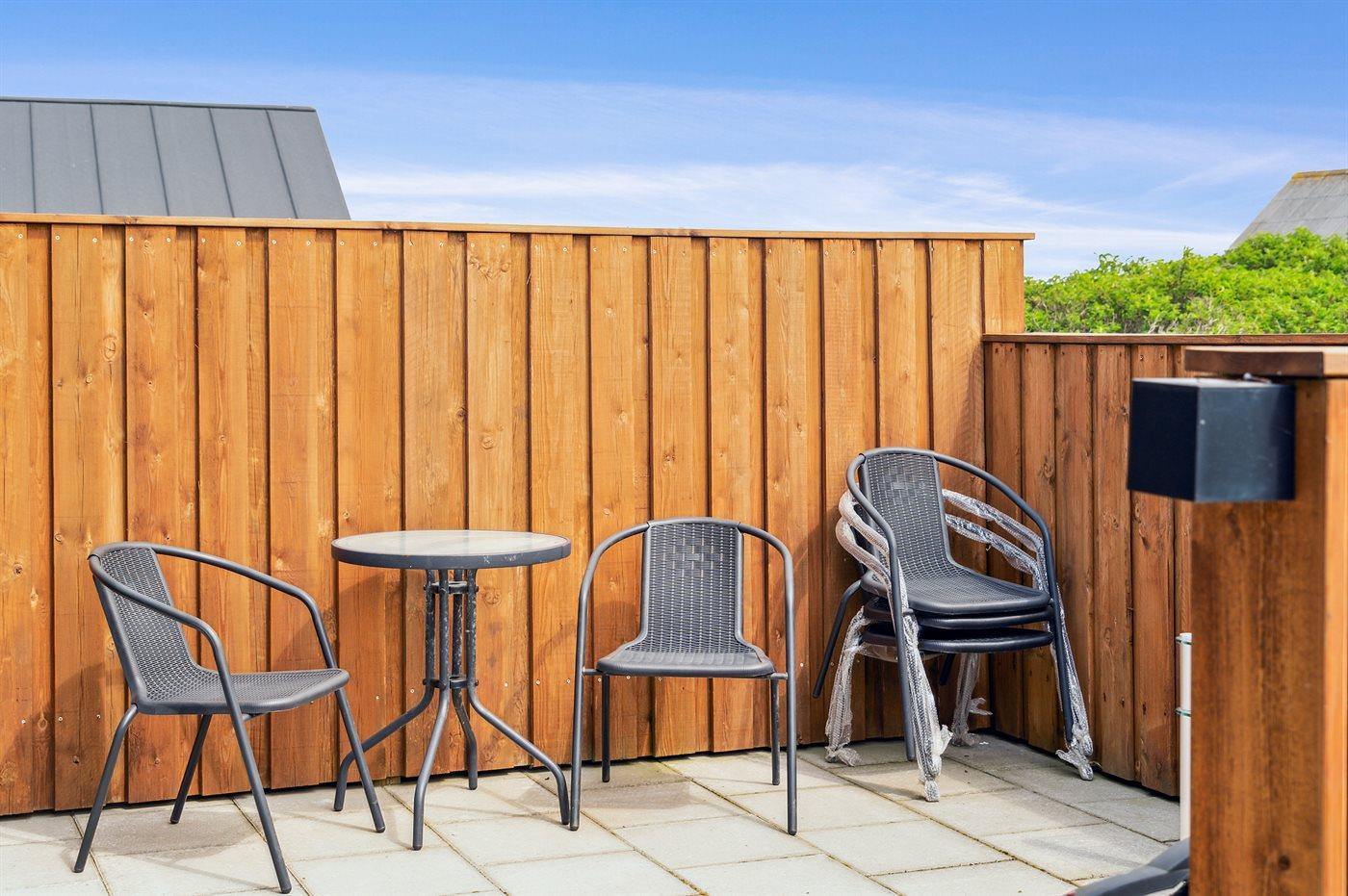 Ferieboligen er beliggende på en 845 m² stor klitgrund. Der er 700 m til havet. Nærmeste forretning er beliggende i en afstand af 300 m. Til ferieboligen hører 36 m² terrasseareal. Desuden er der 6 m² overdækket terrasse. Der er redskabsrum. Der ligger en legeplads i en afstand af 100 m. Grill til rådighed. Parkering ved ferieboligen.
