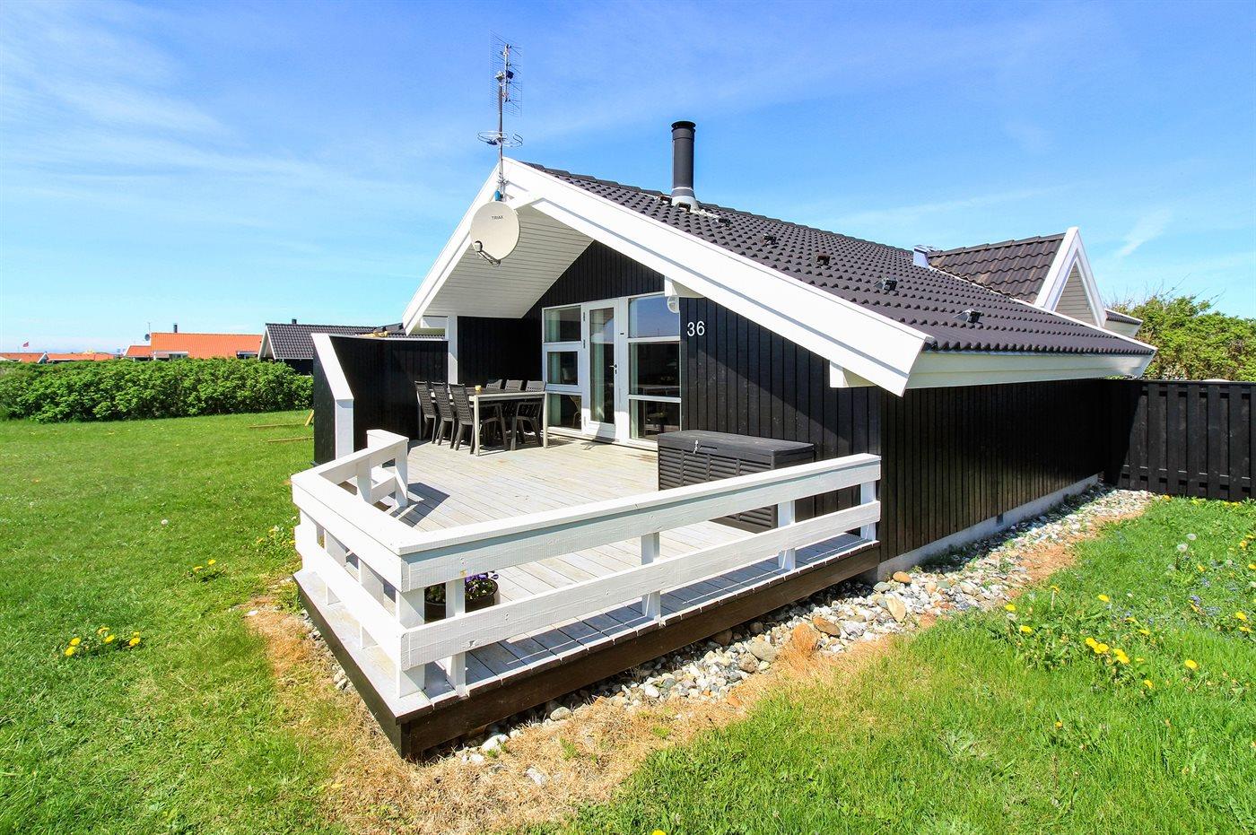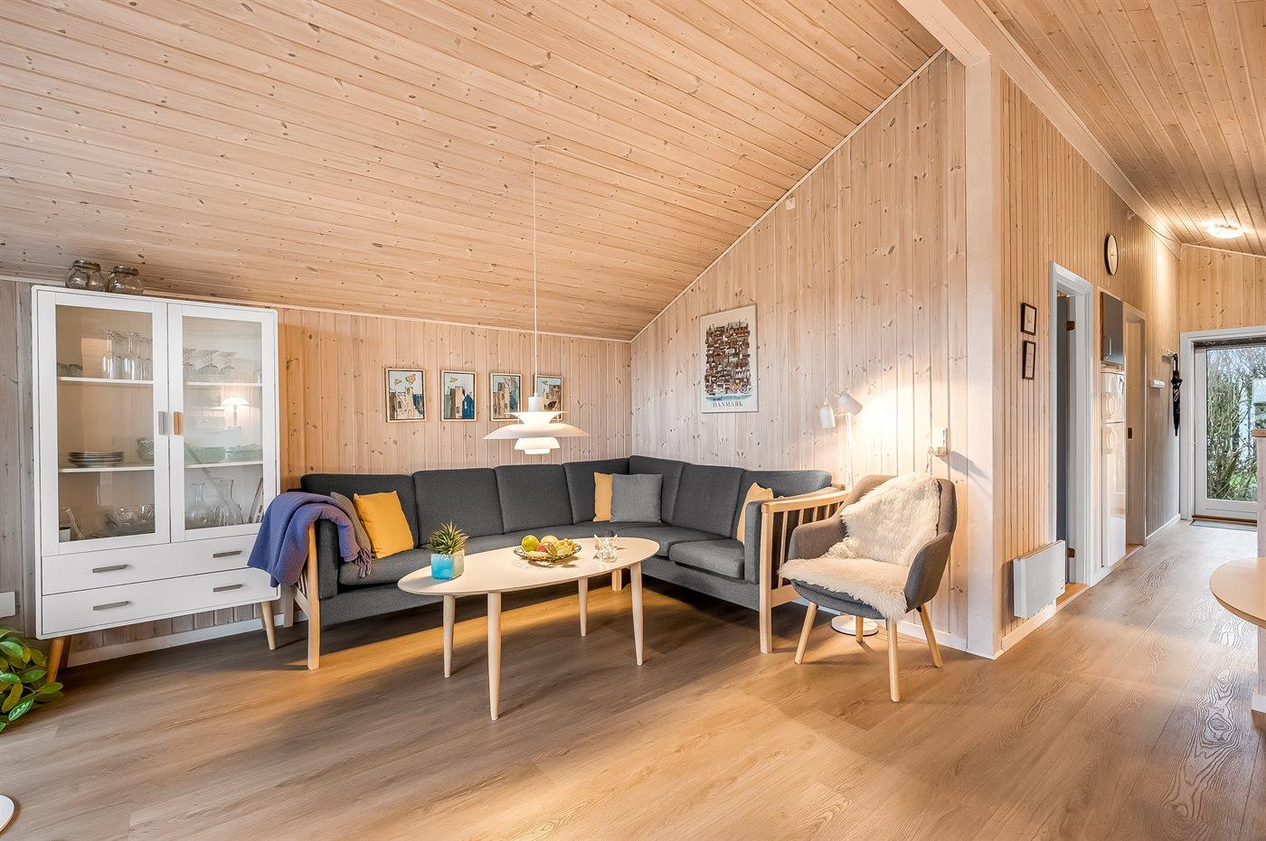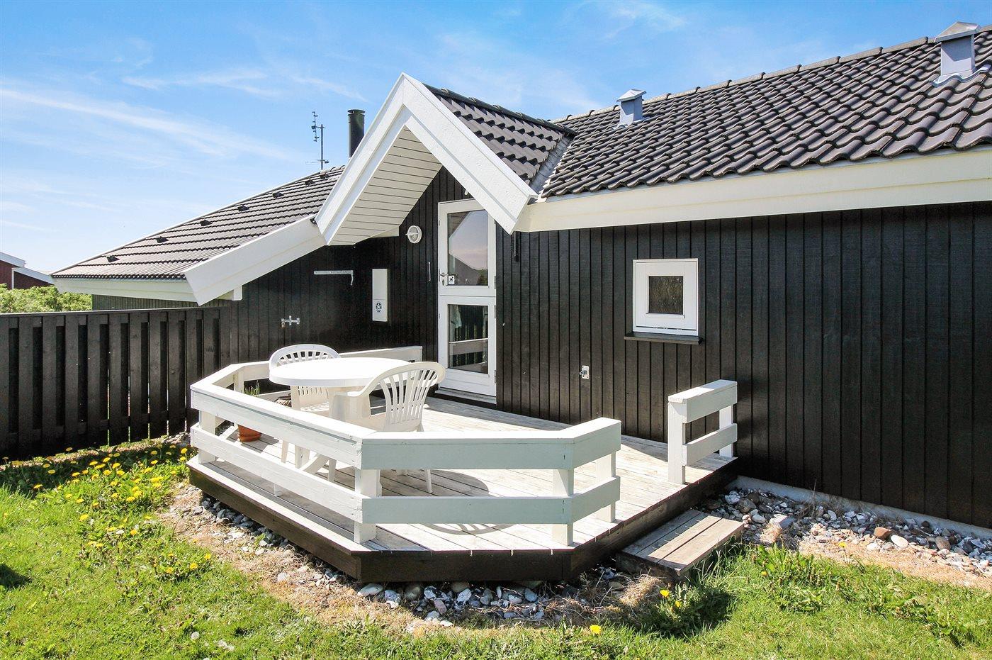 Ferieboligen er beliggende på en 820 m² stor naturgrund. Der er 750 m til havet. Nærmeste forretning er beliggende i en afstand af 200 m. Til ferieboligen hører 20 m² terrasseareal. Desuden er der 12 m² overdækket terrasse. Der er redskabsrum. Gynge. Grill til rådighed. Der er installeret stik til opladning af elbil. Type 2 stik. Parkering ved ferieboligen.