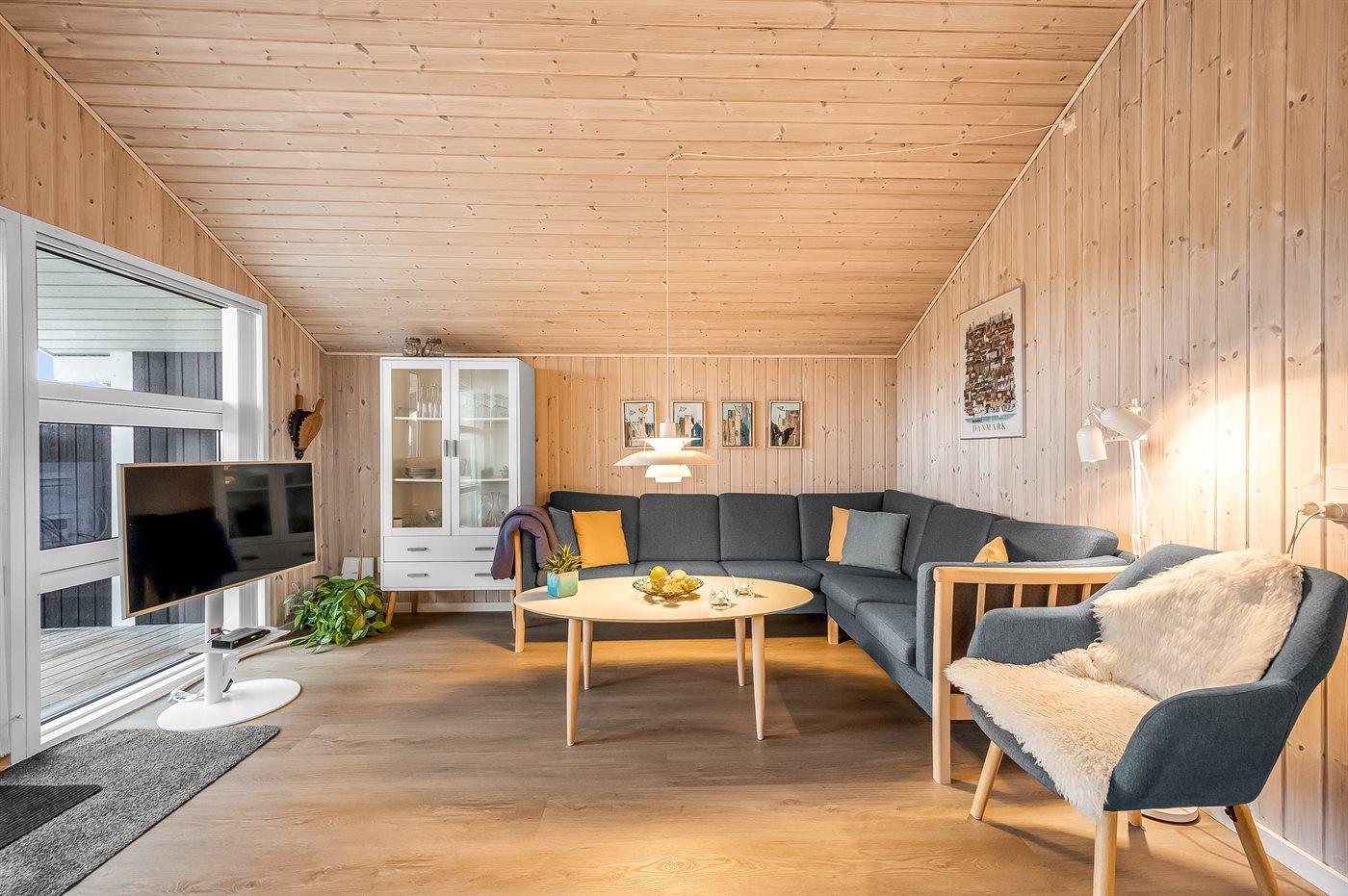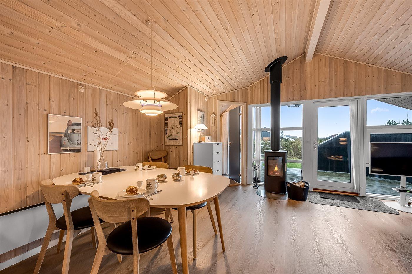 Virkeligt dejligt og hyggeligt indrettet sommerhus beliggende kun 10 min. gang fra Vesterhavet og ikke langt fra indkøbscenter, cafe etc. Bemærk: Huset udlejes kun til familier.
