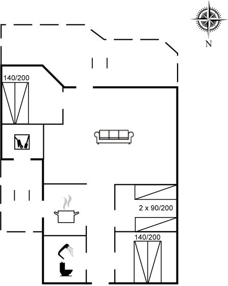 Der er i alt 3 soveværelser. Sovepladserne fordeler sig på: 4 sovepladser i dobbeltsenge. 2 sovepladser i enkeltsenge. Derudover er der 1 stk. barneseng.