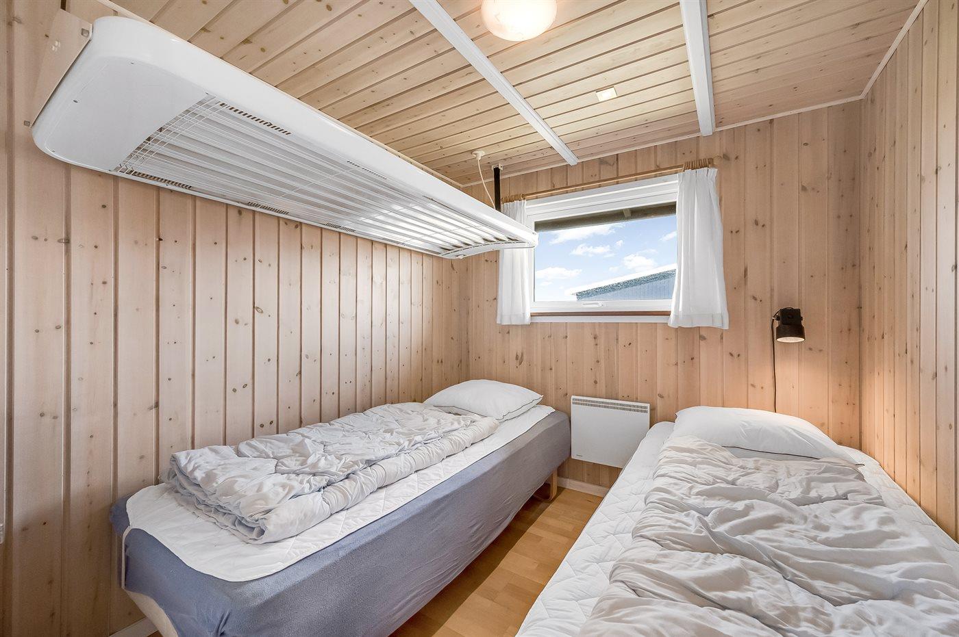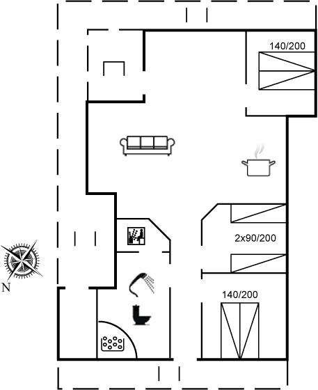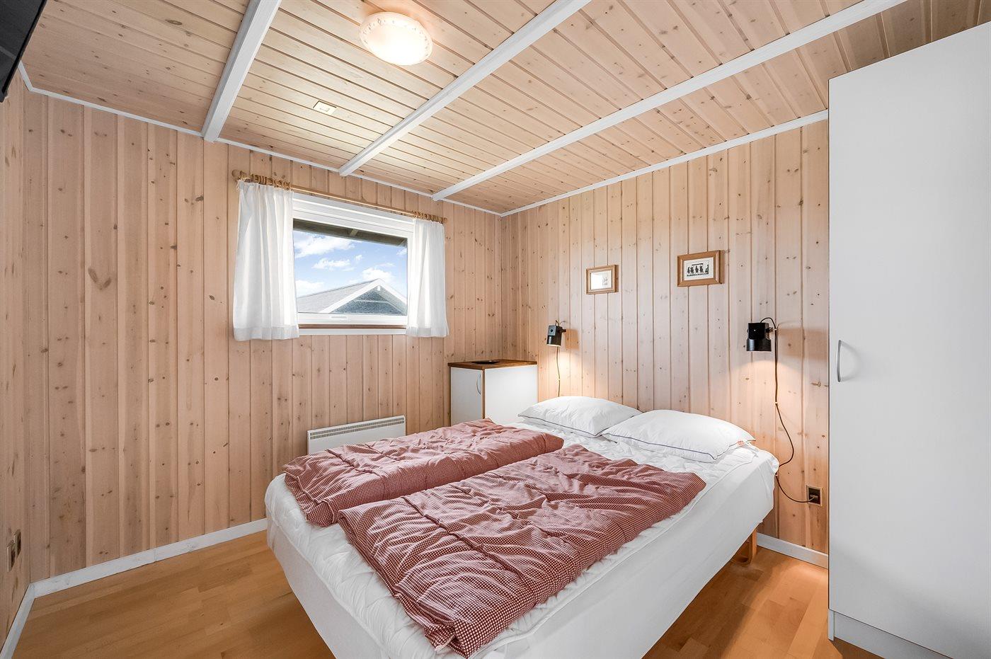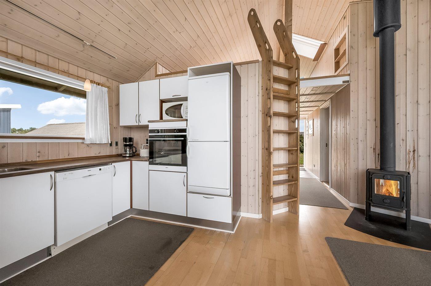Hele huset er smagfuldt og funktionelt indrettet. Badeværelse med gulvvarme, bruseniche, adgang til 4 pers. sauna samt 3 pers. spa - dæmp lyset, tænd for massagedyserne og højtalerne på badeværelset, hvorefter stemningen fuldendes når stjernehimlen tændes efter et tryk på stikkontakten. Køkkenet er kombineret med opholdsstuen og bl.a. udstyret med opvaskemaskine, mikrobølgeovn, fryser, varmluftovn og komfur med keramiske kogeplader. I den rummelige opholds-/spisestue, med adgang til den overdækkede terrasse, finder I brændeovn, stereoanlæg med CD-afspiller, video, DVD-afspiller og TV med parabol (digital). Husets sovepladser fordeler sig på 3 værelser; 2 med dobbeltseng og 1 med 2 enkeltsenge.
