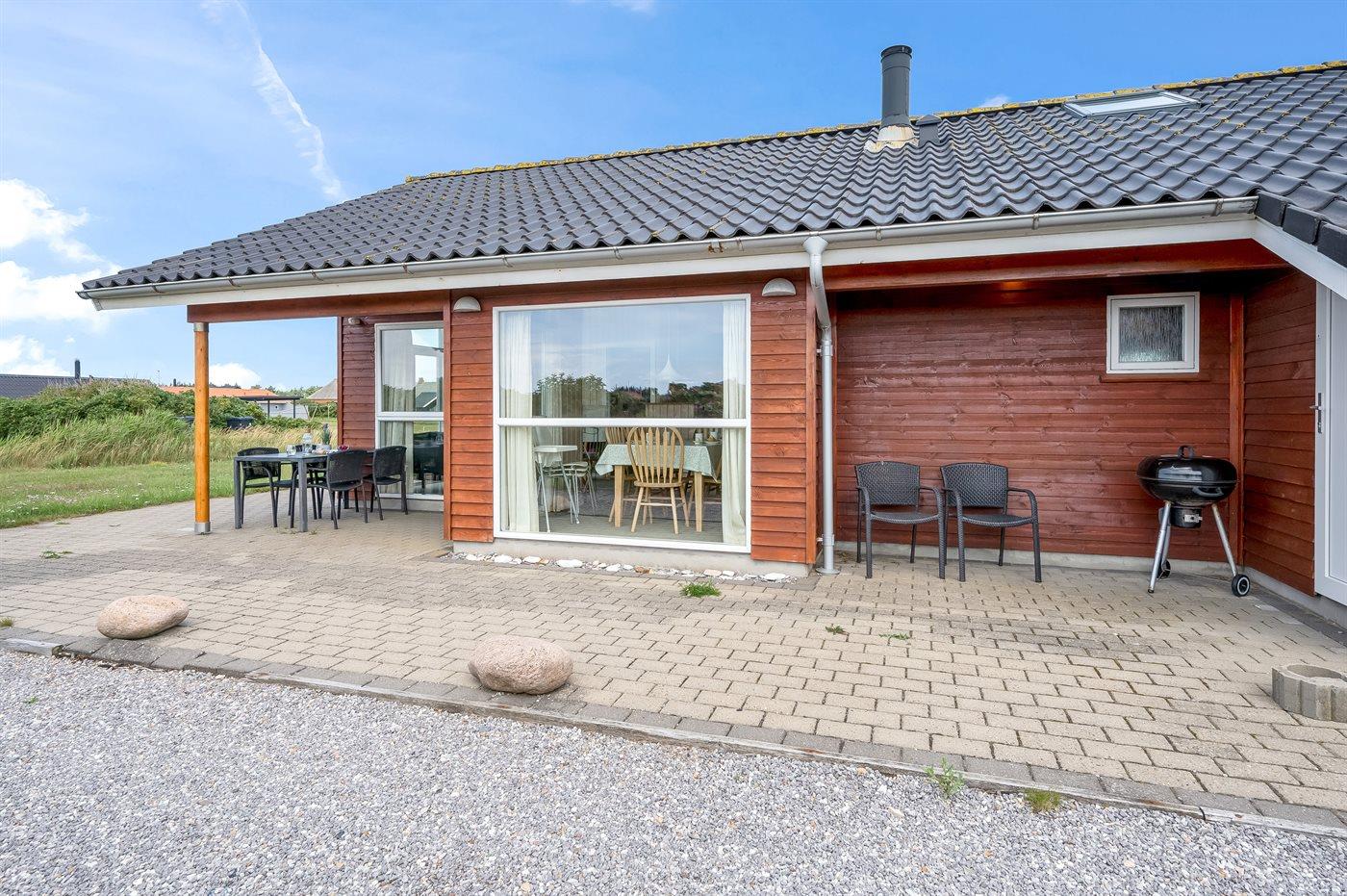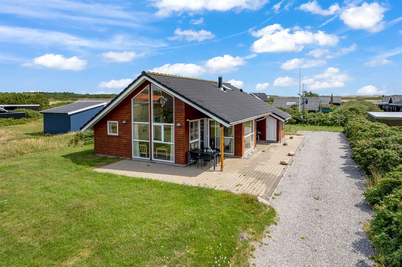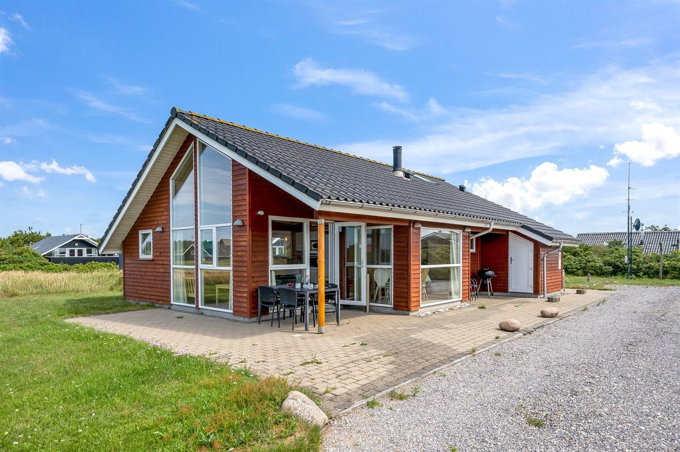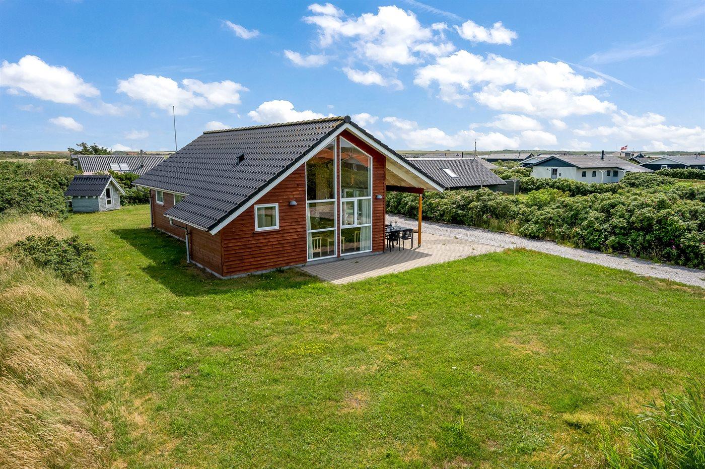 Kun 5 min. gang fra Vesterhavet, med dejlig sandstrand, ligger dette højisolerede og smagfuldt indrettede sommerhus i træ, bygget i 2004.