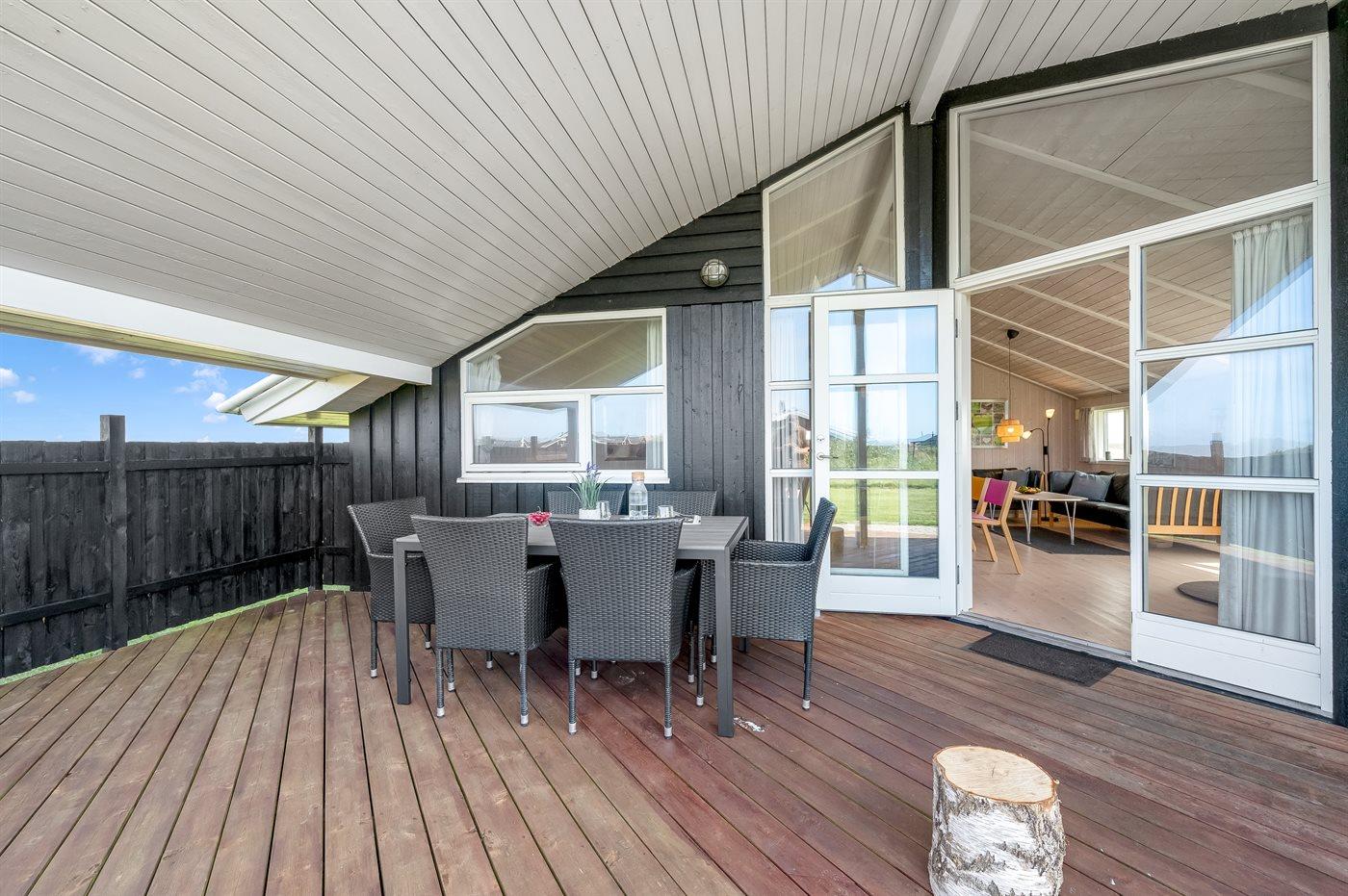 Ferieboligen er beliggende på en 1560 m² stor naturgrund. Der er 700 m til havet. Der er en sø i en afstand af 500 m. Nærmeste forretning er beliggende i en afstand af 500 m. Til ferieboligen hører 25 m² terrasseareal. Desuden er der 20 m² overdækket terrasse. Der er redskabsrum. Parkering ved ferieboligen.