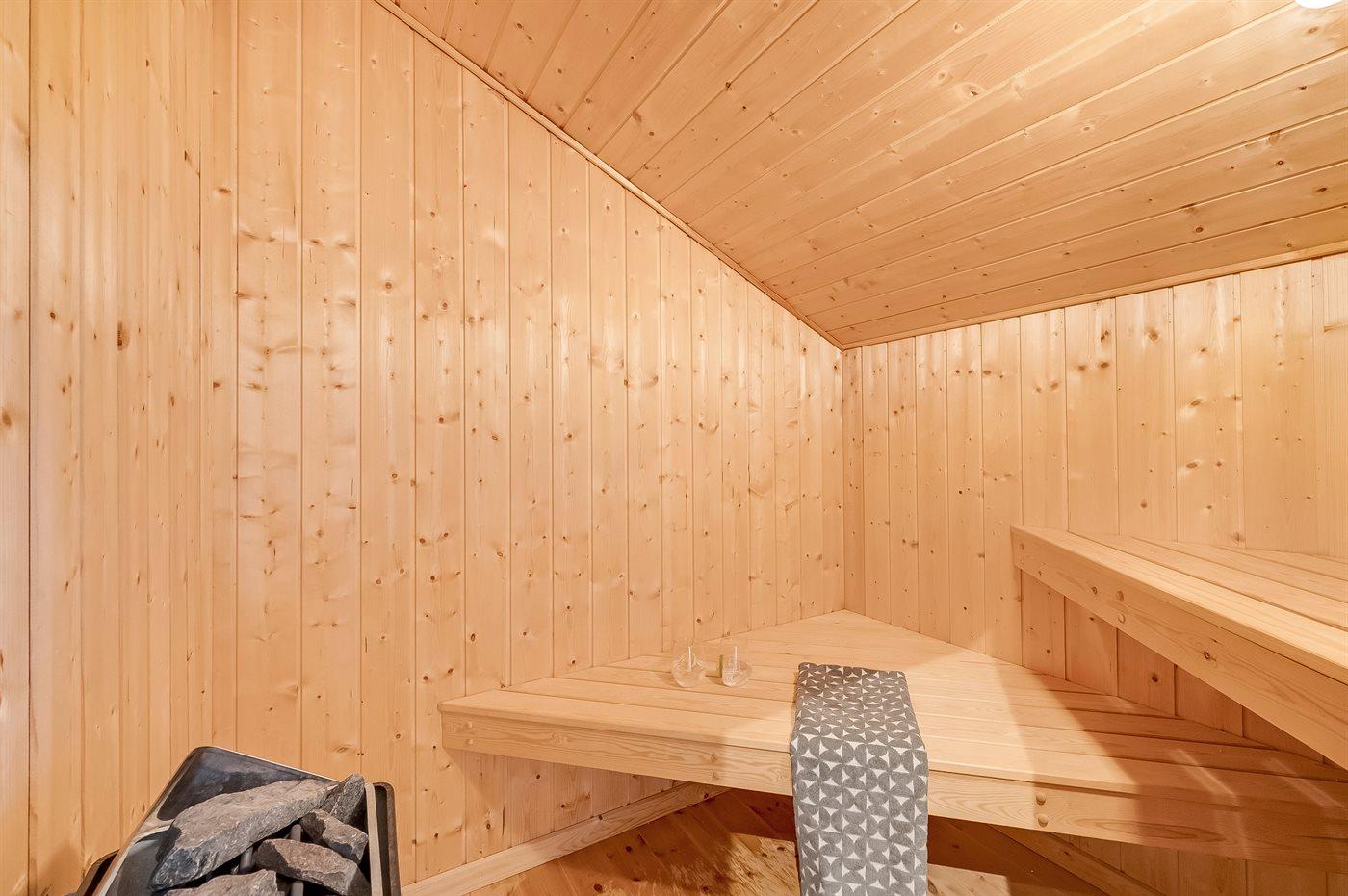 Der er 1 badeværelse med bruseniche og 1 toilet.. Der er gulvvarme på 1 badeværelse. I saunaen er der mulighed for afslapning.