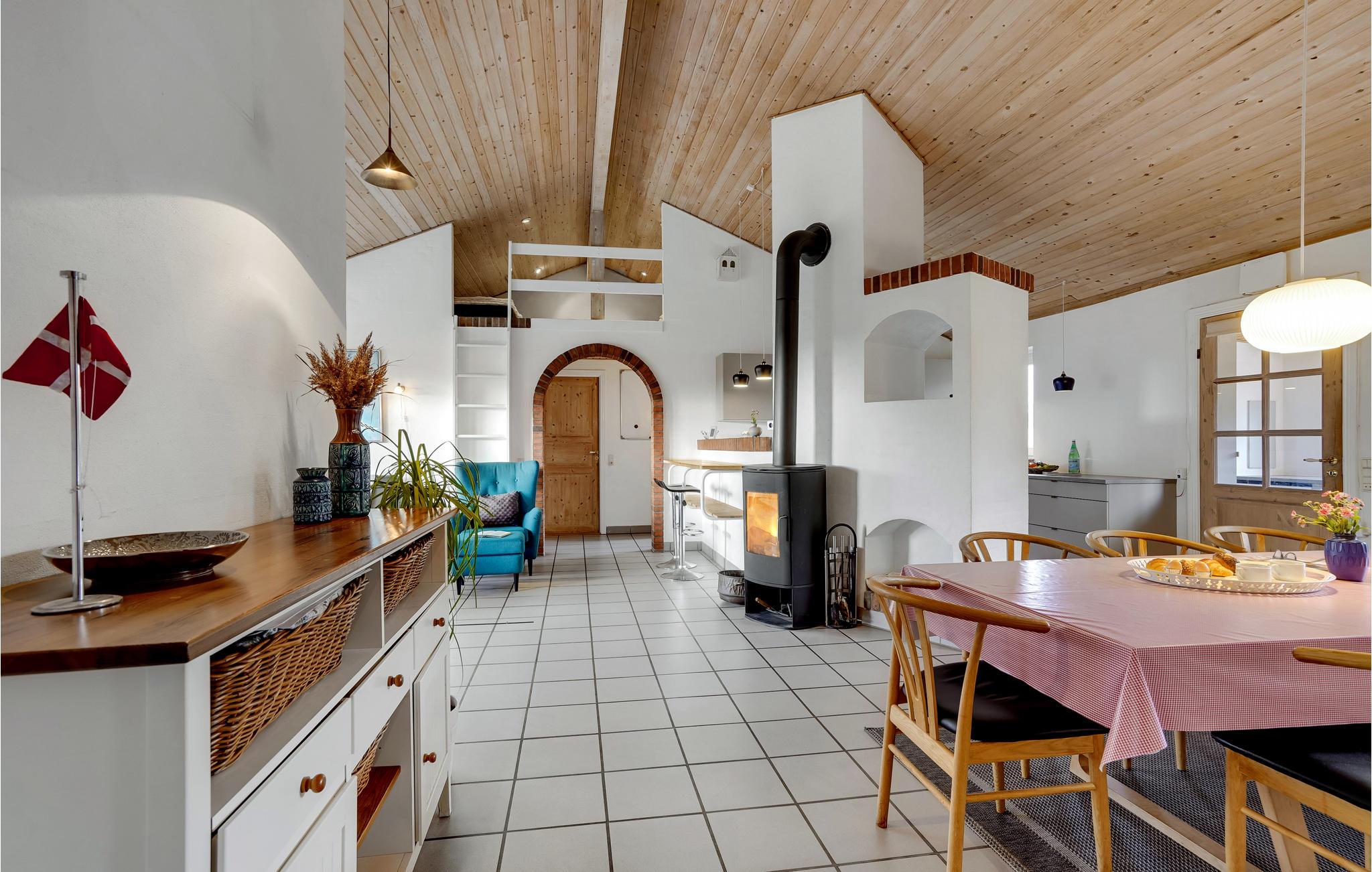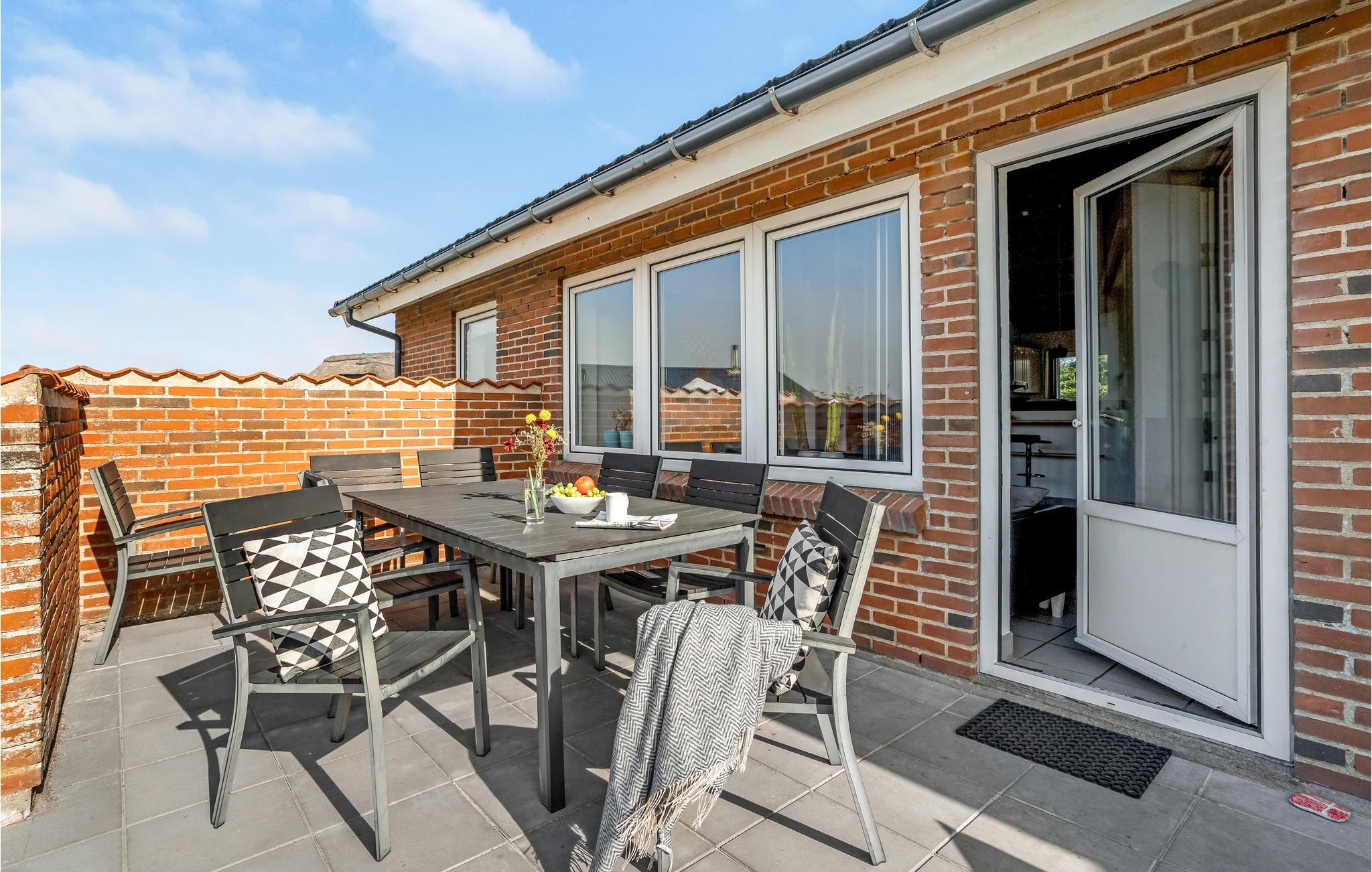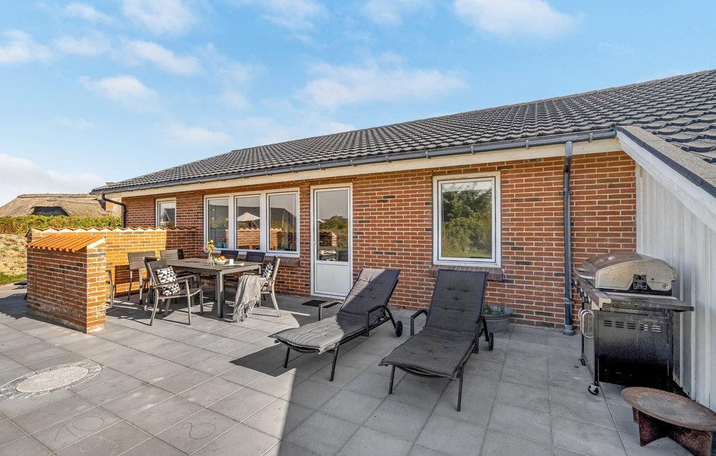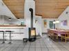 I hjertet af Vejlby Klit ligger dette særdeles velindrettede feriehus, med praktisk køkken der ligger i åben forbindelse med stuen. Herfra kommer I ud på den dejlige terrasse, hvor grillen også står og hvor det er skønt at slappe af på de lange lyse sommerdage. Husets soveværelser ligger i hver sin side, med badeværelse til adskillelse, det ene med spa og sauna. Efter en lang gåtur langs havet, er det pragtfuldt at hoppe i spaen og bagefter i saunaen og blive godt varm igen. Familiens børn vil med garanti sætte pris på hemsen, hvor der er indrettet legeværelse, her kan de få mange timer til at gå, uden at kede sig. Udendørs sørger den specielle gynge for adspredelse.