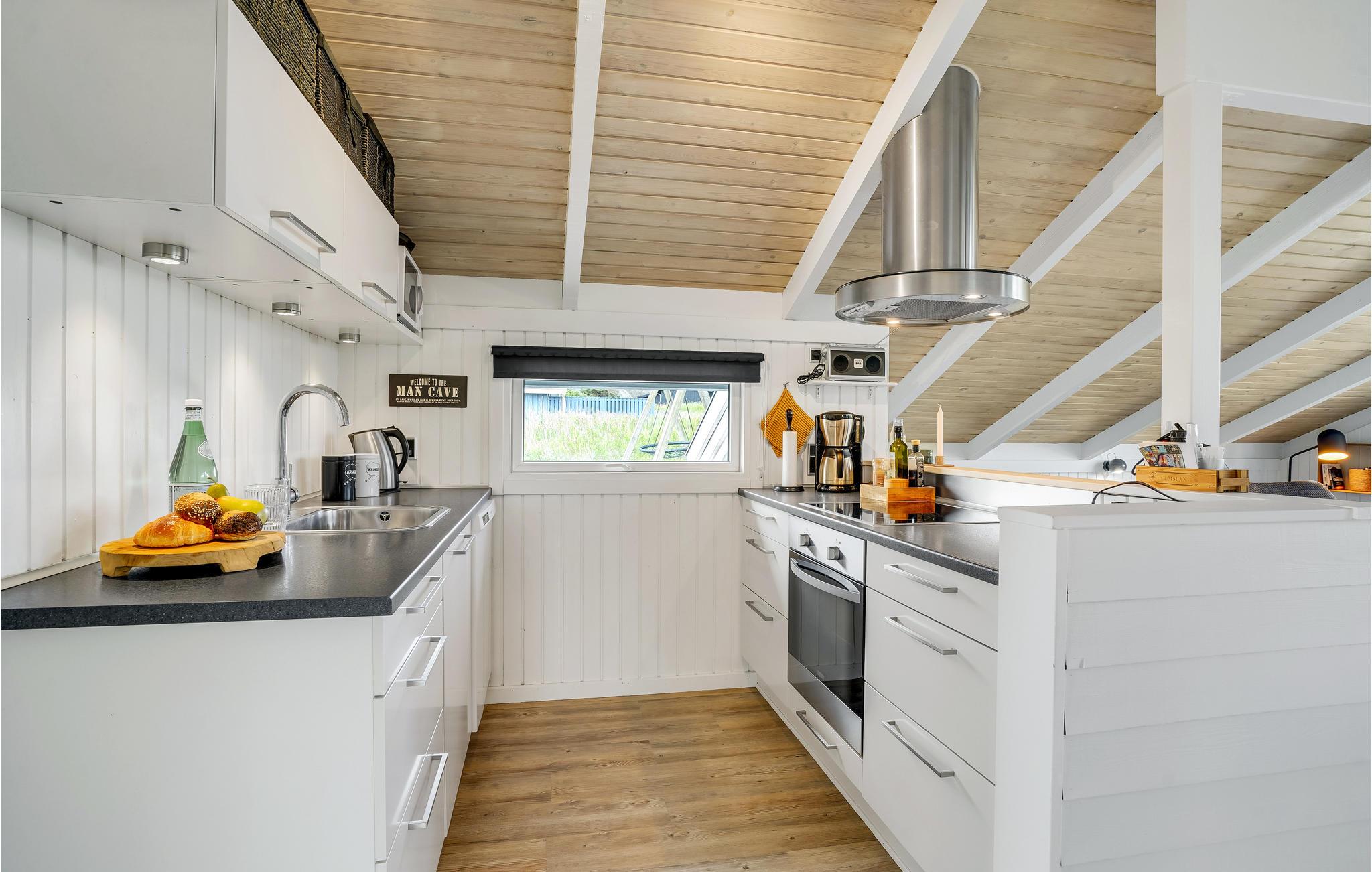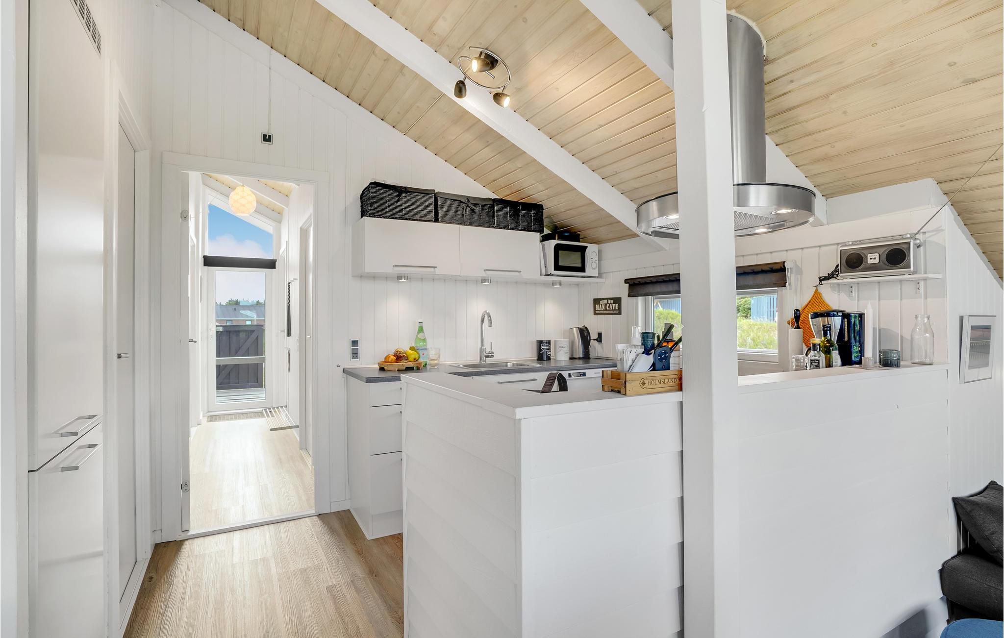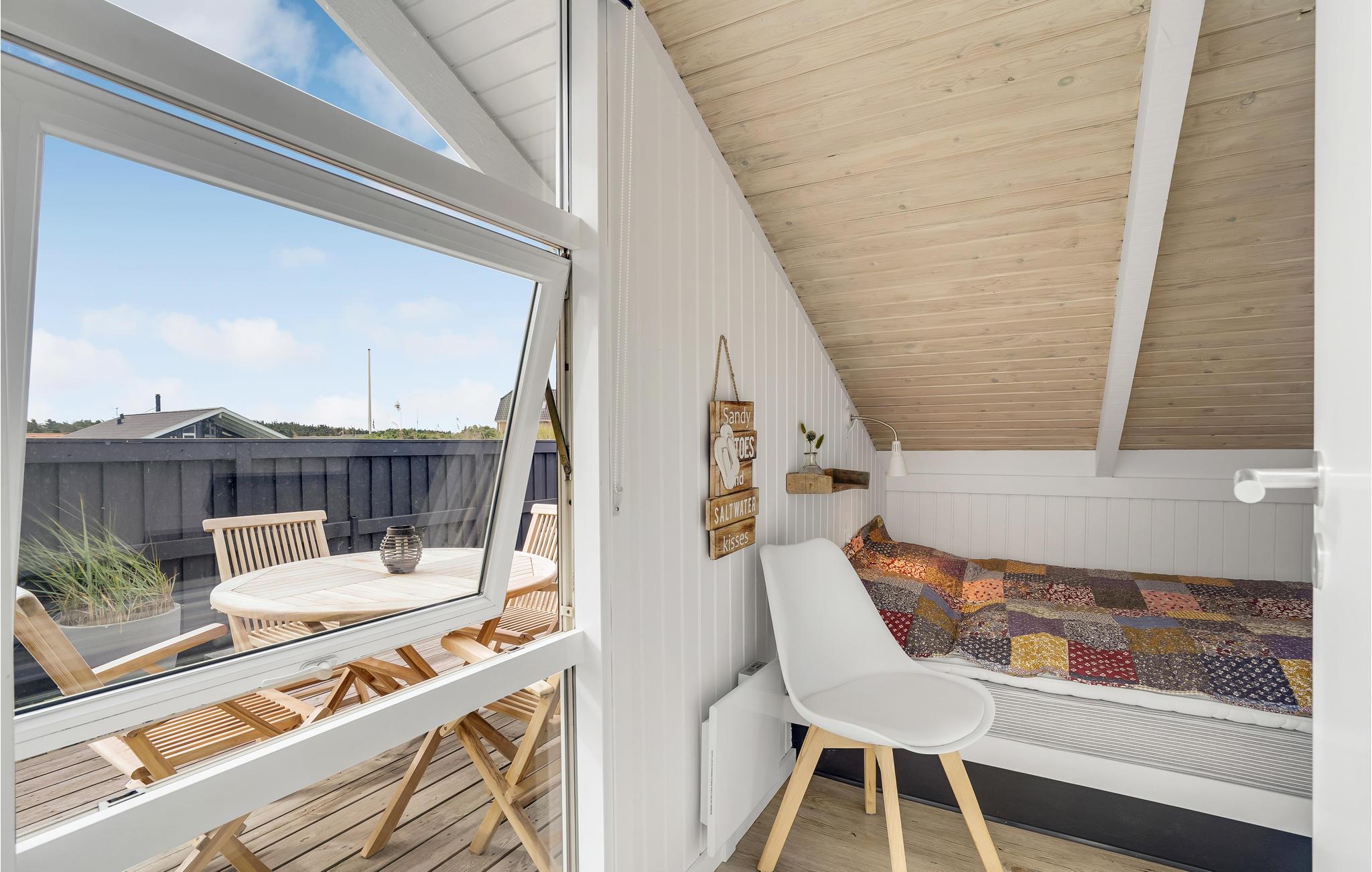 Tæt på Vesterhavet, midt i det skønne klitlandskab, finder I dette idylliske, pænt renoverede feriehus bygget i træ. Feriehuset er hyggeligt og smagfuldt indrettet med sans for detaljen og indbyder til hygge og afslapning. Det indeholder et godt køkken med stort køle-fryseskab, tre soveværelser samt en dejlig stue med kvalitetsmøbler, stort tv og brændeovn m.m. Udendørs er der anlagt terrasser mod syd, øst og vest, så der er altid en mulighed for at finde læ og nyde solen. På to af terrasserne er der havebord med stole og på den sidste terrasse findes liggestole. Huset ligger for enden af en lukket vej med stisystem til en købmand. Selve området indbyder til udendørs aktiviteter som drageflyvning, hygge på stranden, gå-/løbe- eller cykelture m.m. I kort afstand fra huset ligger et trinbræt, hvor VLTJ (den lokale bane) kan transportere jer til Thyborøn og Lemvig. Hjemme igen, godt træt efter en dag i den friske havluft, kan dagen afsluttes med at tænde op i brændeovnen og lade roen sænke sig til lyden af den varme knitrende ild, mens tankerne får frit løb!