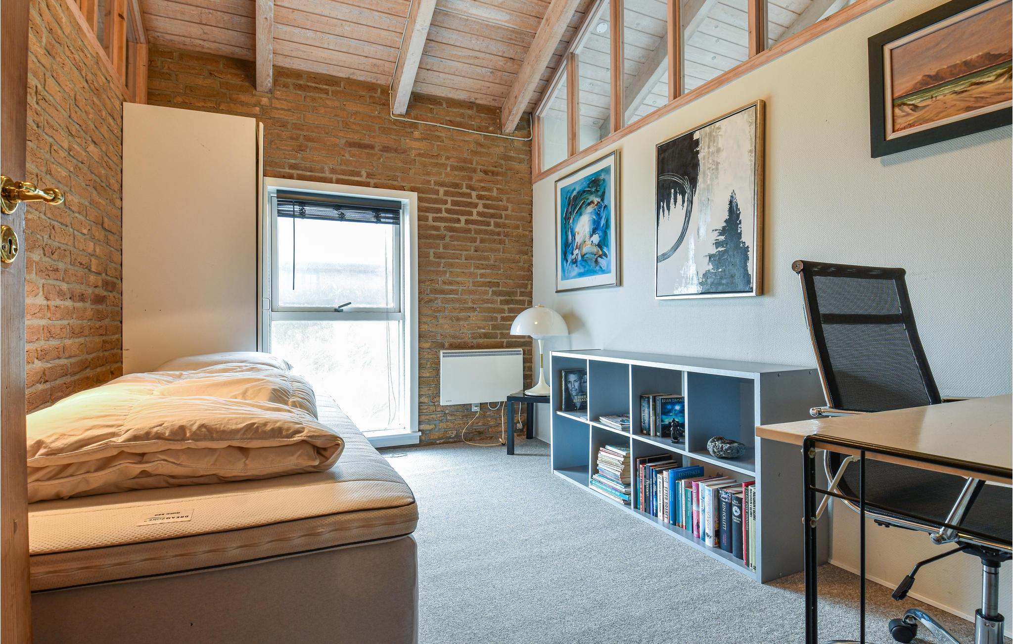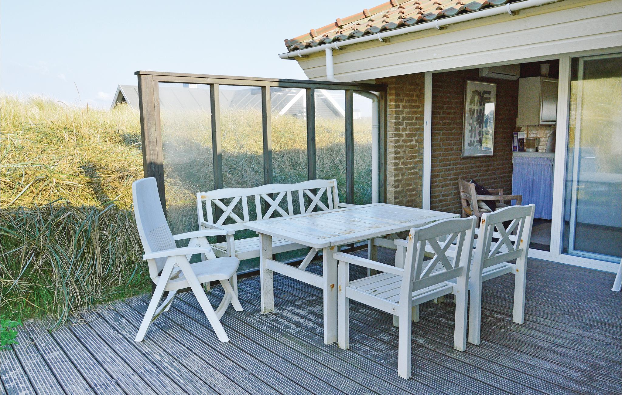 Dette skønne sommerhus ligger i 1. klitrække, og har en fantastisk placering direkte ud til Vesterhavet. Her er højt til loftet og de store vinduer sørger for smukt lysindfald, og I kan føle jer helt tæt på naturen, selv når I er inde. Der er lagt vægt på naturlige materialer, solidt håndværk og smukke linjer. Efter morgenbadning i Vesterhavet, kan i spise morgenmad med solopgangen på husets terrasse mod øst med udsigt ud over dalen og helt til Engbjerg Kirke på højderyggen 5 km derfra. Når I vender hjem efter en aktiv dag ved Vesterhavet, kan I hygge jer foran pejsen, eller slappe af i spabadet og komme helt ned i gear. De lune sommeraftener indbyder til festlige grillmiddage på terrassen mod vest, med solnedgangens farvespil som baggrund. Huset er indlejret i klitterne, og er omgivet af sand og marehalm. Går I op til toppen af klitterne, vil I få en fantastisk udsigt og det ideelle sted at opleve solnedgangen over Vesterhavet.